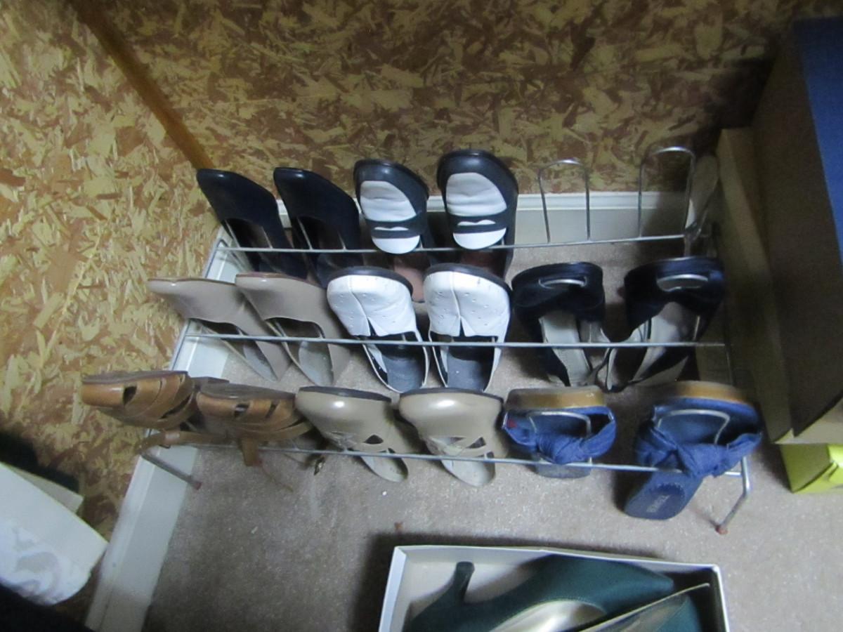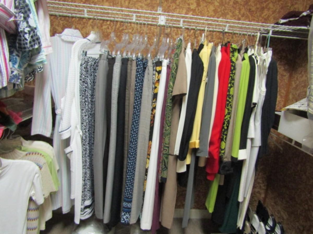 Collection of Ladies Fashion Clothing Ann Taylor, Liz Claiborne, Kim Rogers, and More. Lot includes blouses, slacks, shoes, sweaters, scarves, etc.
