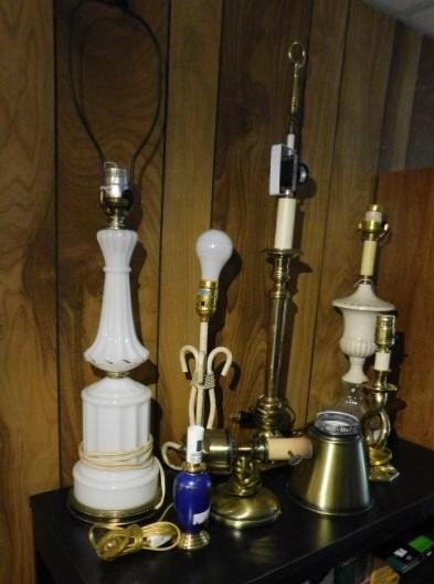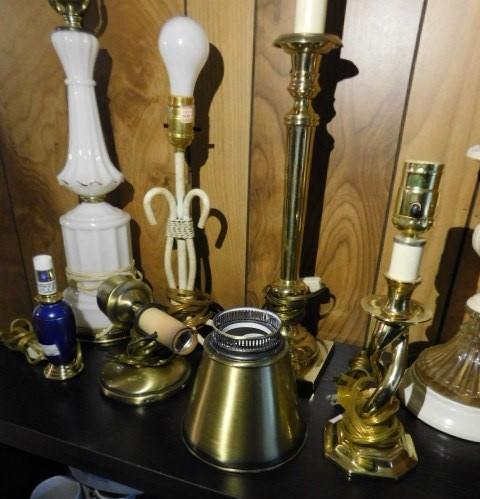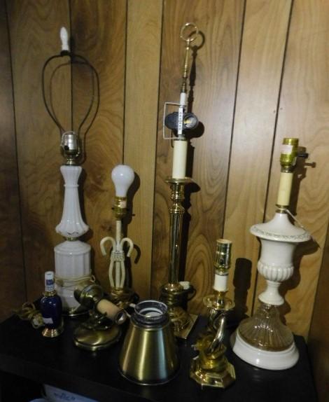 Collection of Lamps Wood, Brass, Ceramic