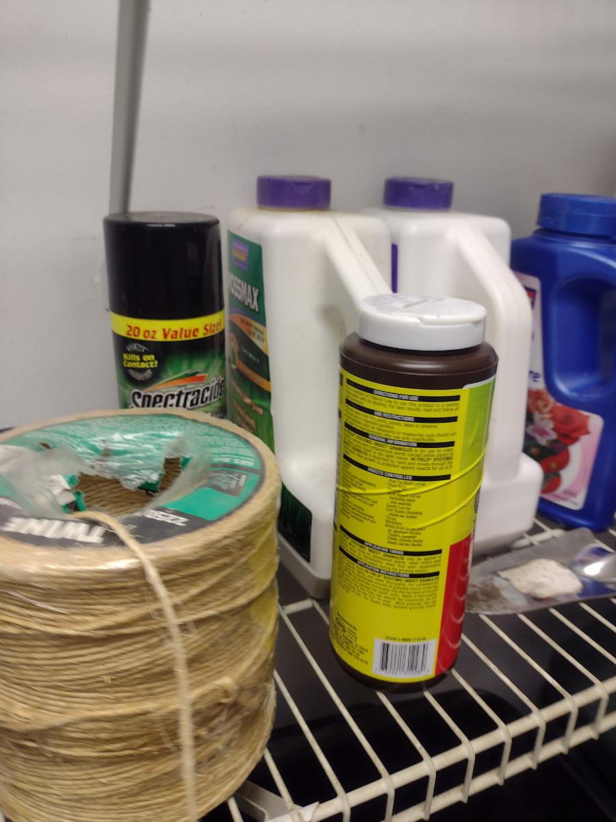 Collection of Lawn and Garden Accessories. Chemicals, plant stakes, watering cans, bird feeder, etc. Please see all pictures for selection.