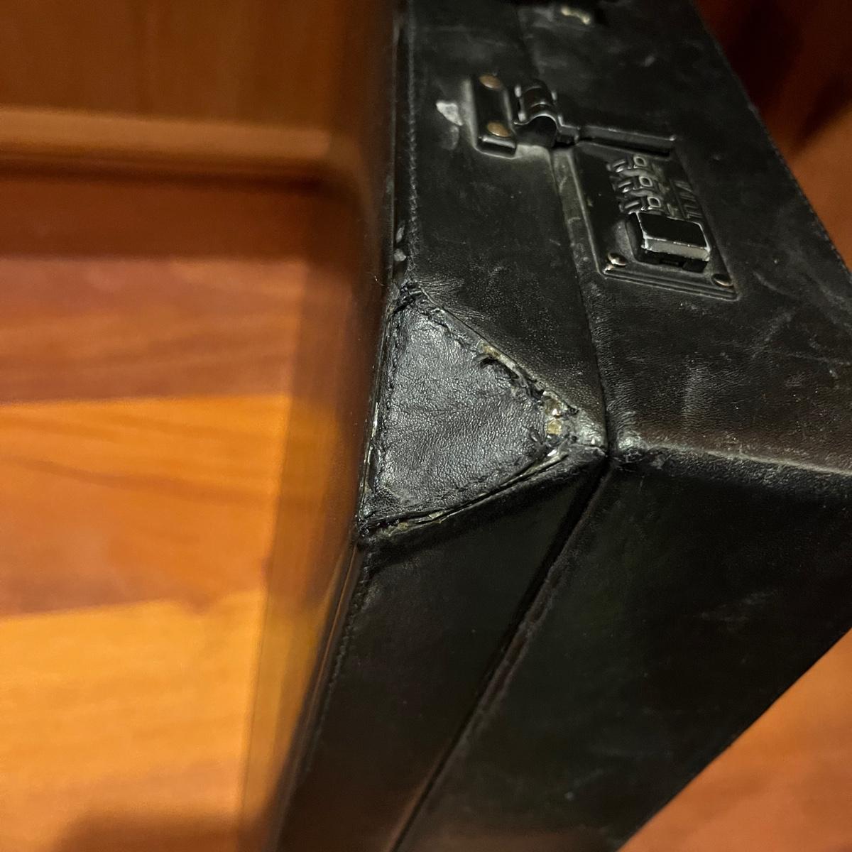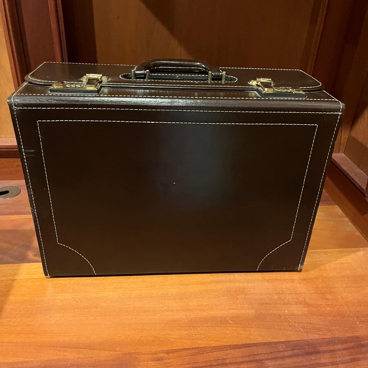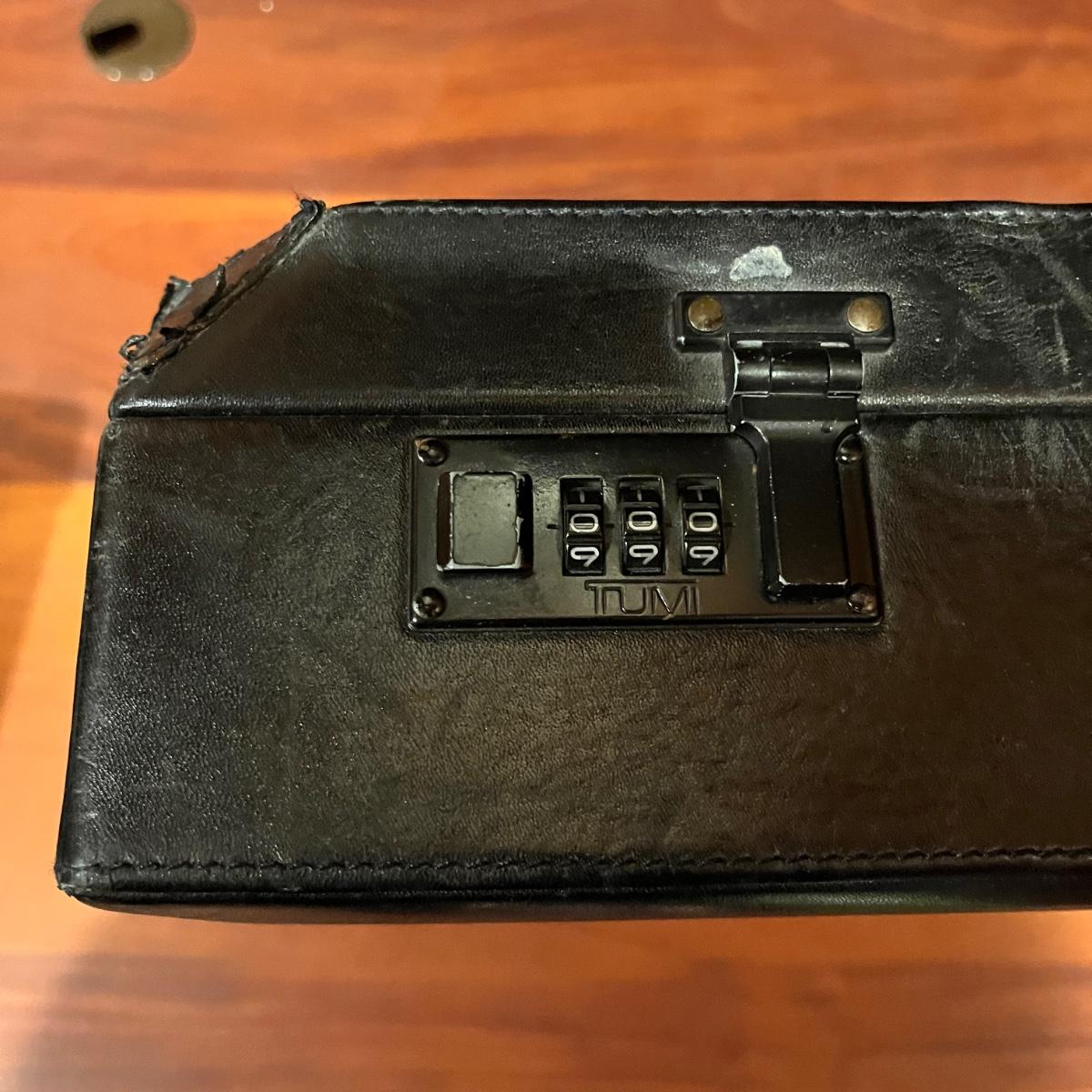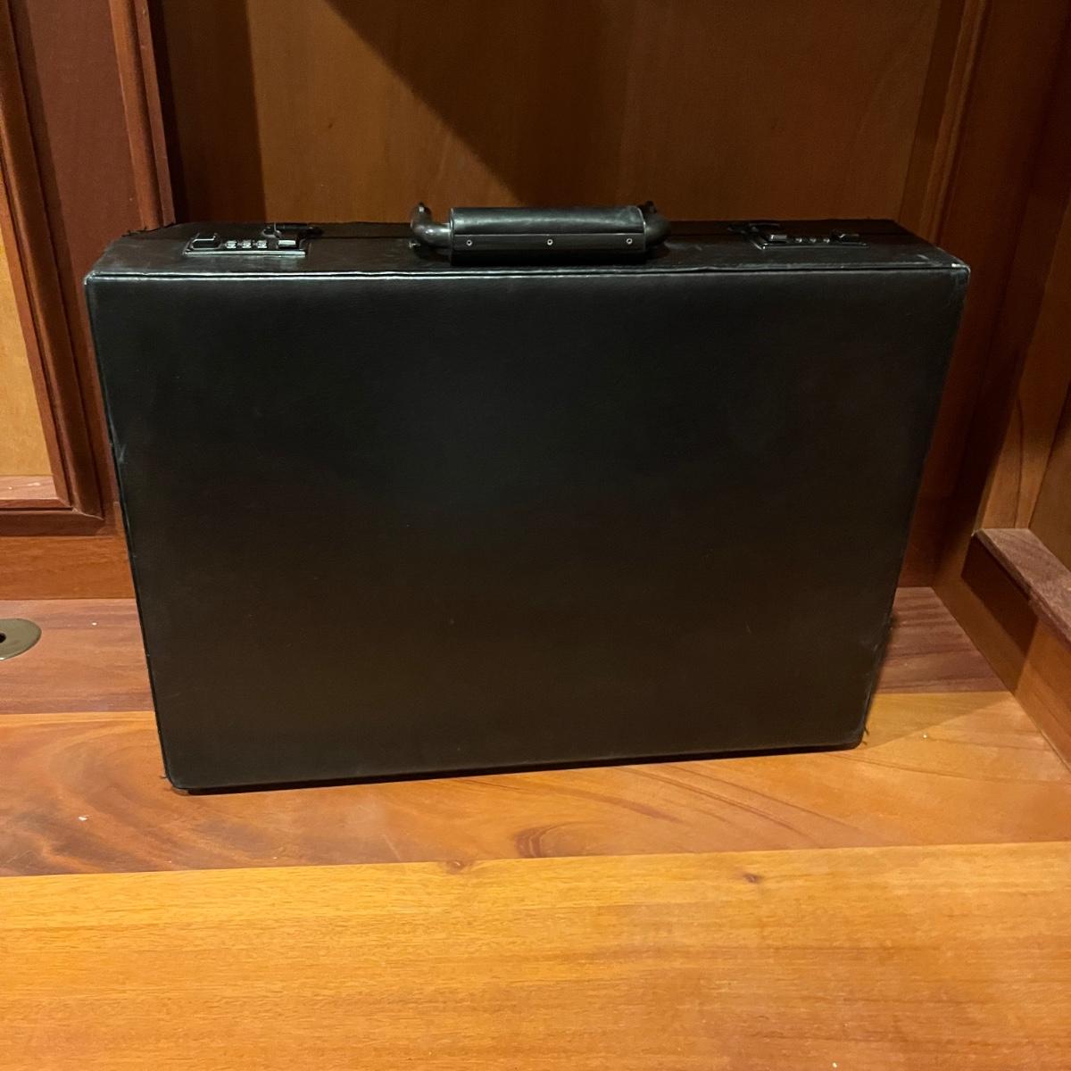 This collection of briefcases includes large briefcase with combination locks, one monogrammed briefcase with combination locks with corner cut, see pictures. Also includes a briefcase with combination locks and one portfolio style briefcase with lock that has no key. Largest briefcase measures 7.5” x 18” x 12”H. All items appear to be leather.