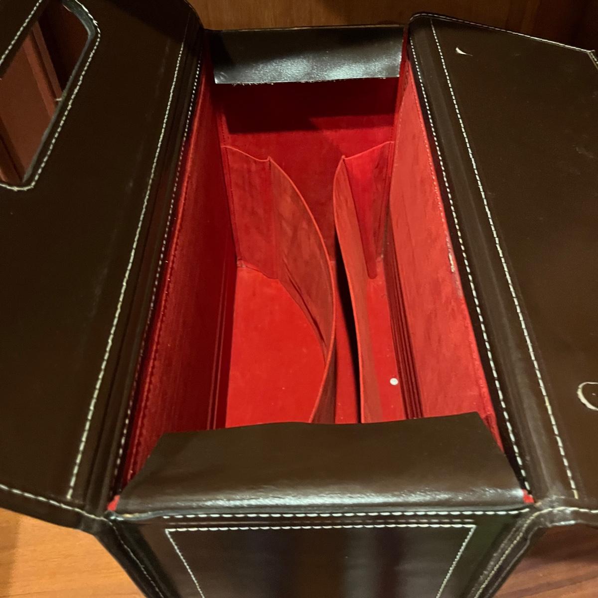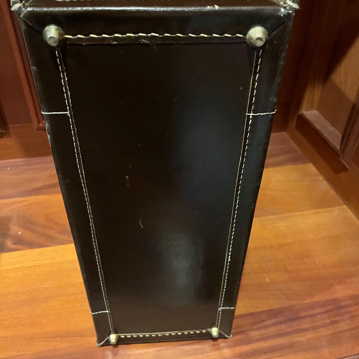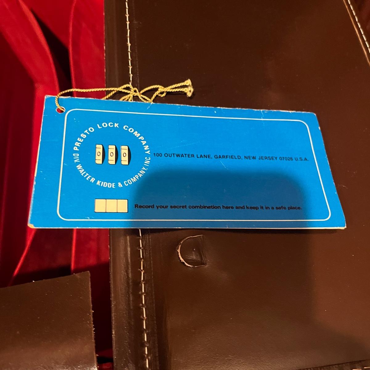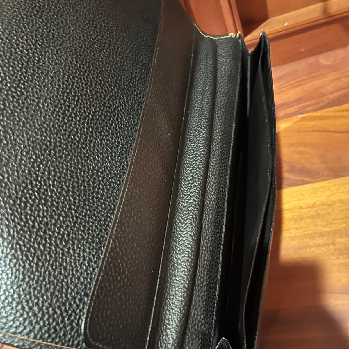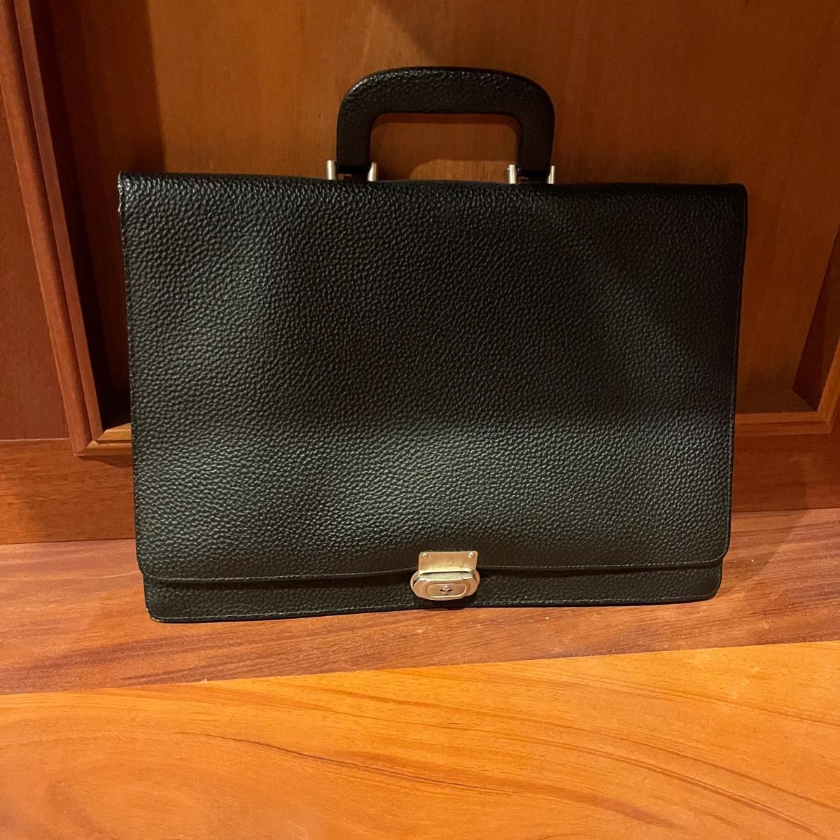 This collection of briefcases includes large briefcase with combination locks, one monogrammed briefcase with combination locks with corner cut, see pictures. Also includes a briefcase with combination locks and one portfolio style briefcase with lock that has no key. Largest briefcase measures 7.5” x 18” x 12”H. All items appear to be leather.