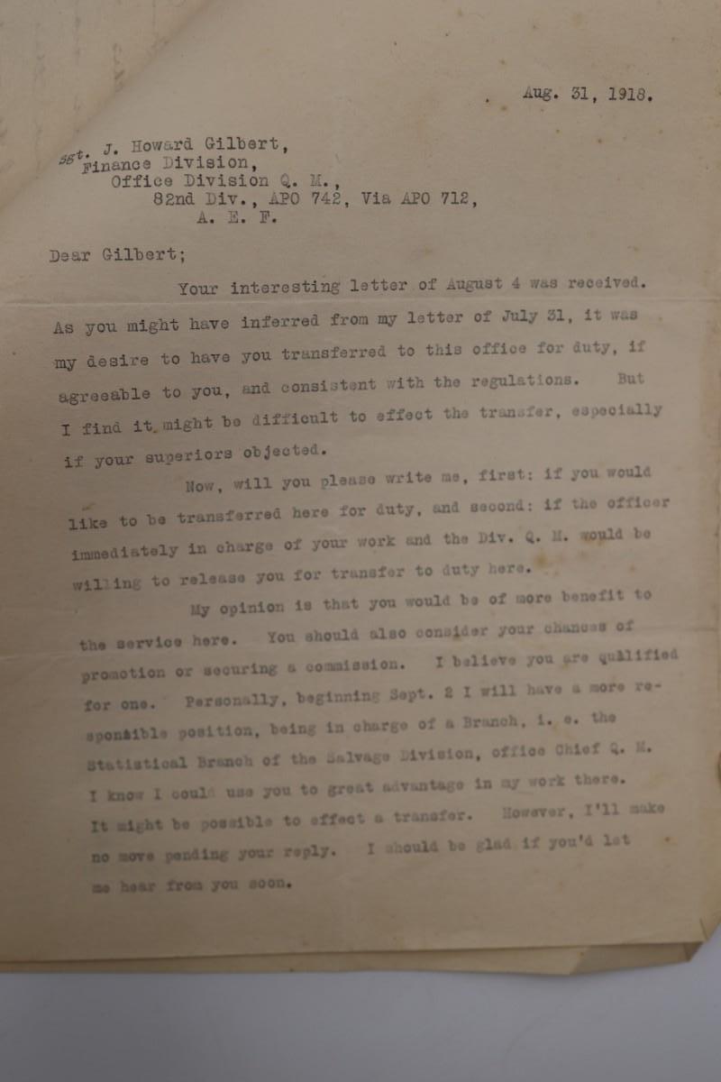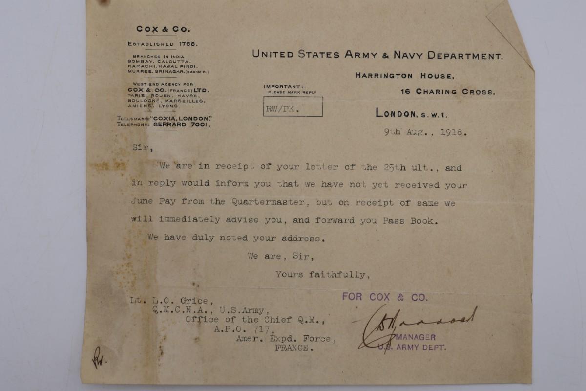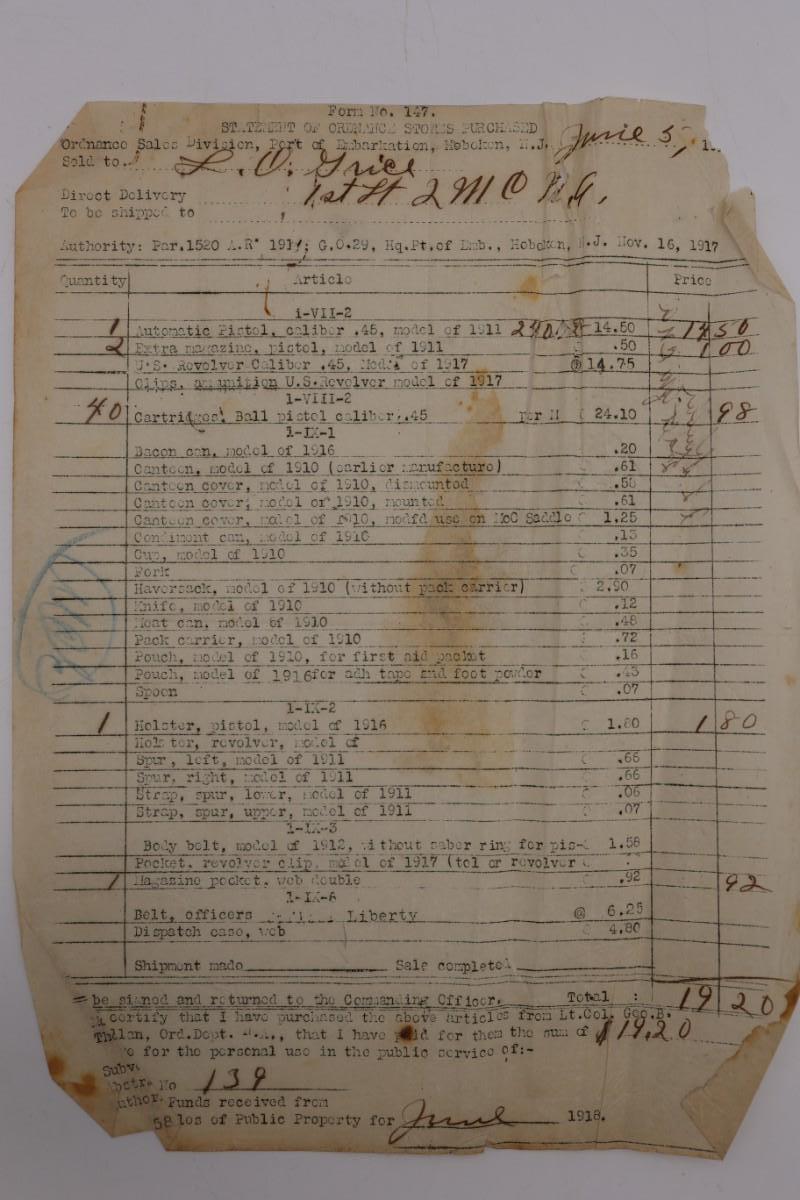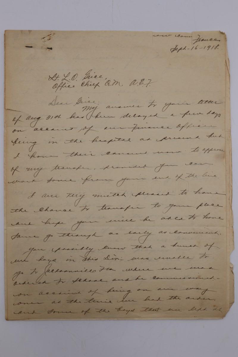 This collection is of Letcher Ogle Grice containing personal letters, army documents, newspapers, receipts, postcards, letter to president during and after WWI.