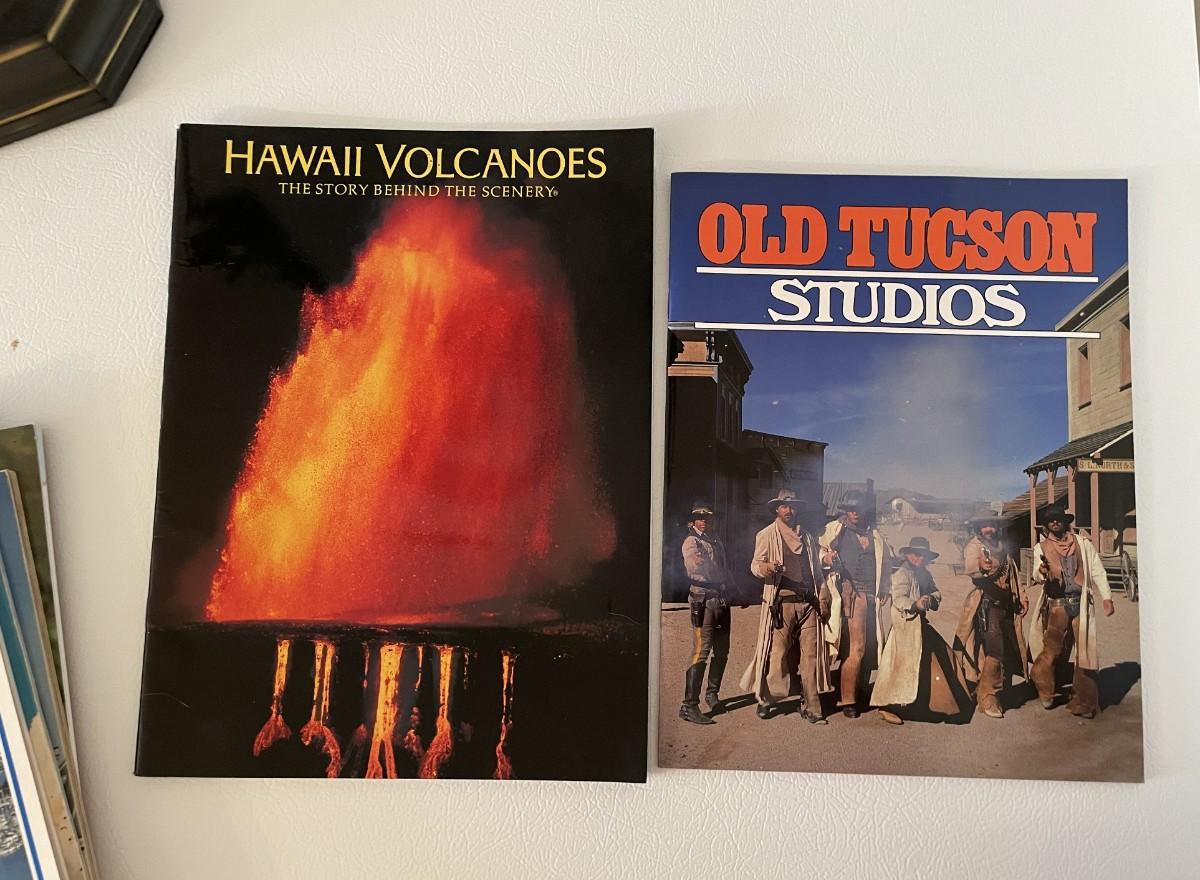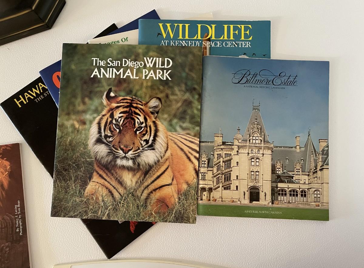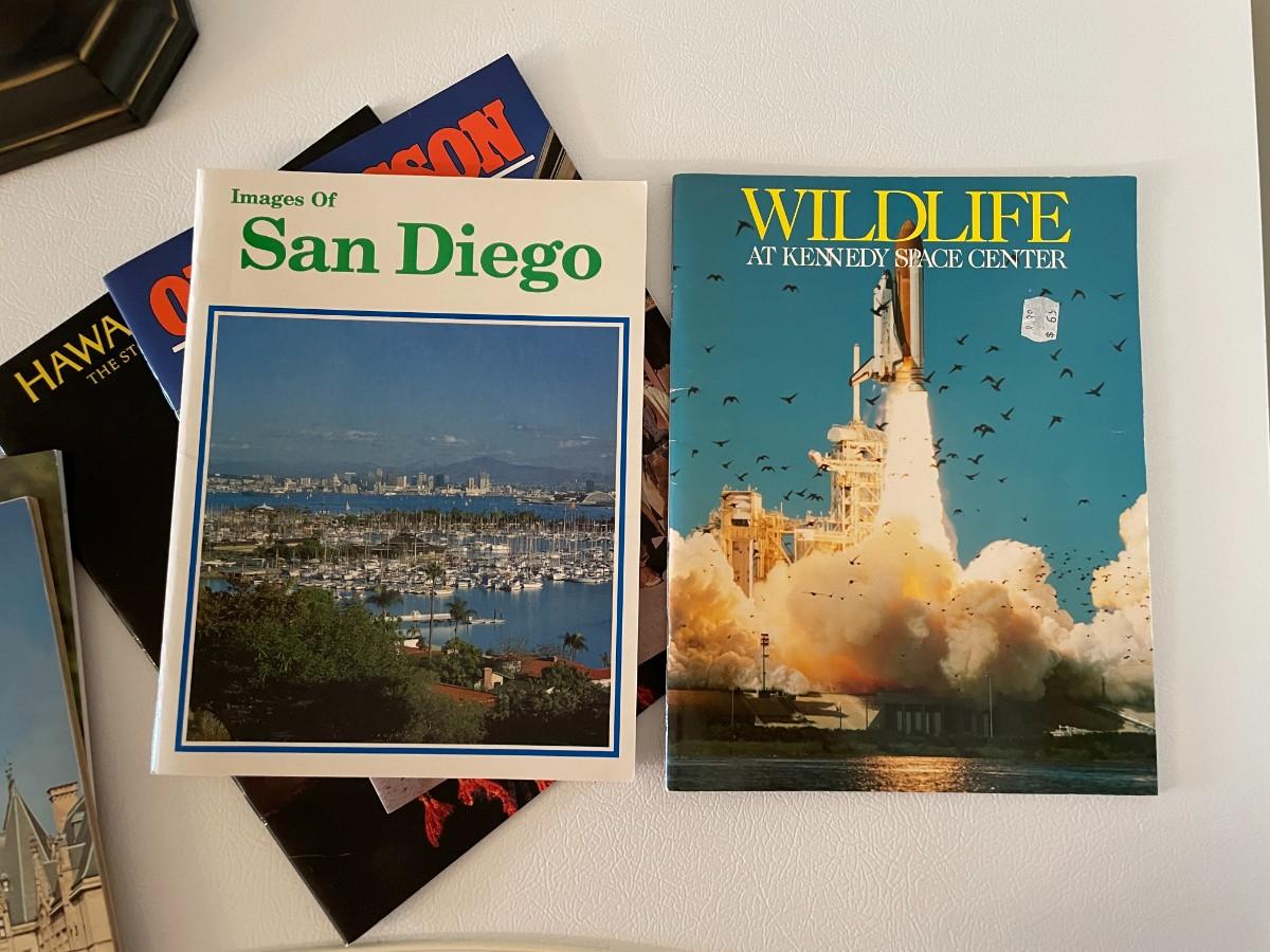 This collection has 7 books in it. 1985 Biltmore Estate, 1994 The Sand Diego Wild Animal Park, 1987 Wildlife at Kennedy Space Center, 1981 Along the Rim (Grand Canyon), 1991 Images of San Diego, Old Tucson Studios, and 1990 Hawaii Volcanoes. All are in very good condition and ready to get the travel bug started in you!