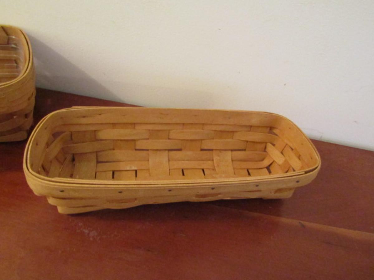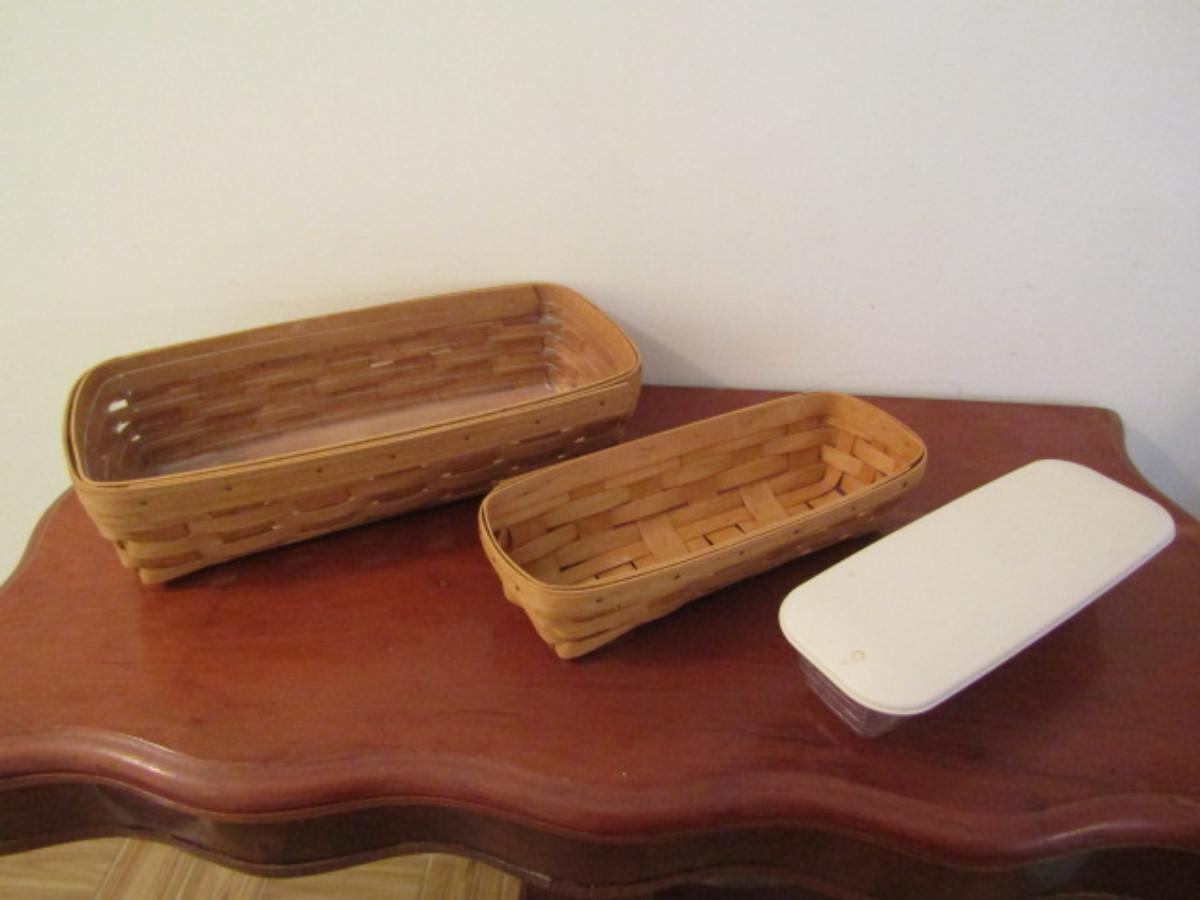 Collection of Longaberger Baskets and Hard Plastic Container with Lid