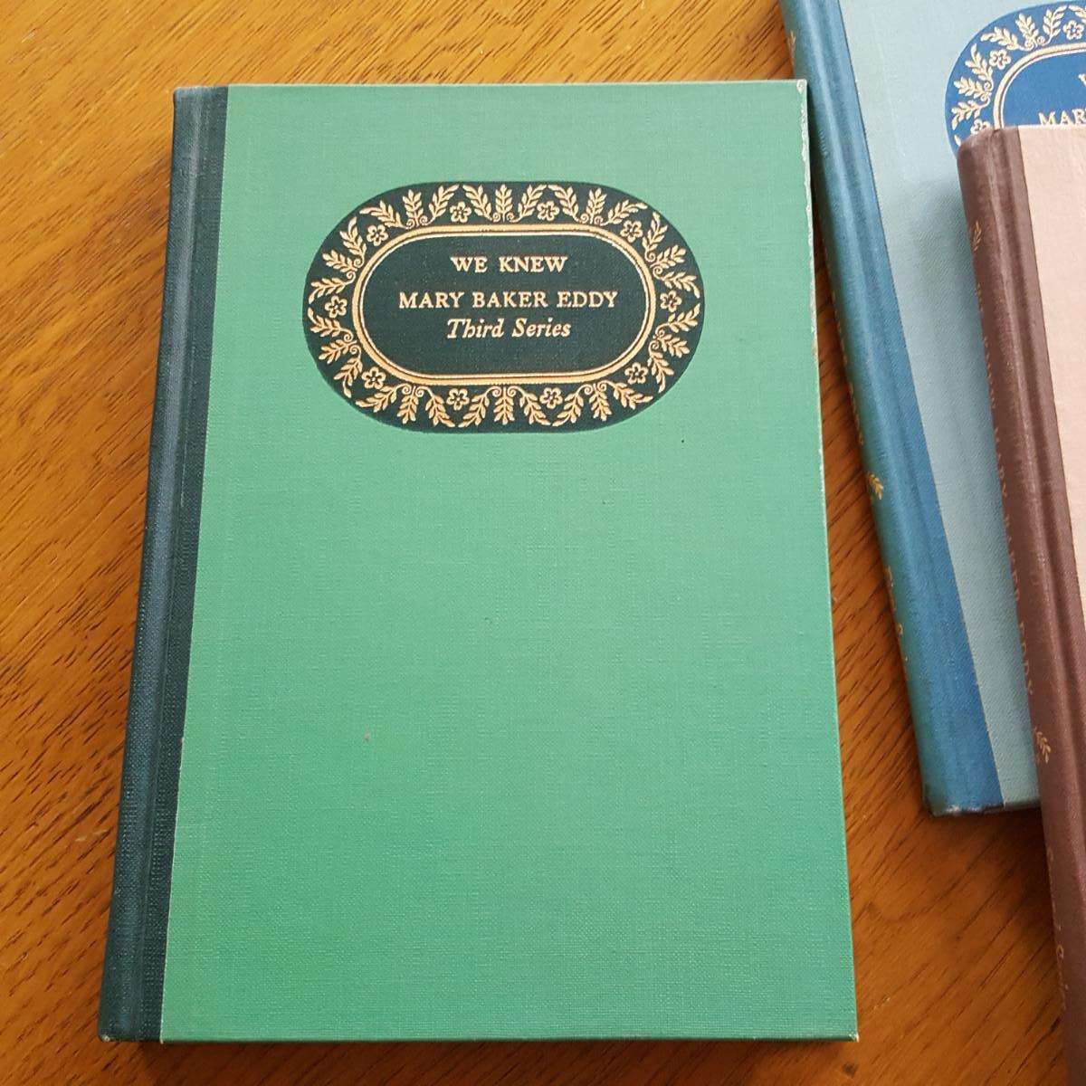 This auction lot is for a Collection of Mary Baker Eddy Books. This collection is a series of three volumes of articles from folks who knew Mary Baker Eddy, the foundress of the Christian Science Church. The First Series book is a 1st edition that was published in 1943, the Second Series was published in 1950 and the Third Series was published in 1953. All of the books are hard-bound and in good condition for their age.