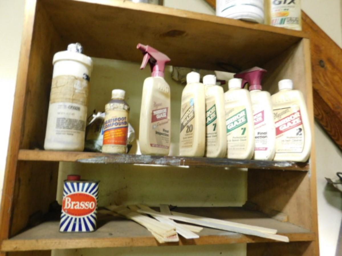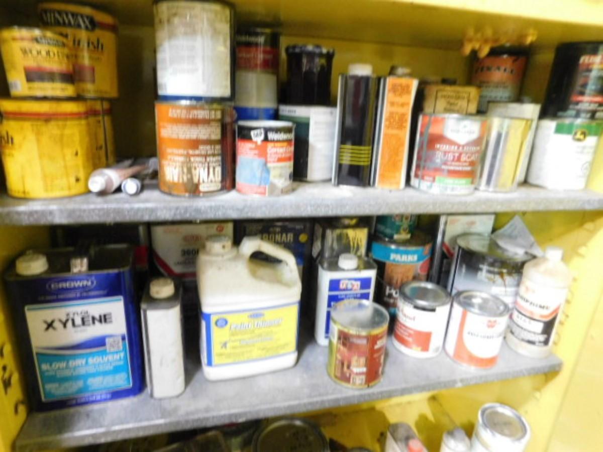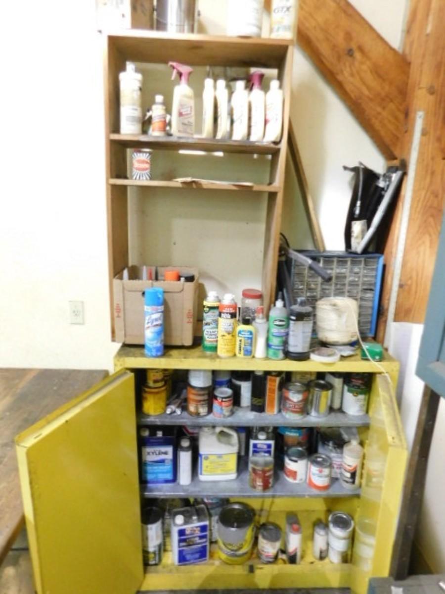 Collection of Metal and Woodworking Chemicals and Cleaners as Shown (No Cabinets)
