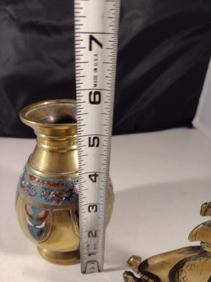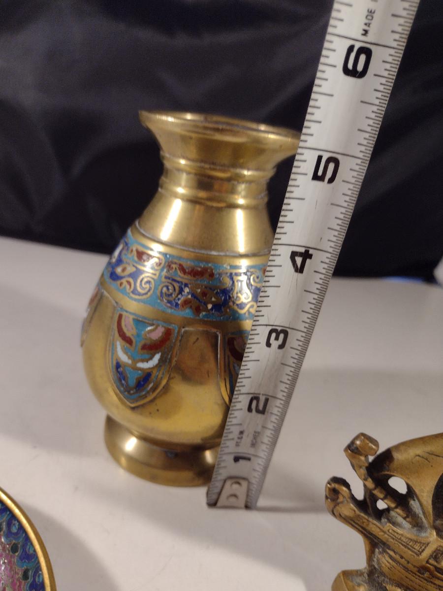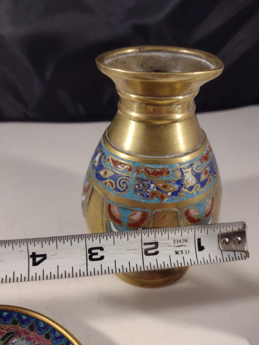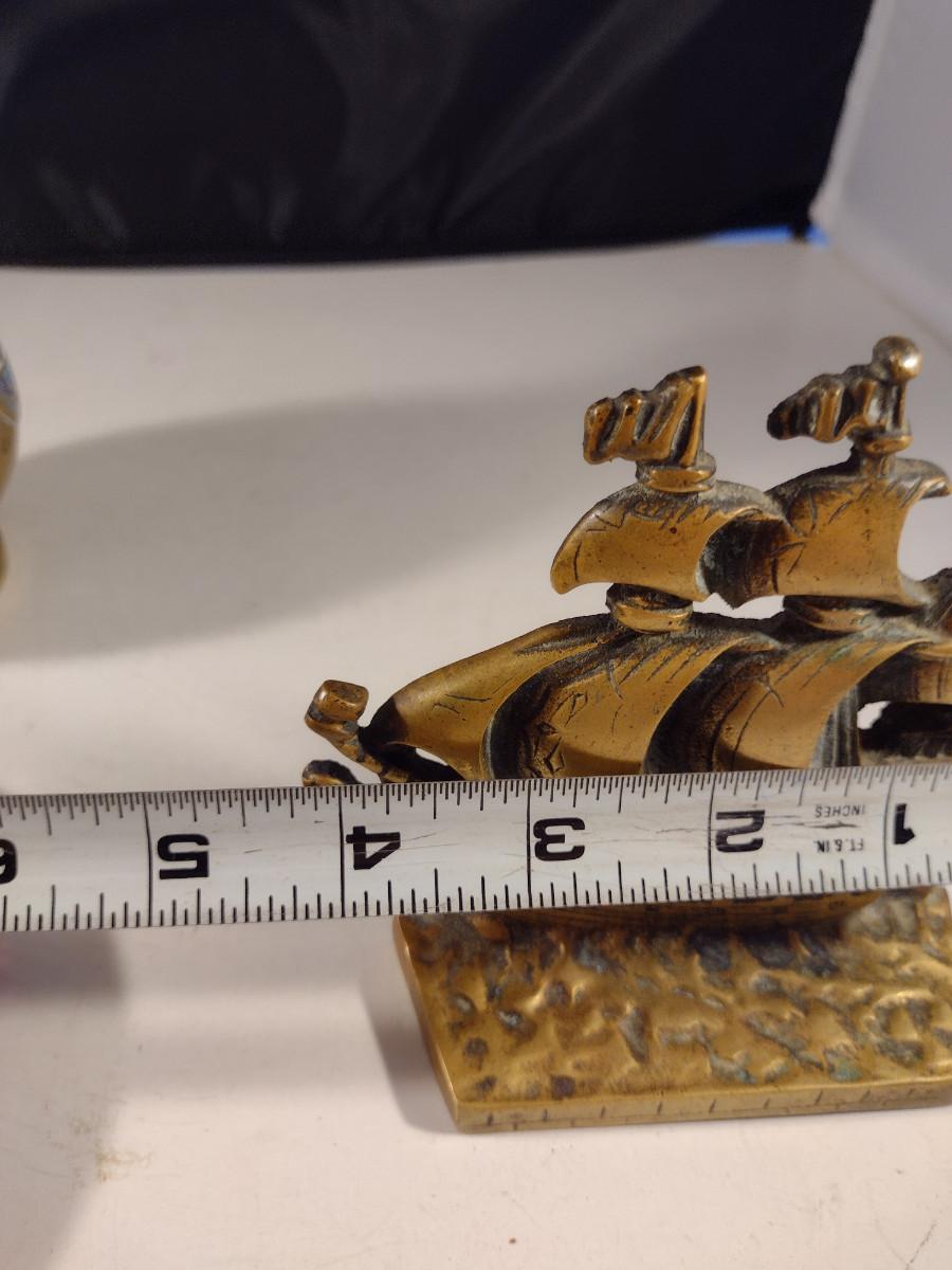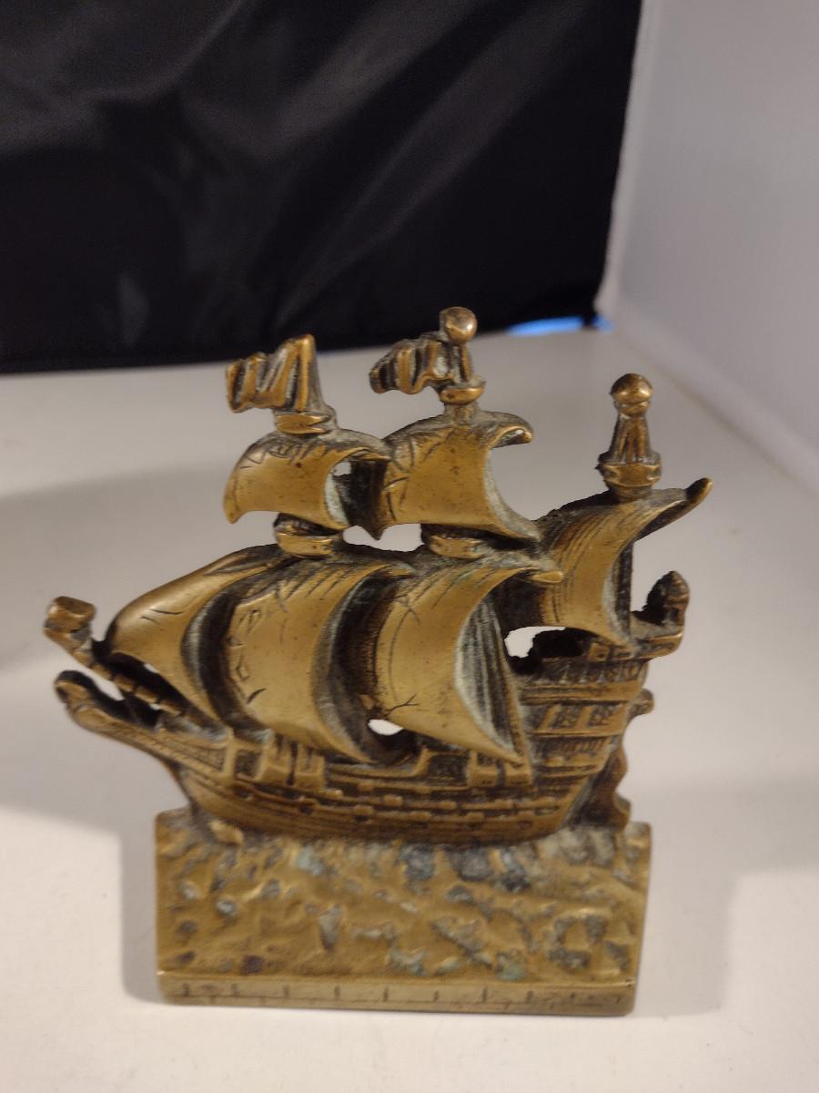 Collection of Metal Home Decor- Enameled Plate, Vase, Ship Design Bookend