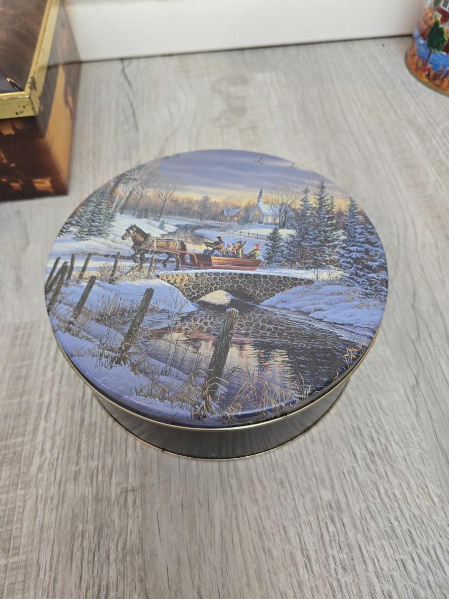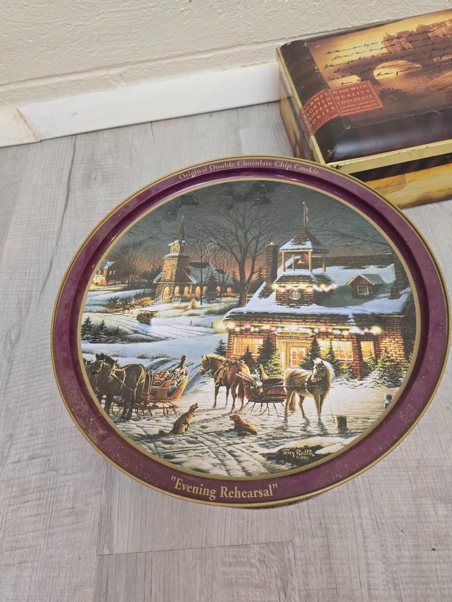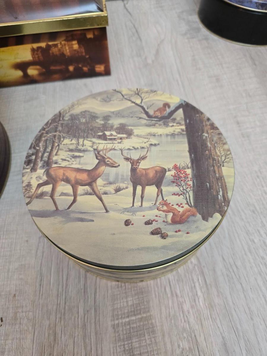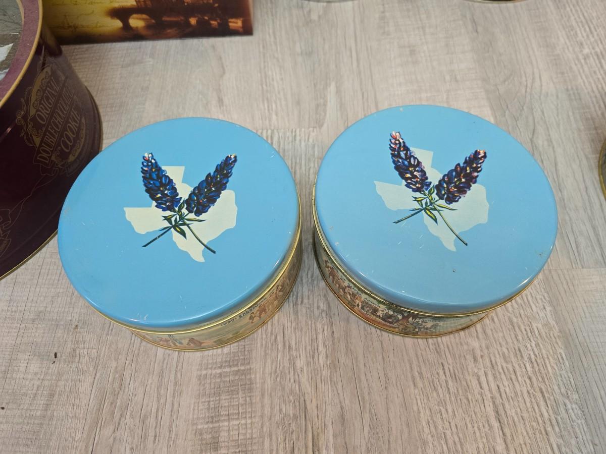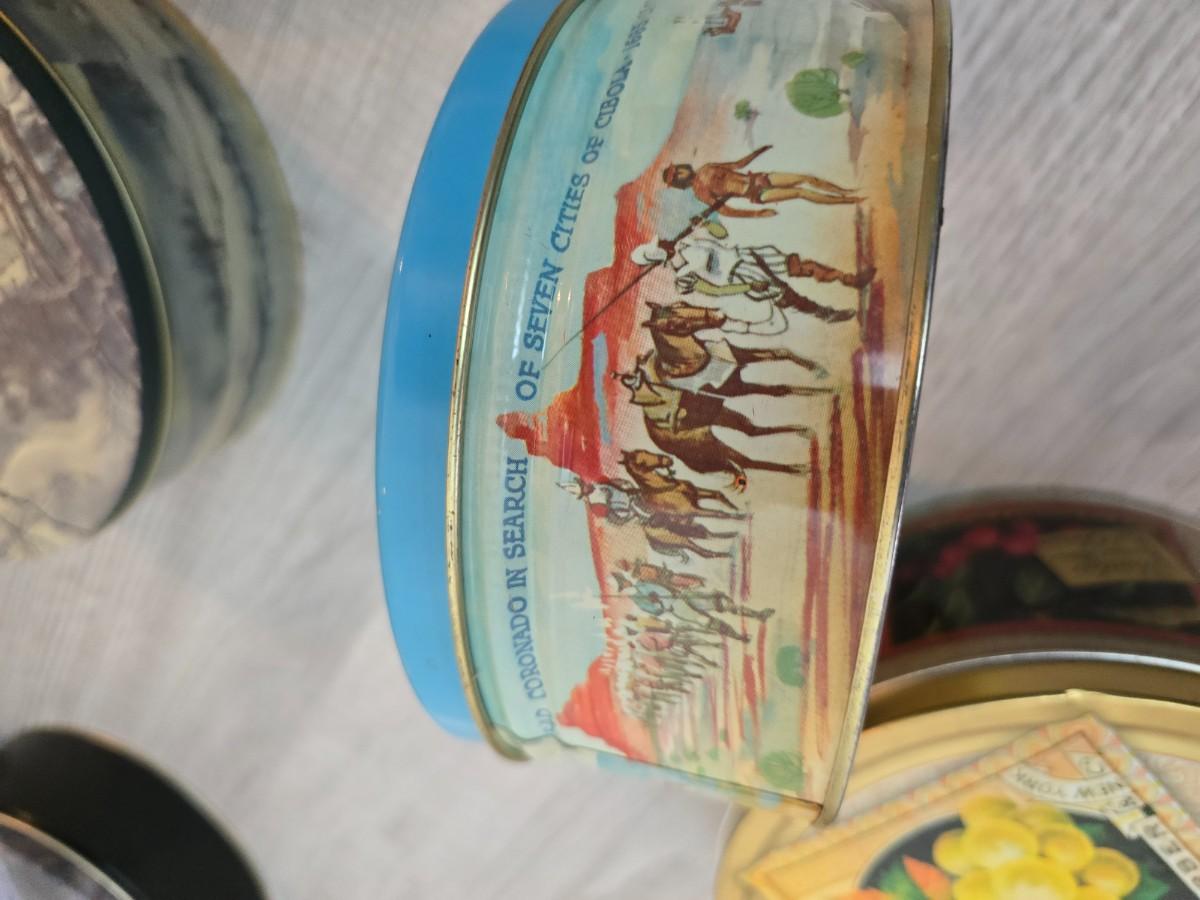 Collection of metal tins - Many with really neat country / farm scenes on them - some vintage