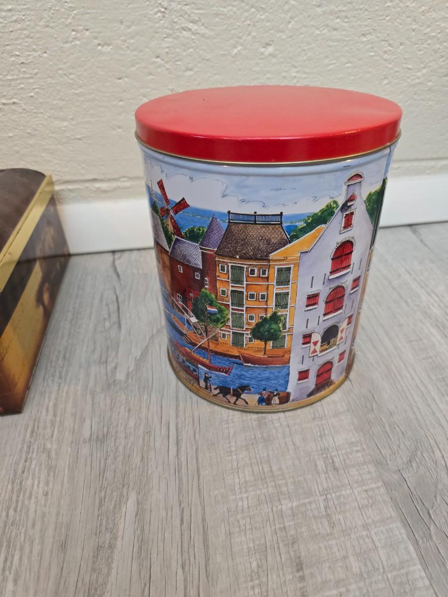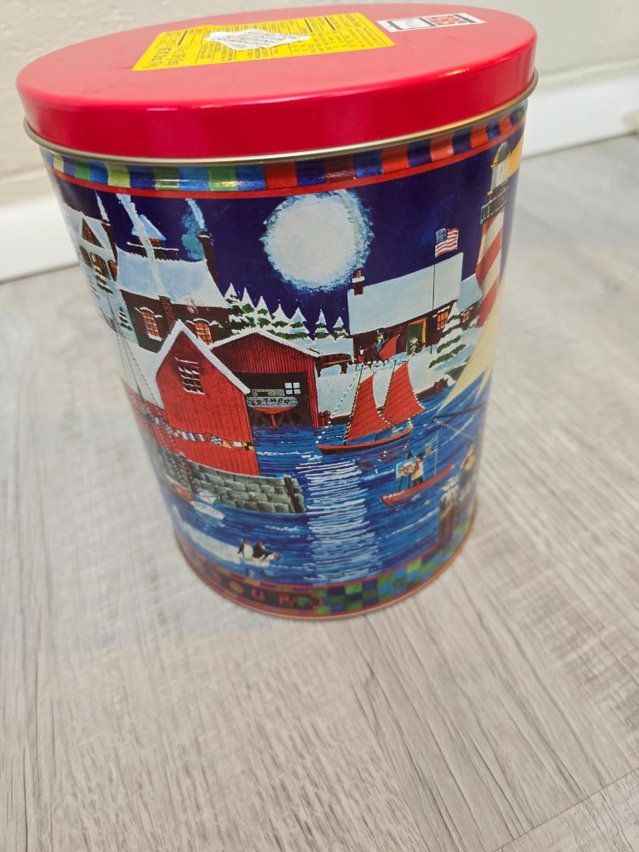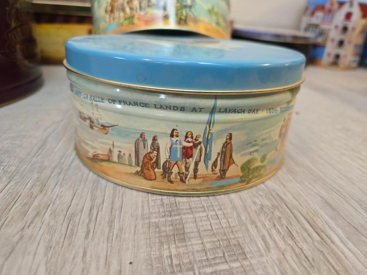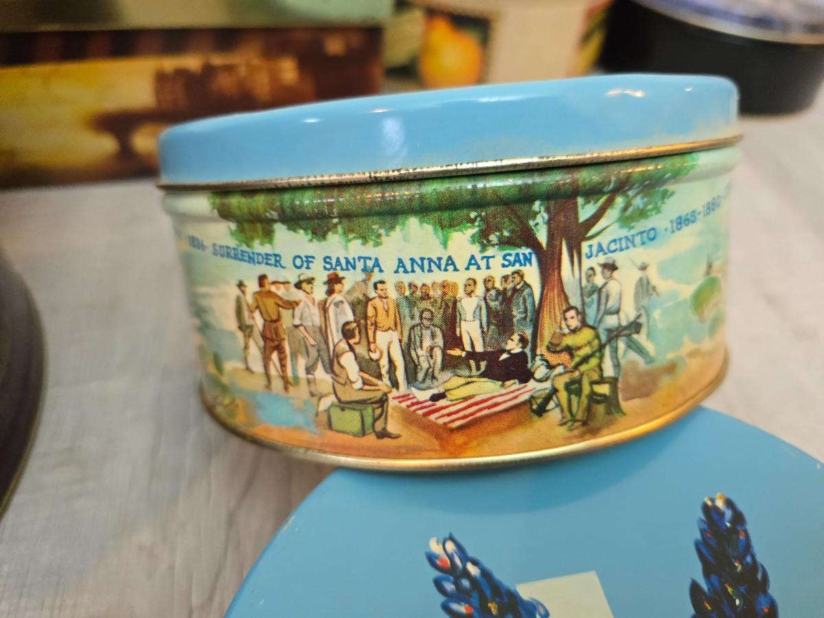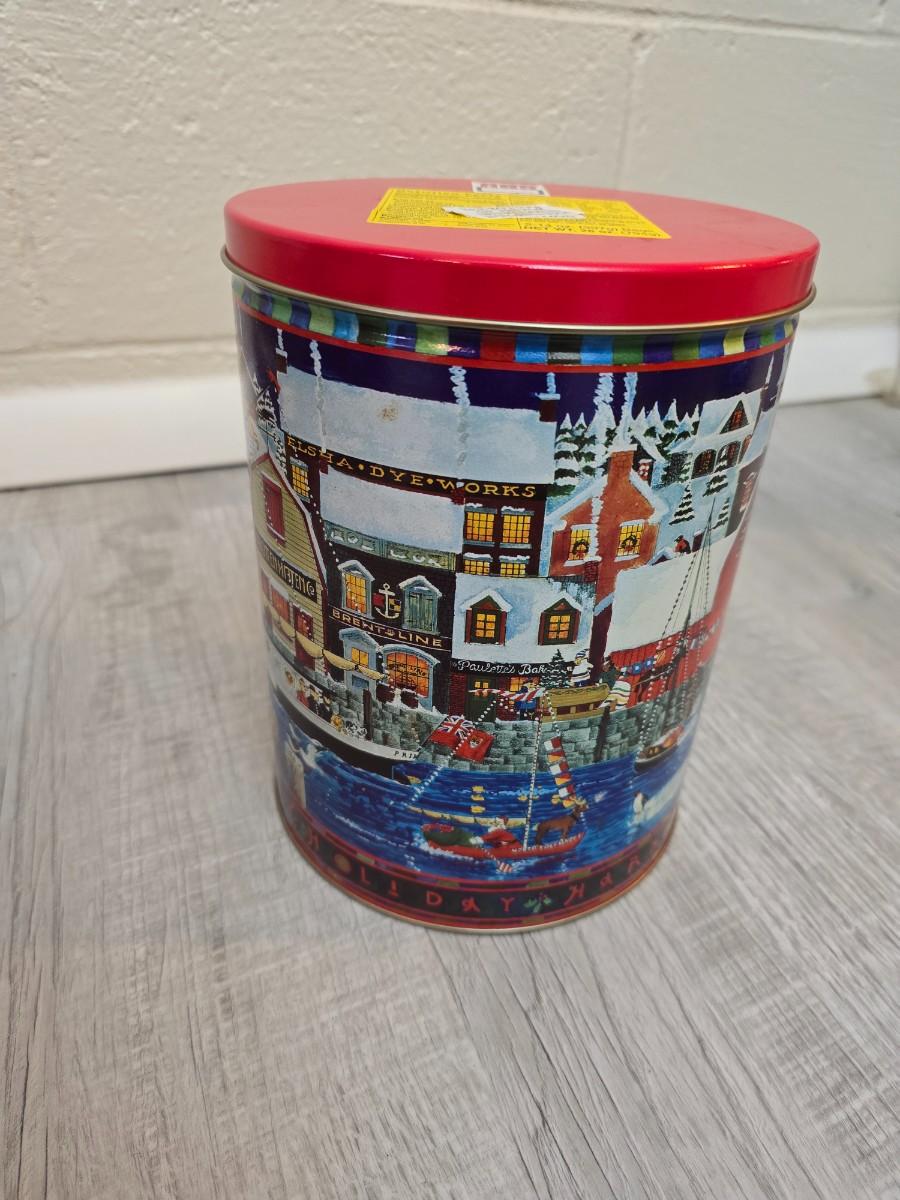 Collection of metal tins - Many with really neat country / farm scenes on them - some vintage