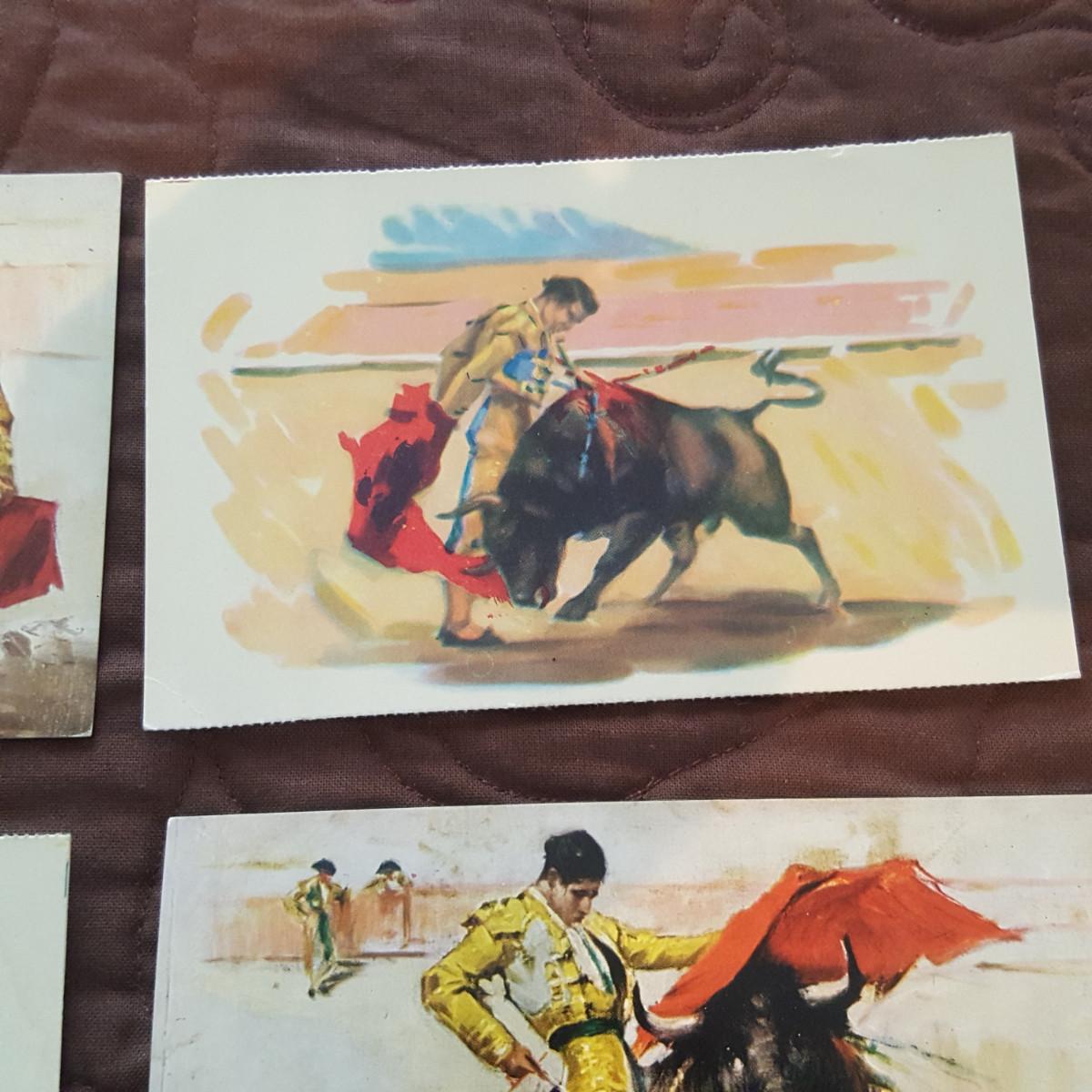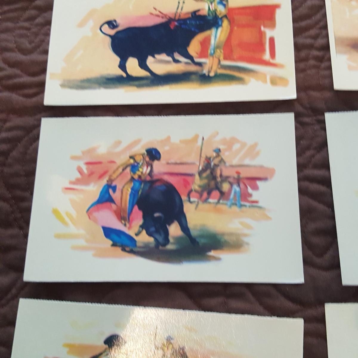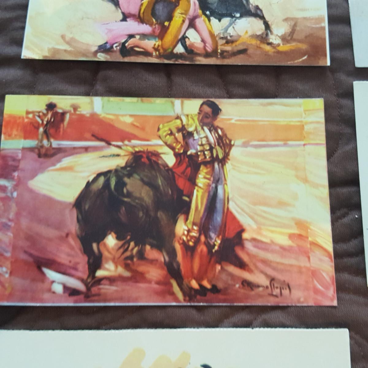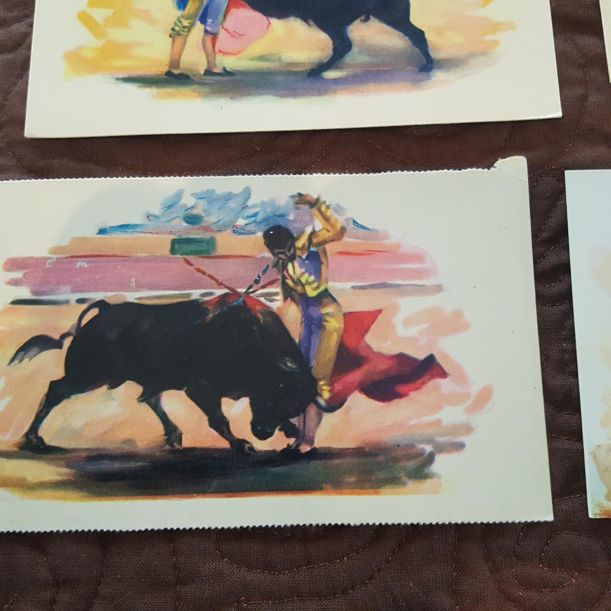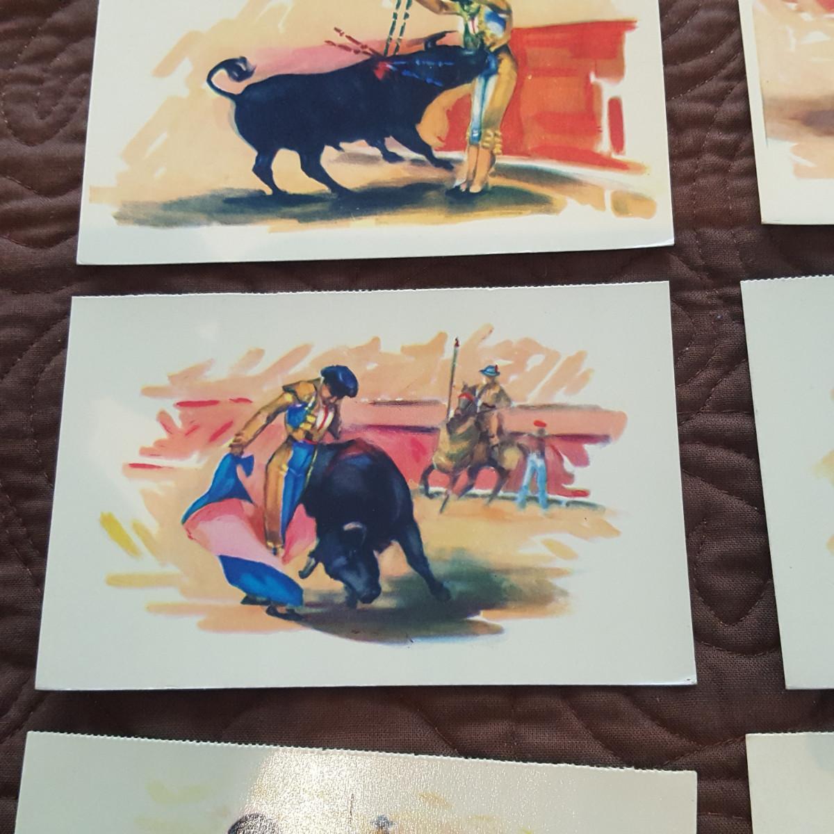 This auction lot is for a Collection of Mexican Bull Fight Art Postcards. The postcards were printed in Mexico and most probably a tourist purchase. The collection contains 22 different views. Most of the cards sport a perforated edge and appear that they once were part of a folder or of a larger printed sheet. They are in nice condition and could be just collected or used for many creative efforts.