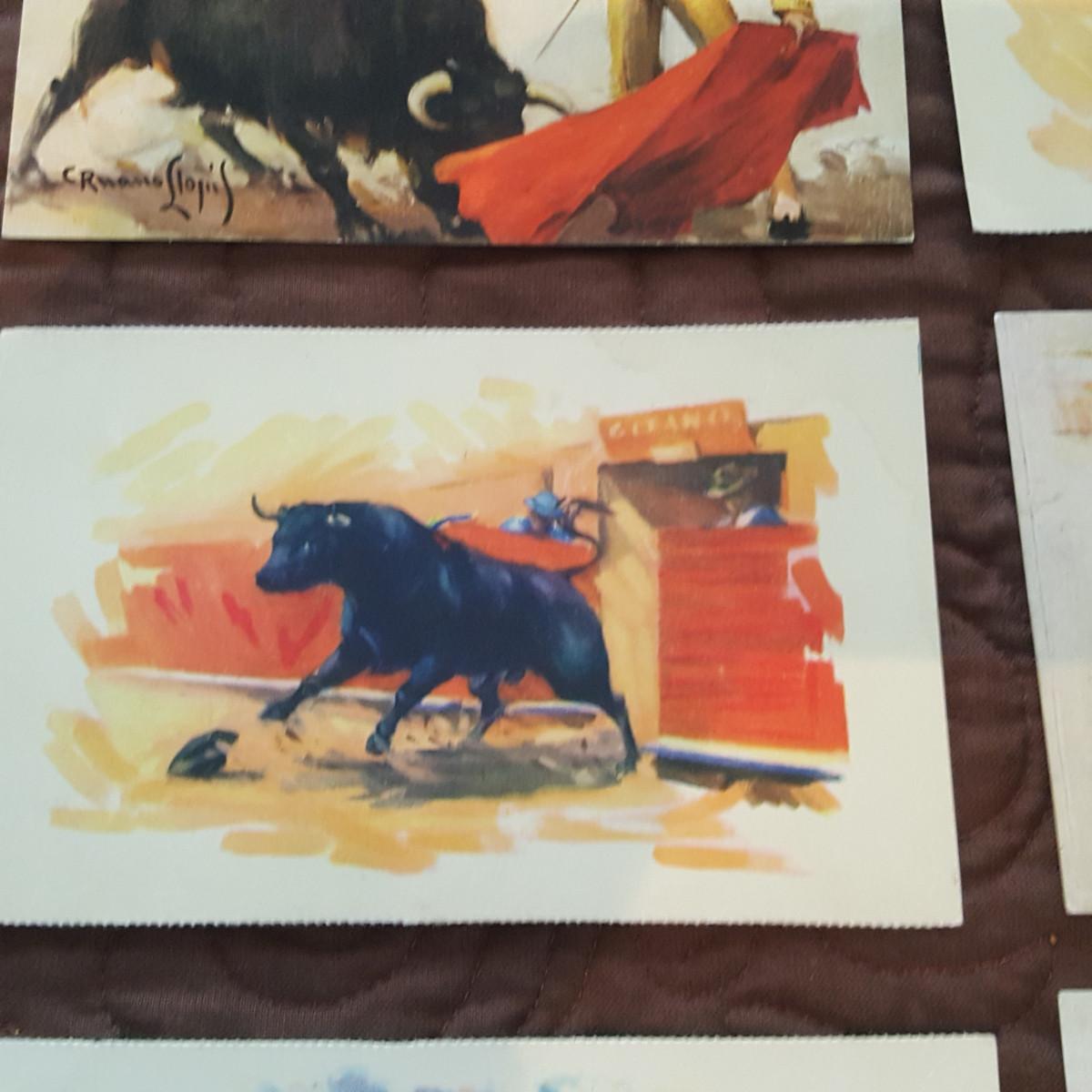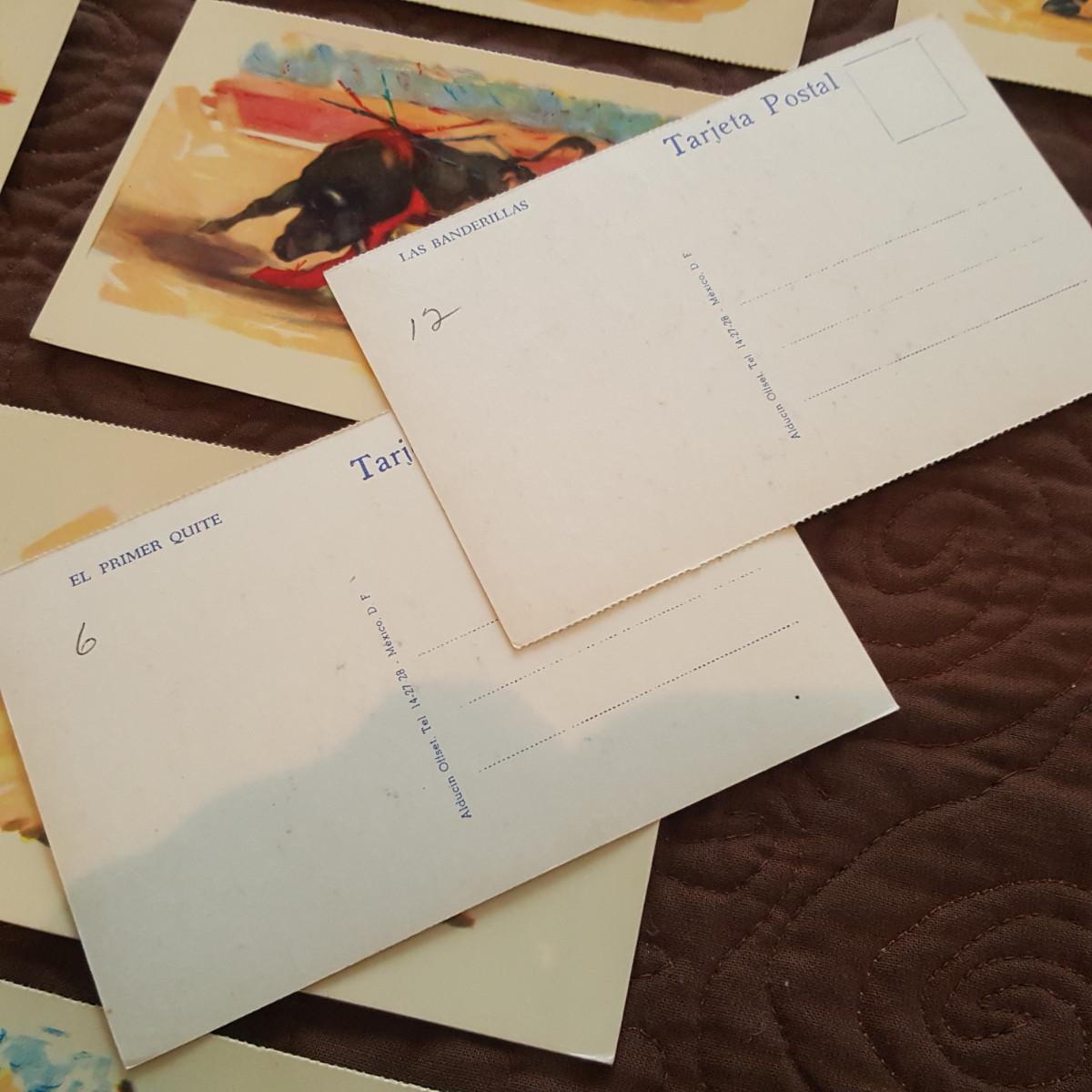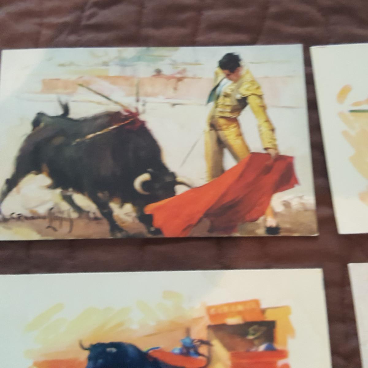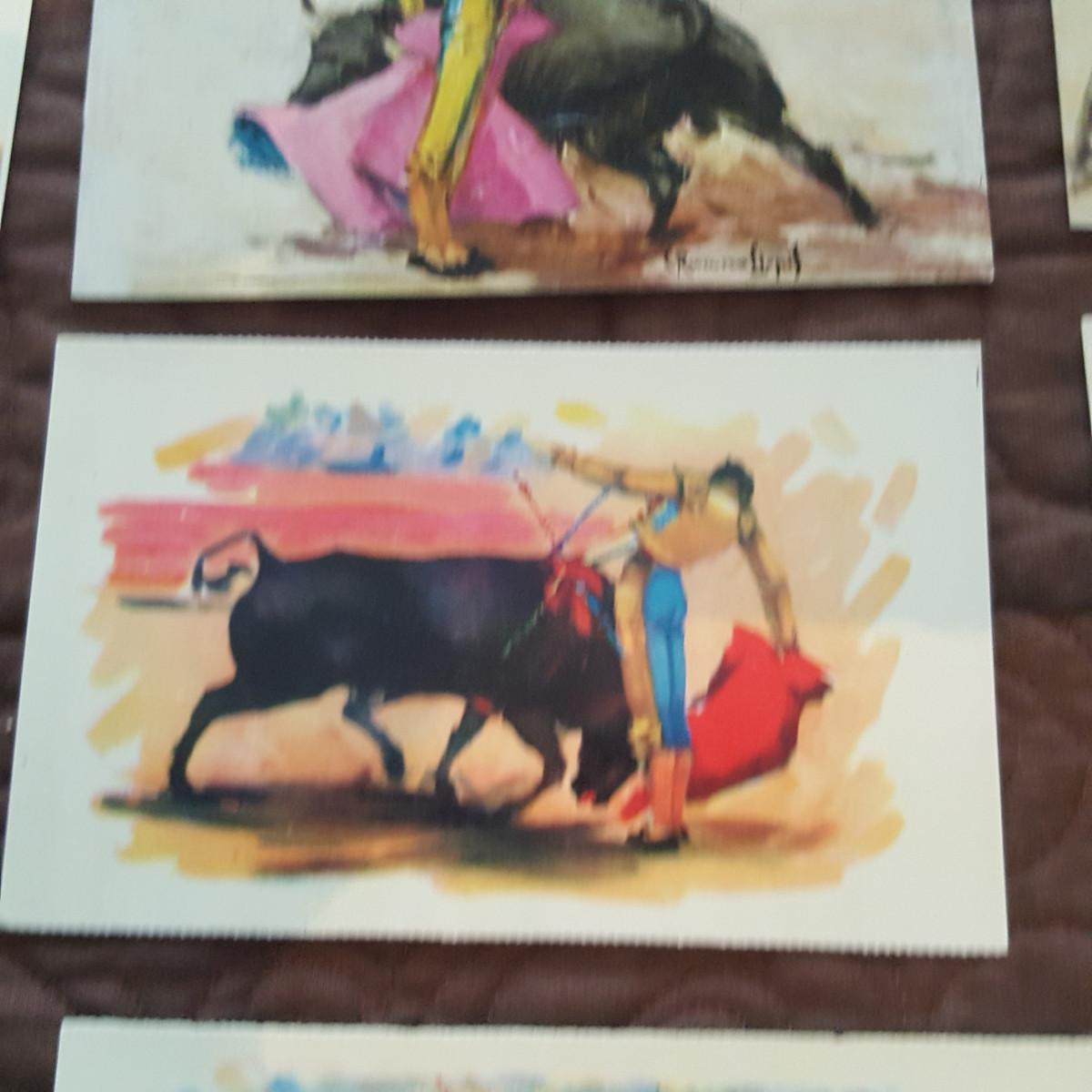 This auction lot is for a Collection of Mexican Bull Fight Art Postcards. The postcards were printed in Mexico and most probably a tourist purchase. The collection contains 22 different views. Most of the cards sport a perforated edge and appear that they once were part of a folder or of a larger printed sheet. They are in nice condition and could be just collected or used for many creative efforts.