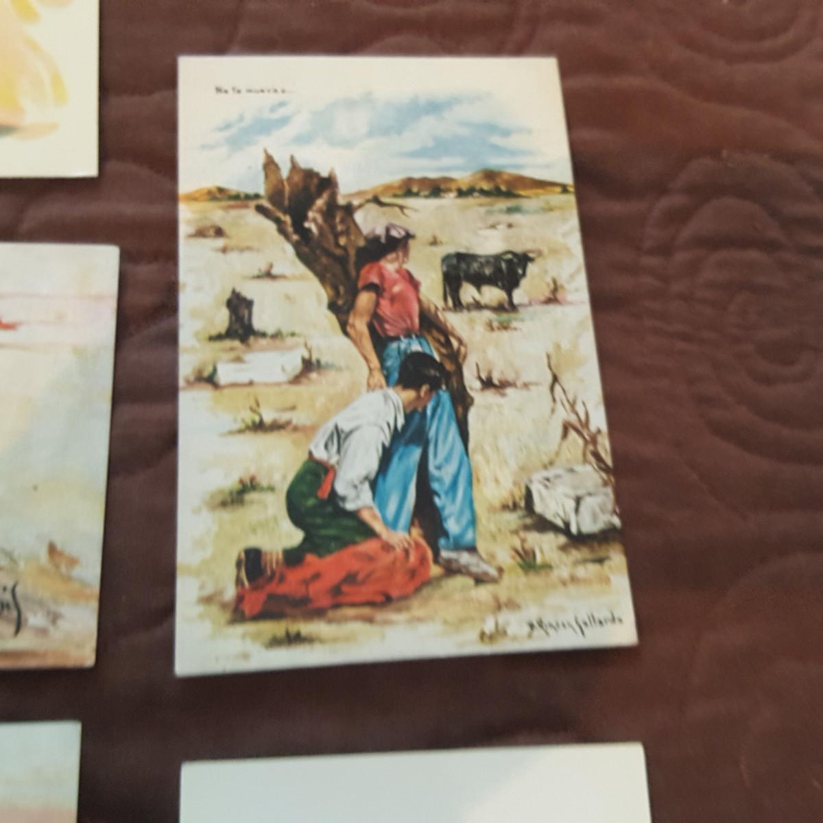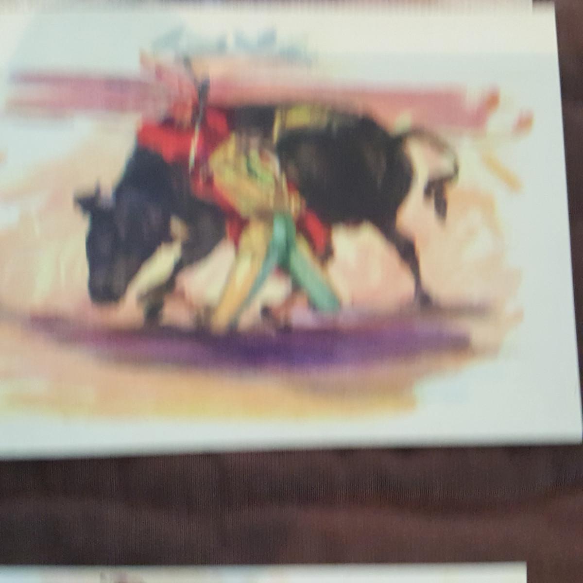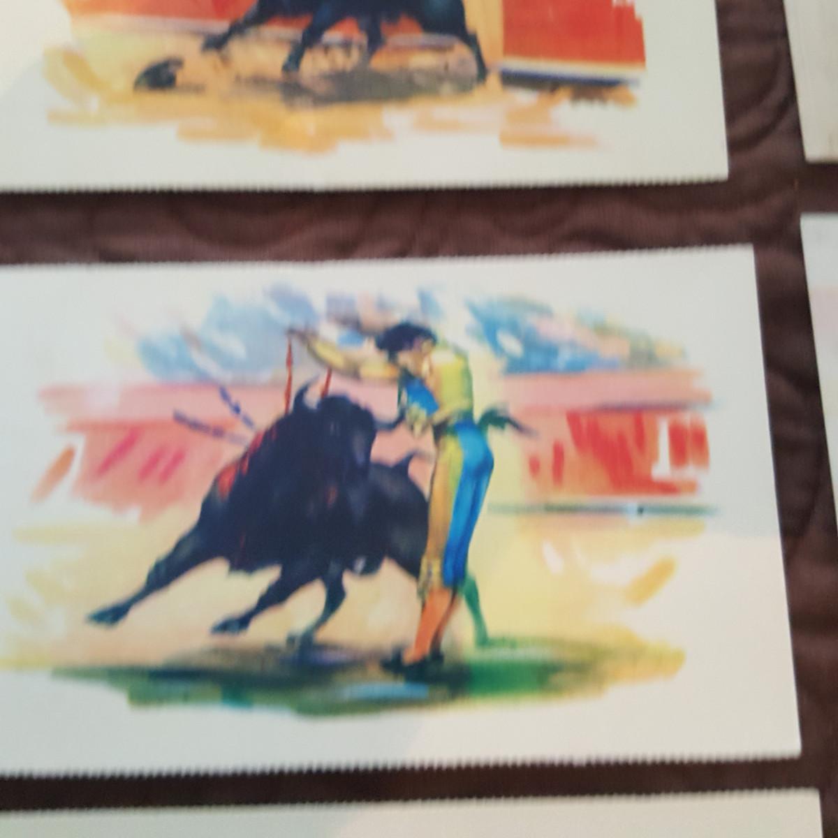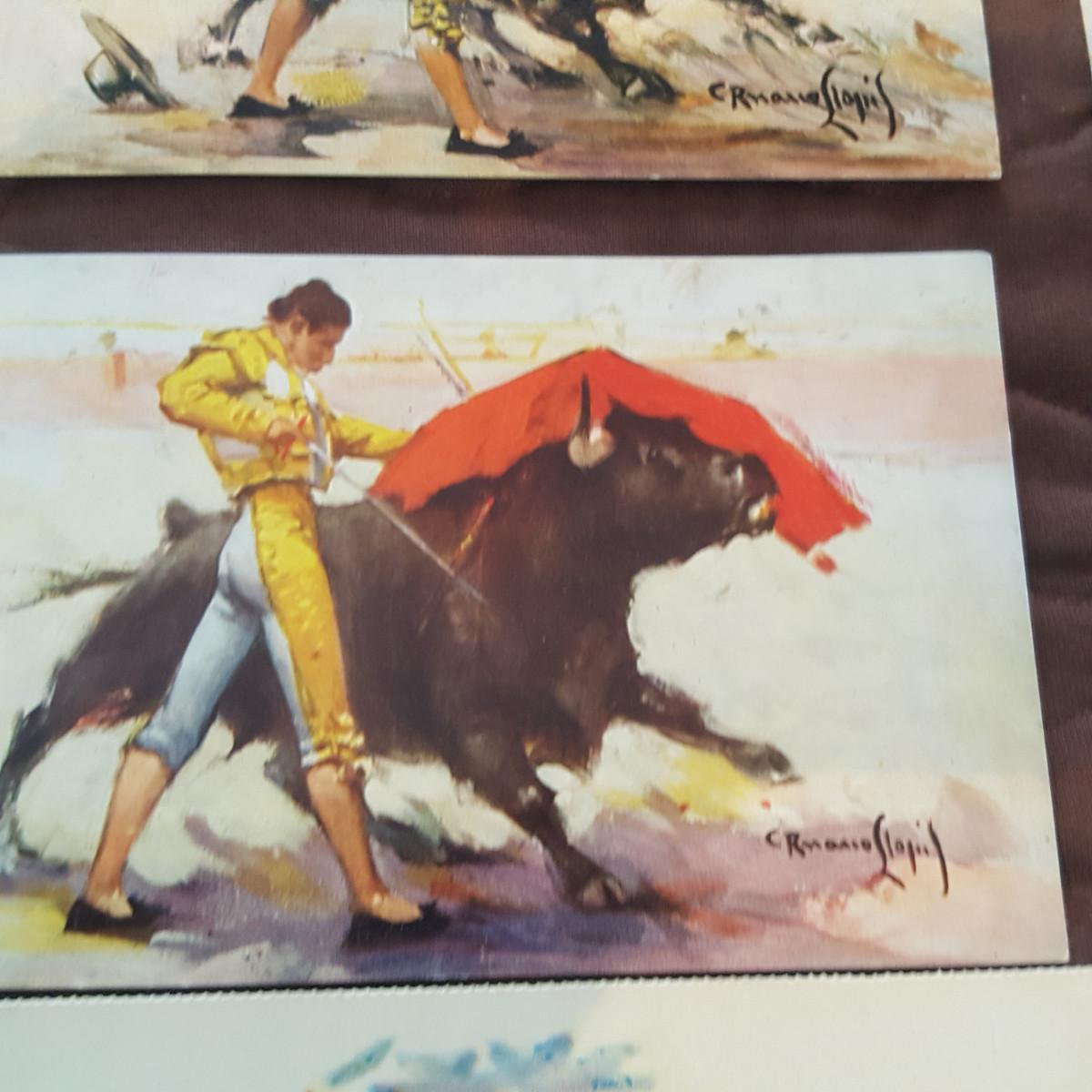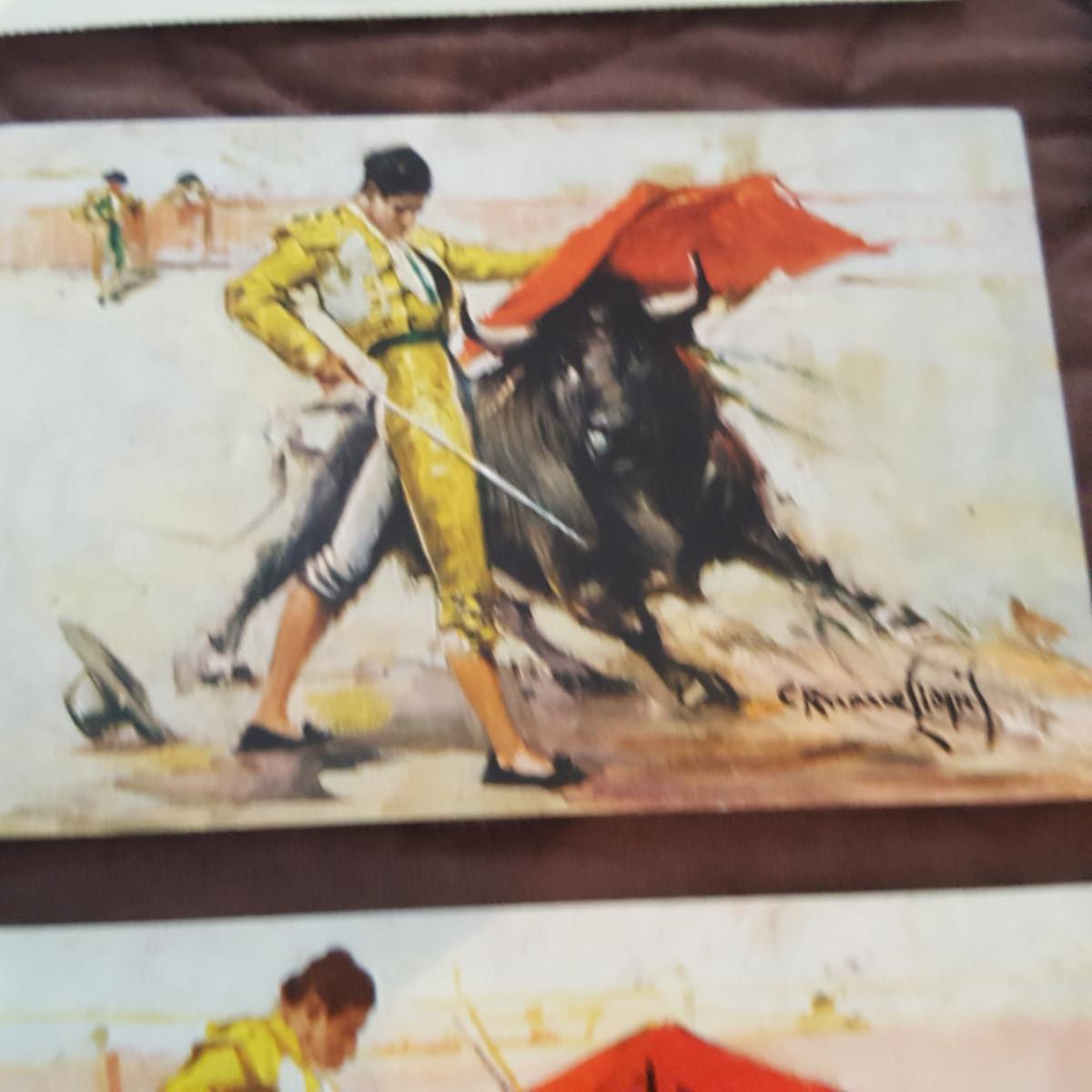 This auction lot is for a Collection of Mexican Bull Fight Art Postcards. The postcards were printed in Mexico and most probably a tourist purchase. The collection contains 22 different views. Most of the cards sport a perforated edge and appear that they once were part of a folder or of a larger printed sheet. They are in nice condition and could be just collected or used for many creative efforts.