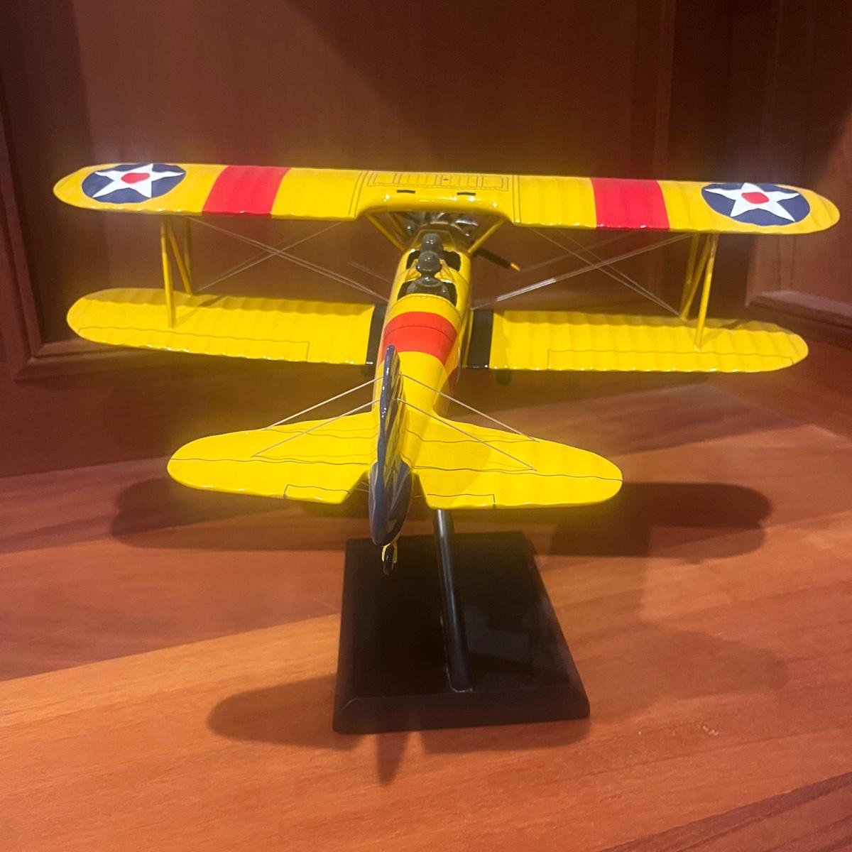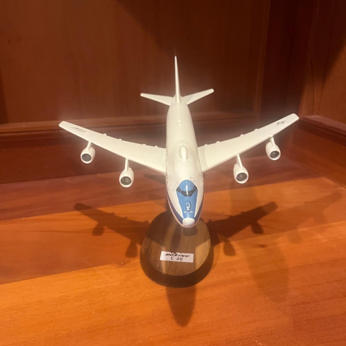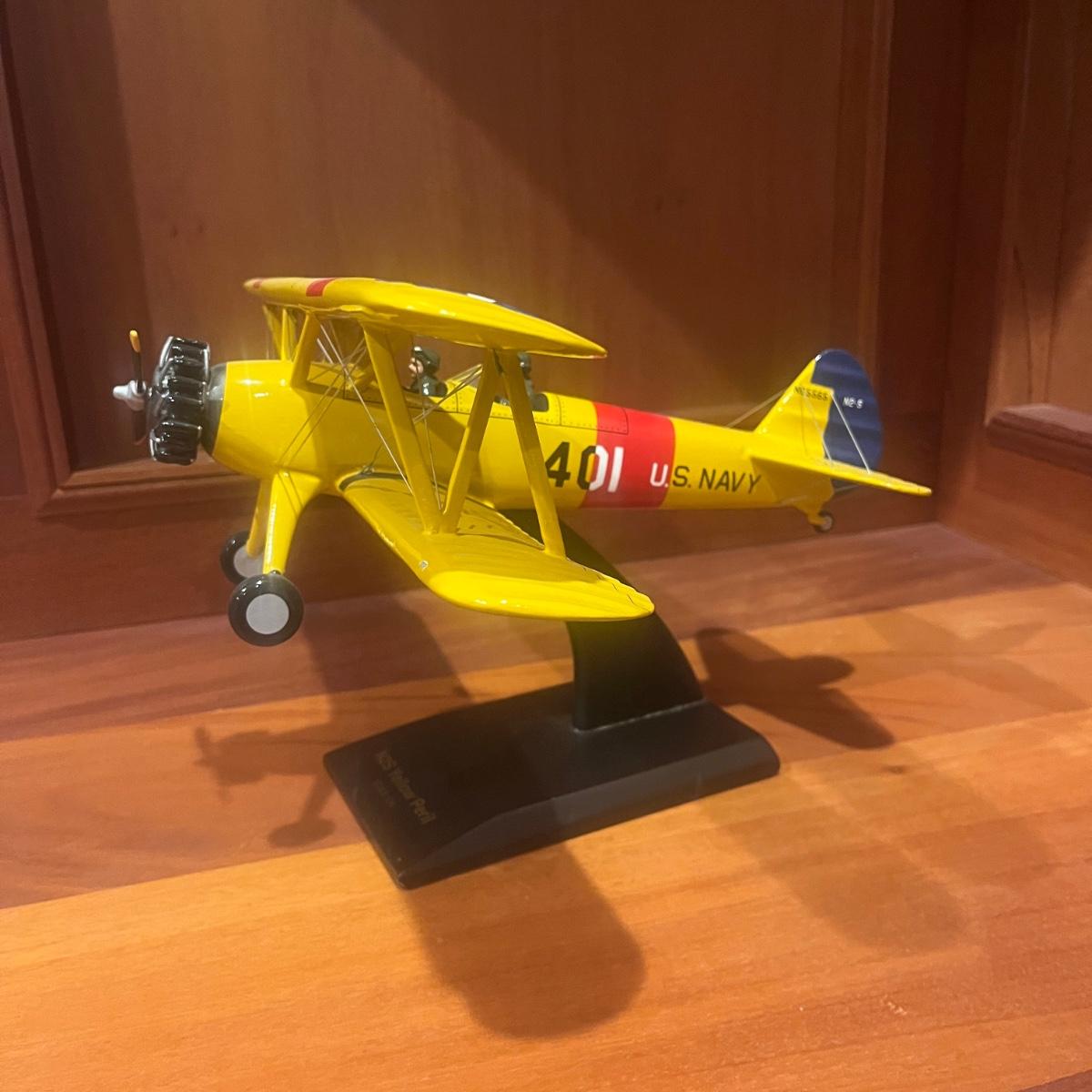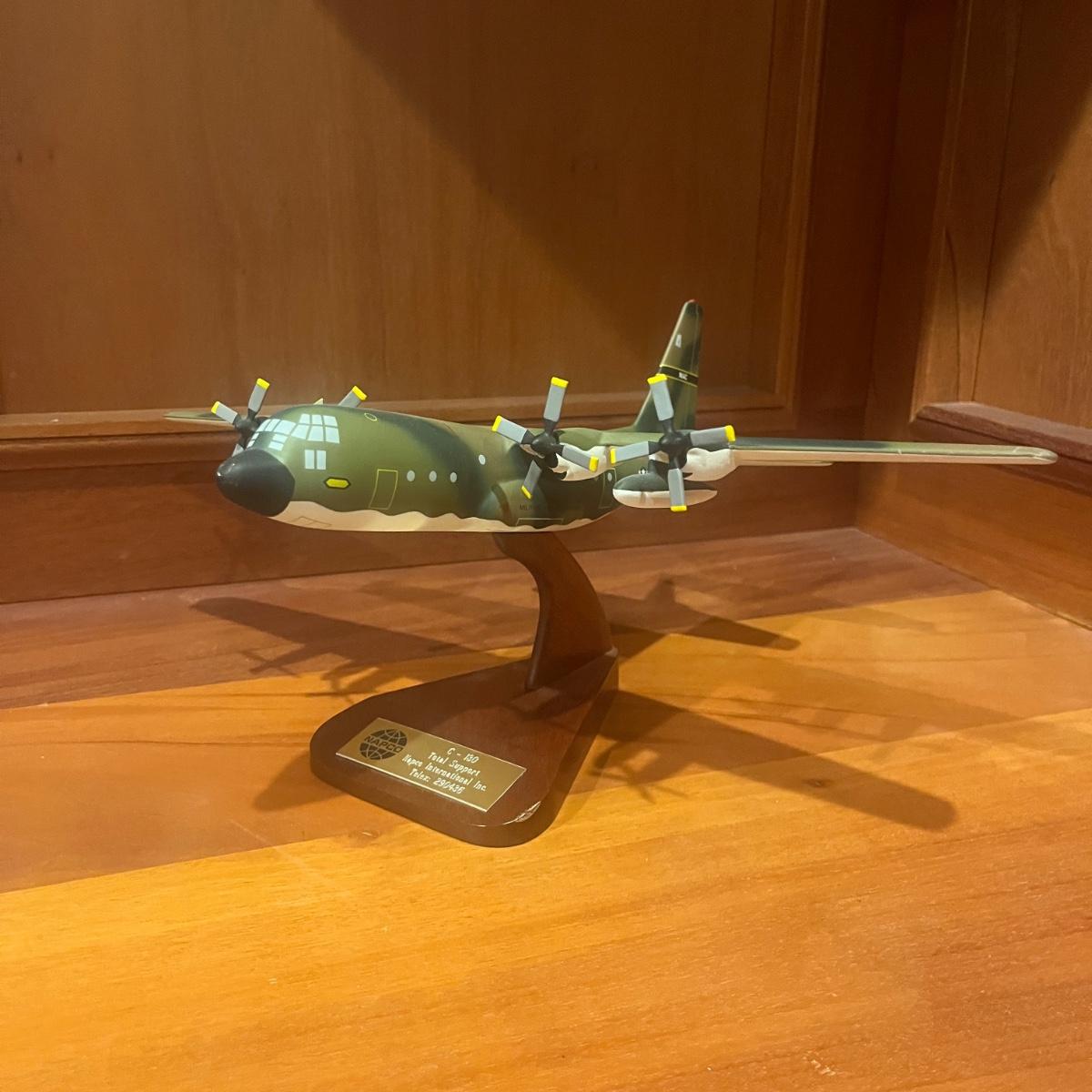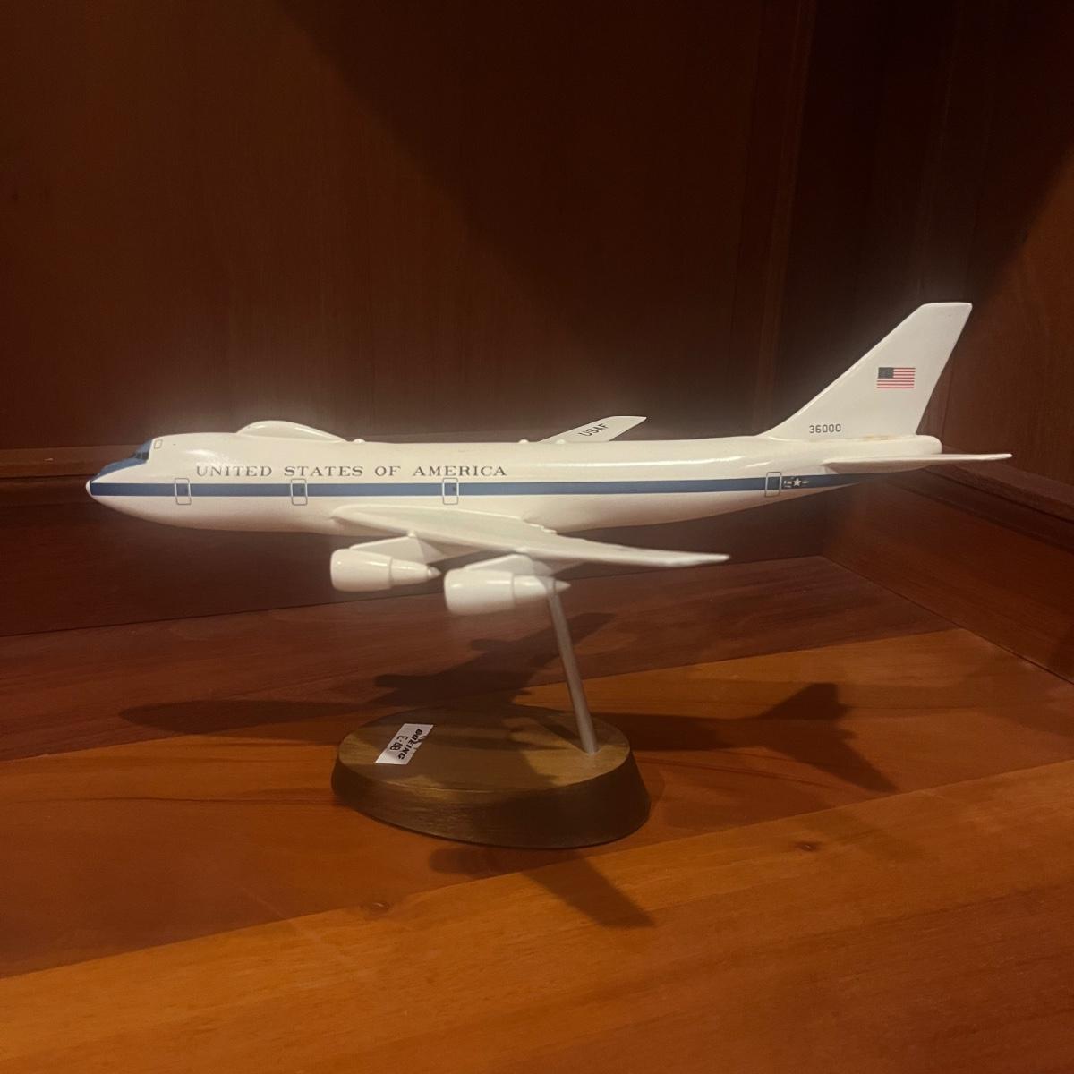 This collection of models includes a Boeing E-4B, C-130, B-25B and a N2S Yellow Peril biplane. The biplane measures 16” x 13” x 8”H and appears to be resin. The other three planes appear to be wooden.