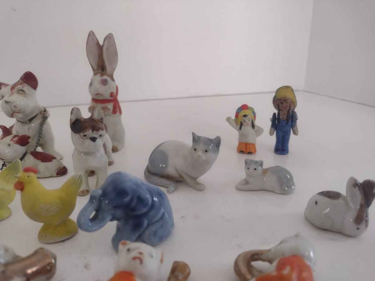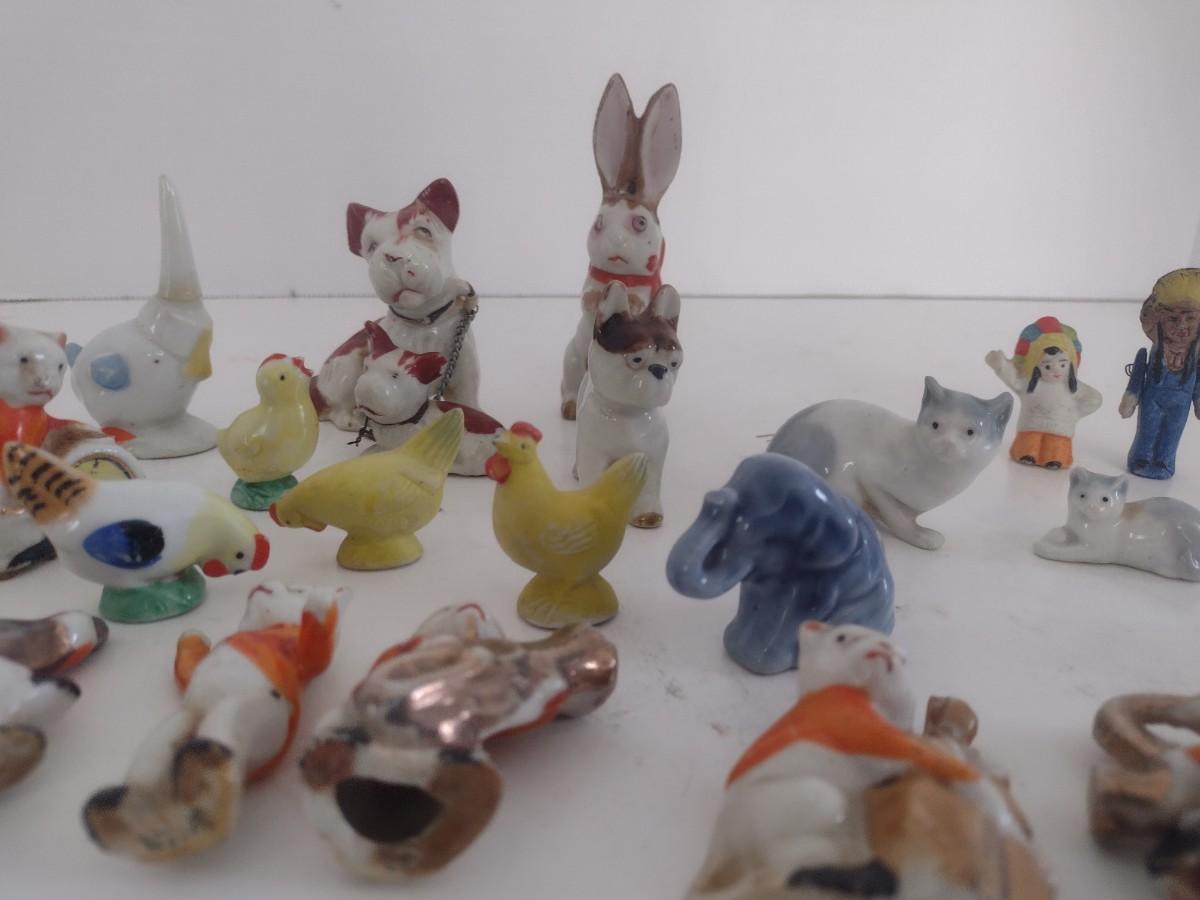 Collection of Miniature Ceramic Figurines Mostly Vintage Japan. Some items may be chipped or missing parts.
