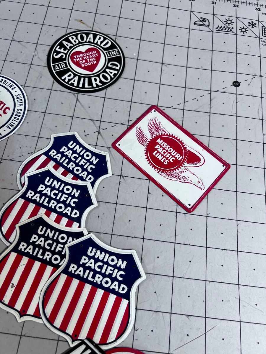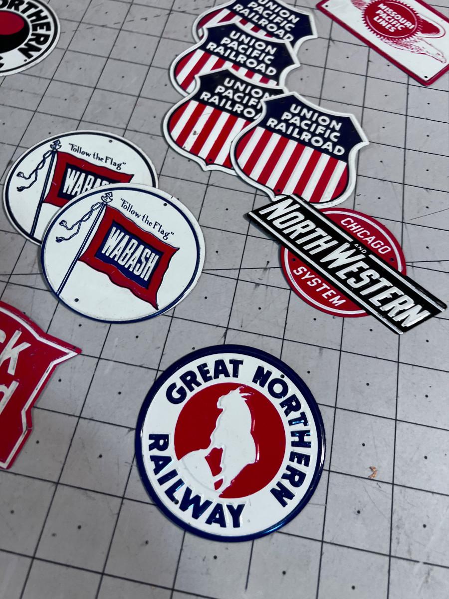 Collection of Miniature Railroad Plaque Signs, All Metal