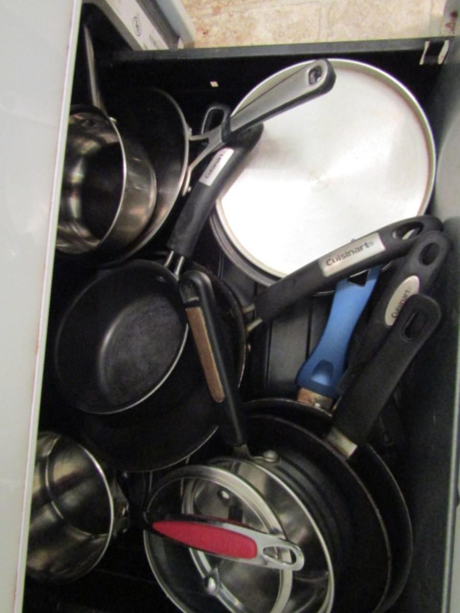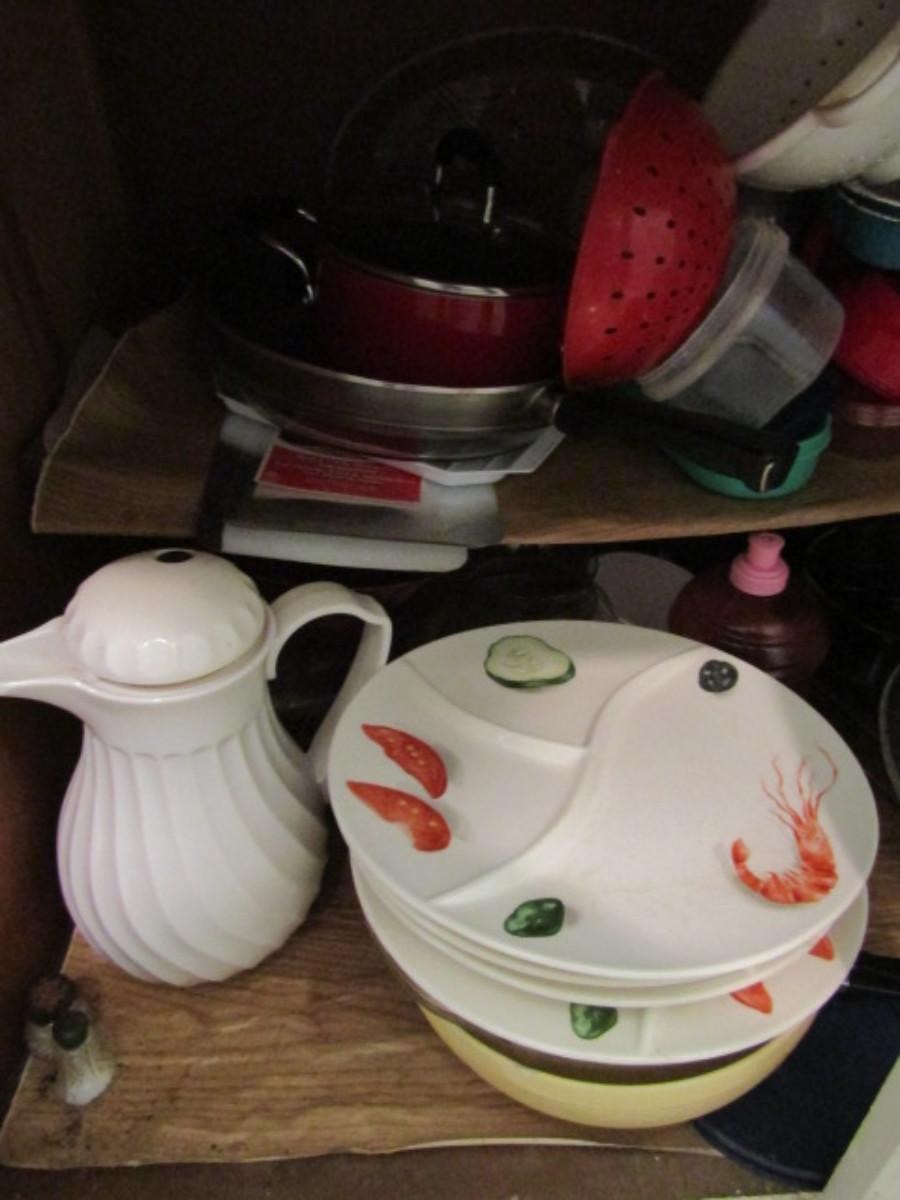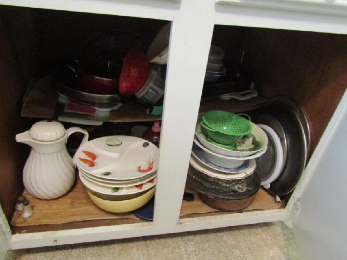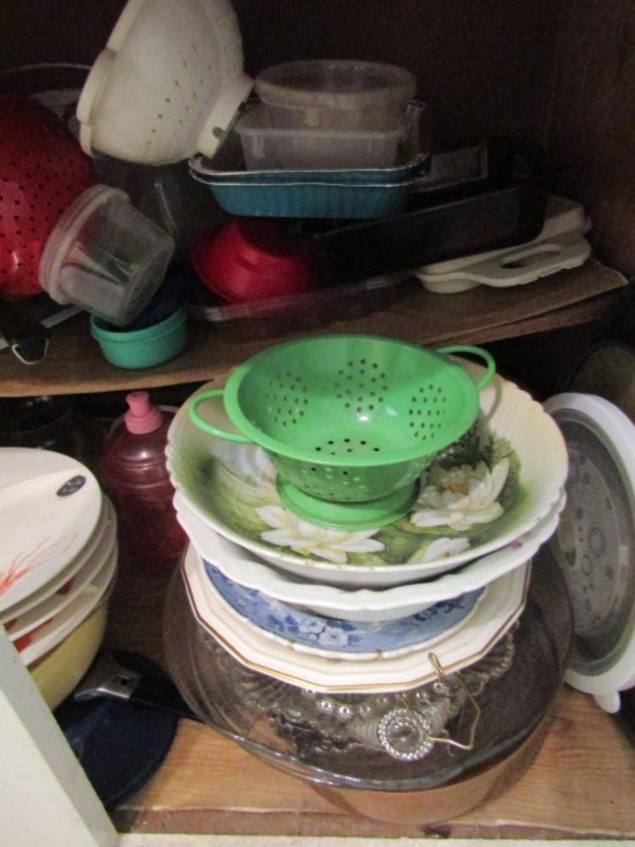 Collection of Miscellaneous Kitchen Ware. Group includes dinnerware, bake ware, pots and pans, plastic storage containers, etc. Please see all pictures.
