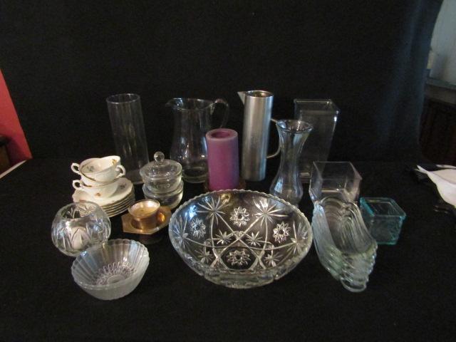 Collection of Miscellaneous Tableware- Pitchers, Vases, Glass Serveware, Bone China Cups & Saucers, etc.