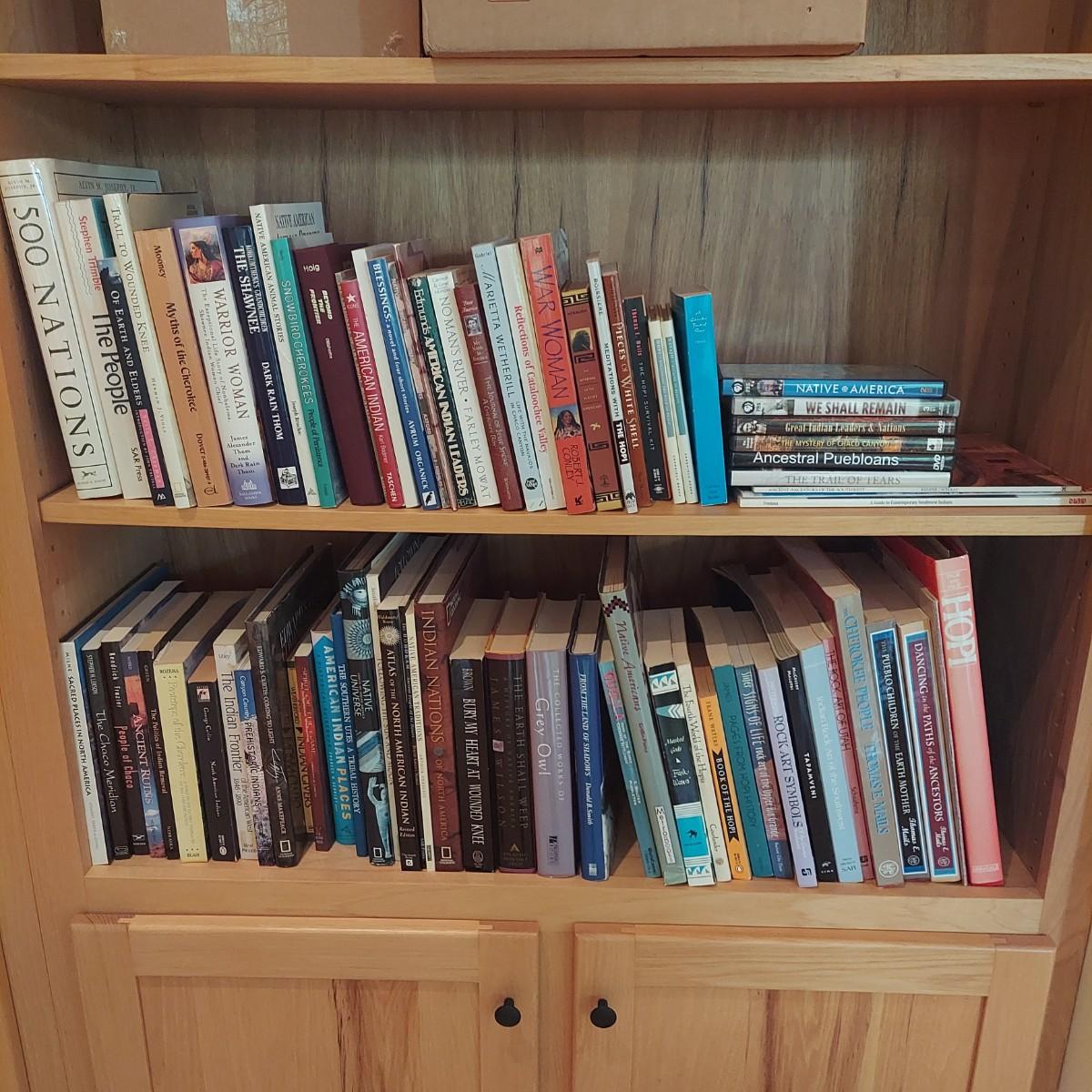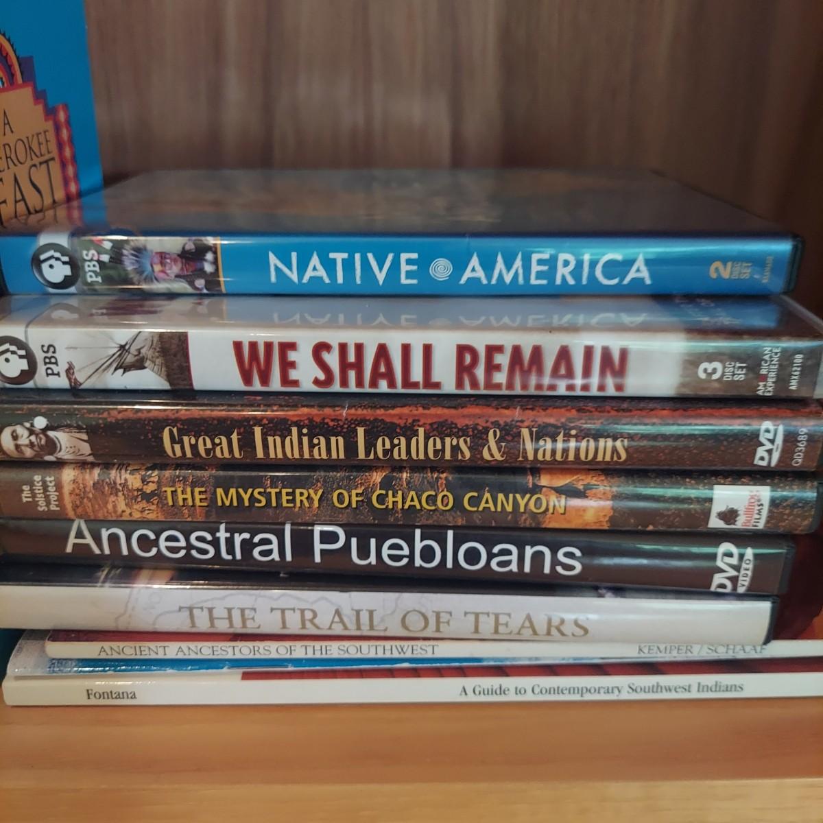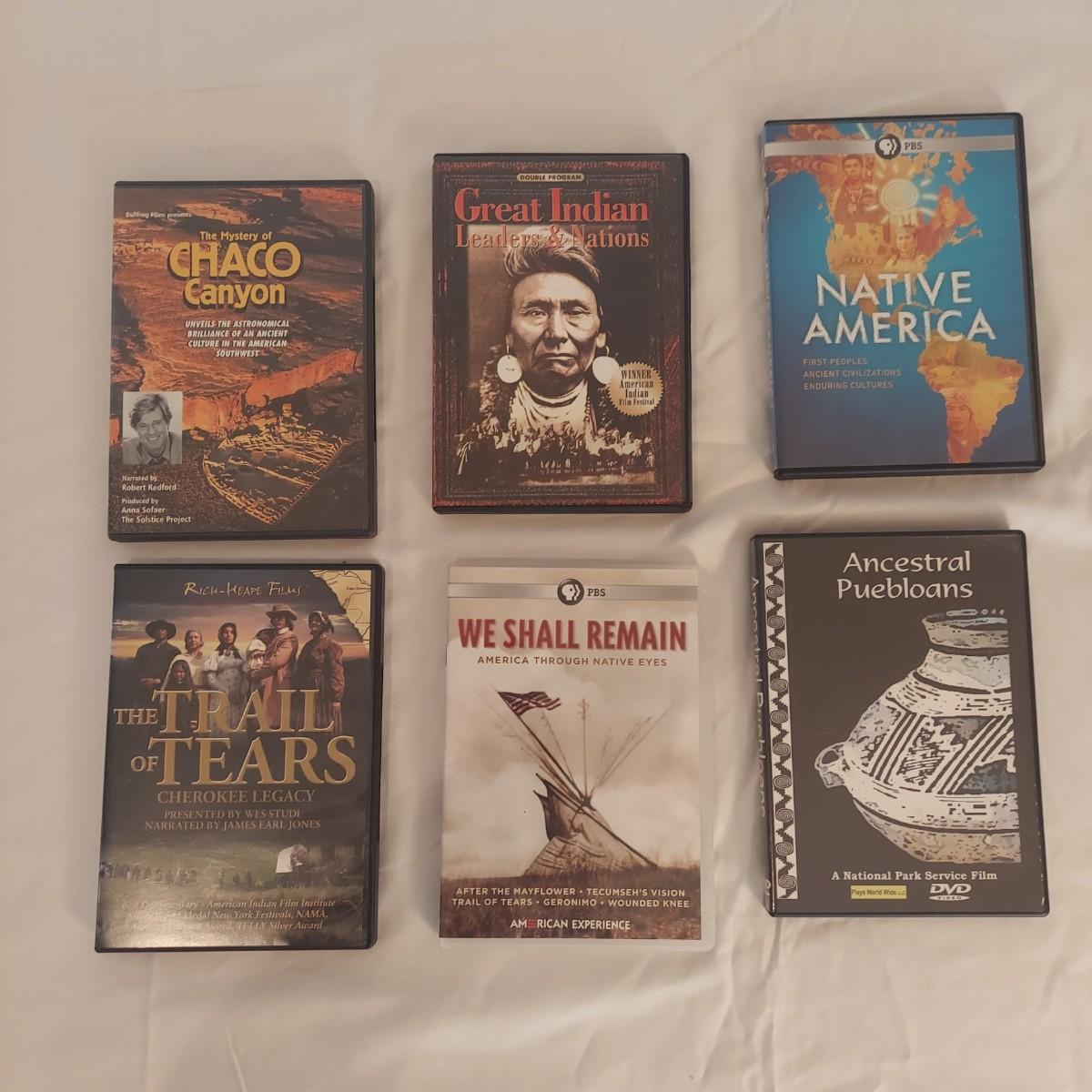 Lot includes 60+ books about Native culture. Also includes six DVDs. Please see photos for details. Shipping available