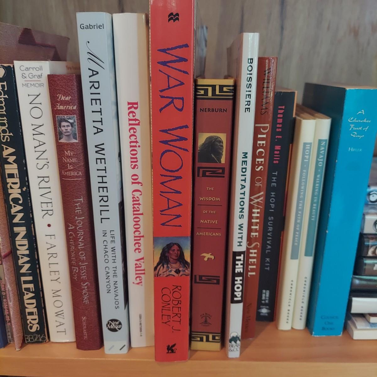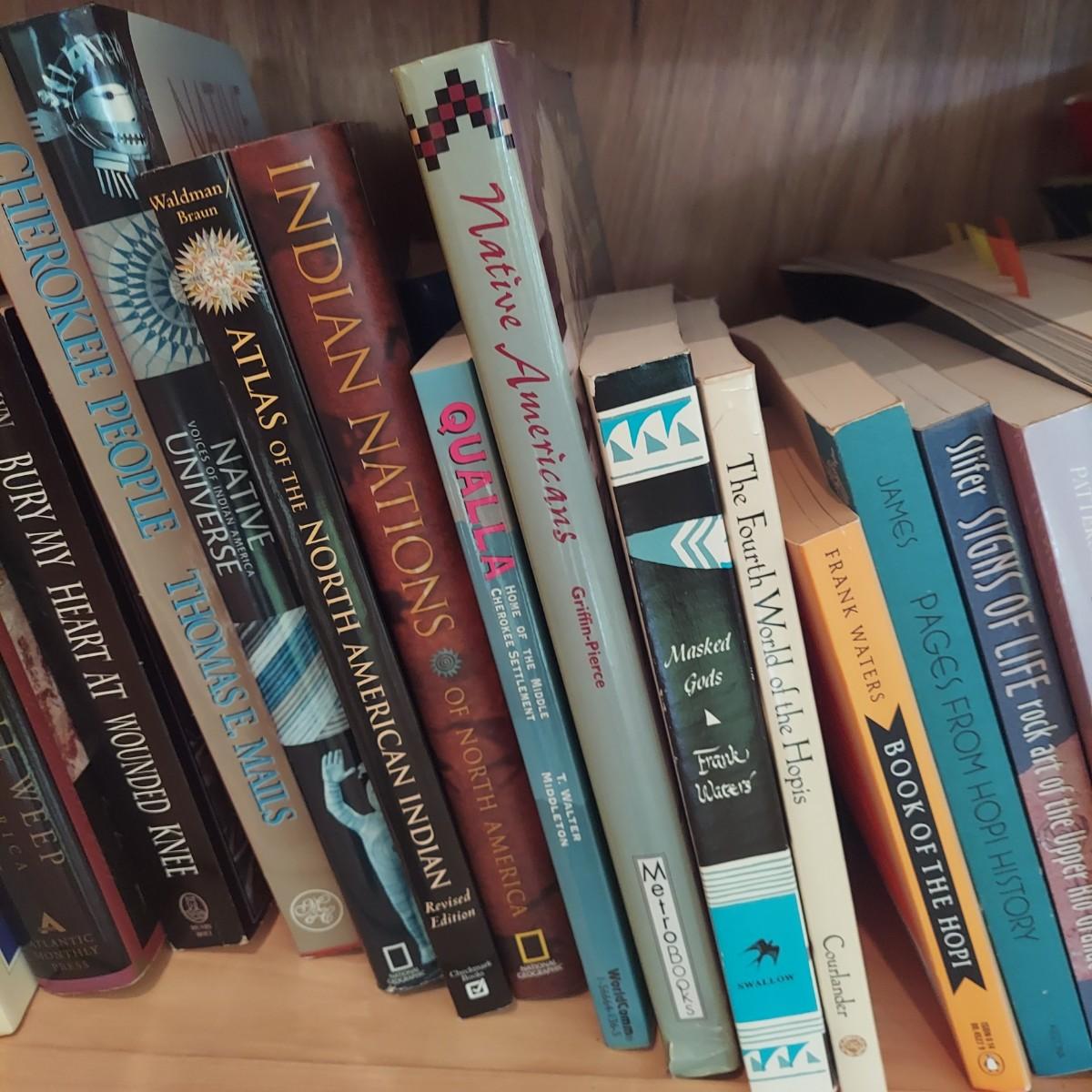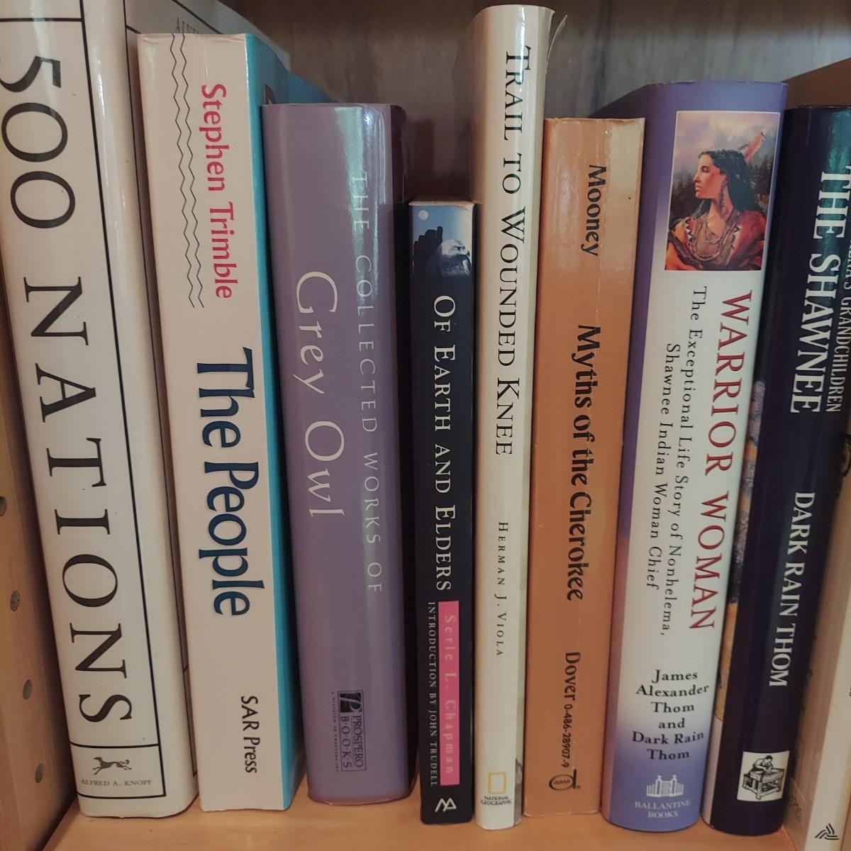 Lot includes 60+ books about Native culture. Also includes six DVDs. Please see photos for details. Shipping available