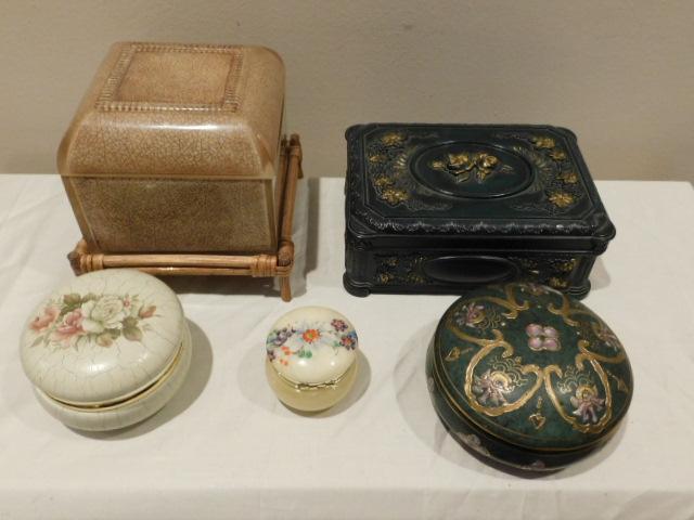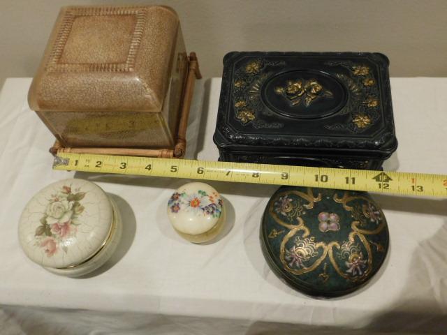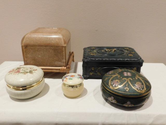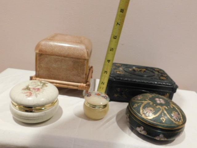 Collection of Natural Stone and Ceramic Trinket Boxes Various Sizes and Shapes