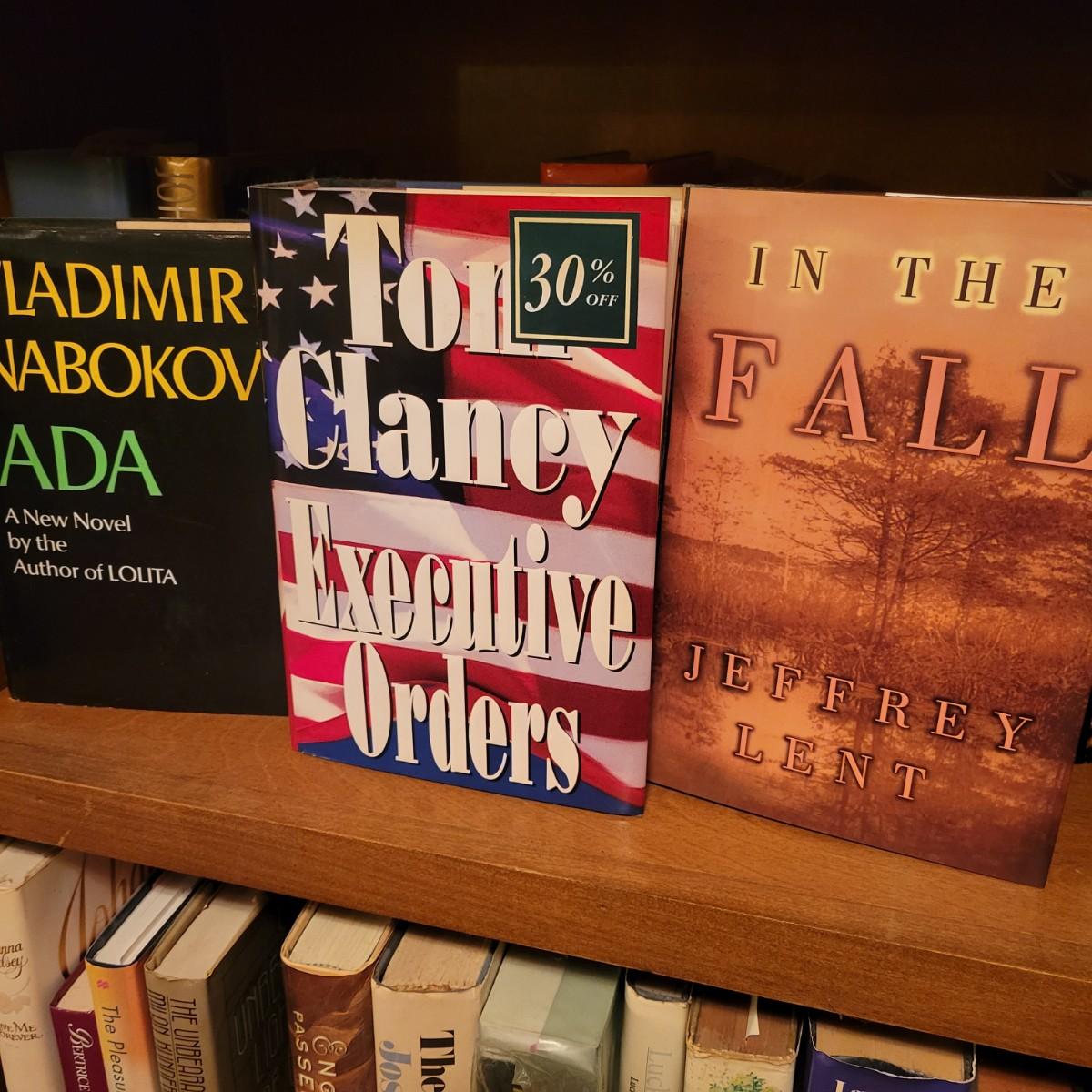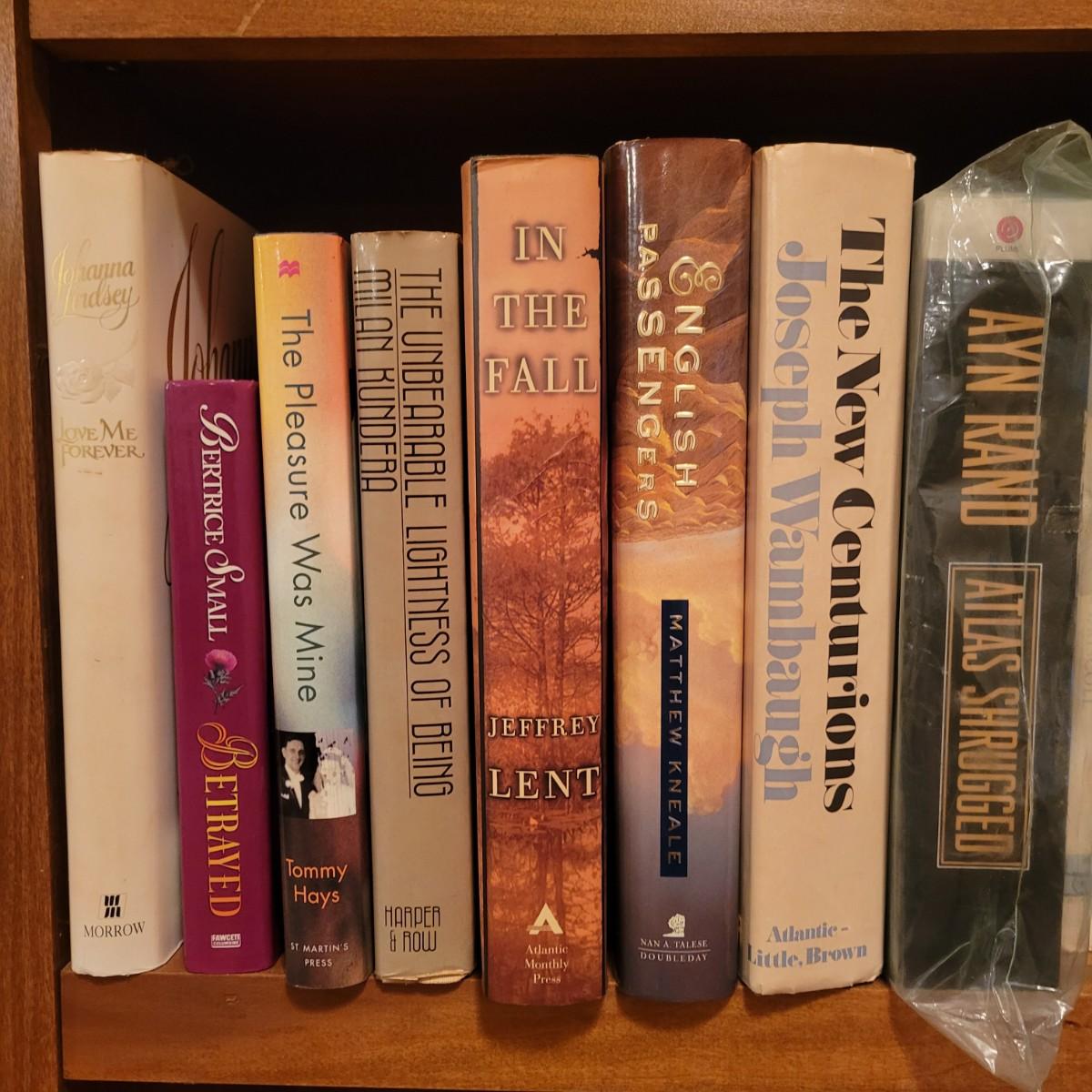 A collection of over 30 novels by a variety of authors in good condition. Authors include Tom Clancy, Matthew Kneale, Leo Tolstoy and more. Local pickup only