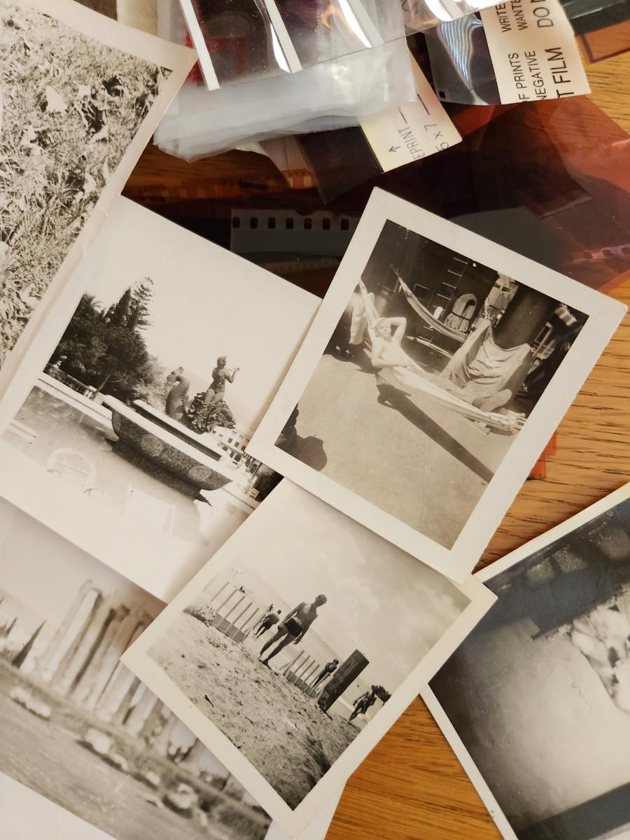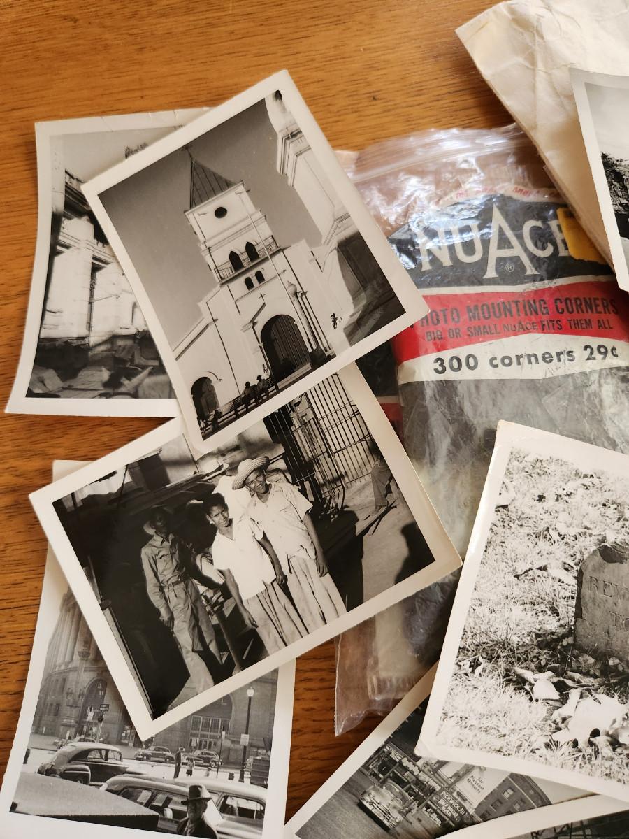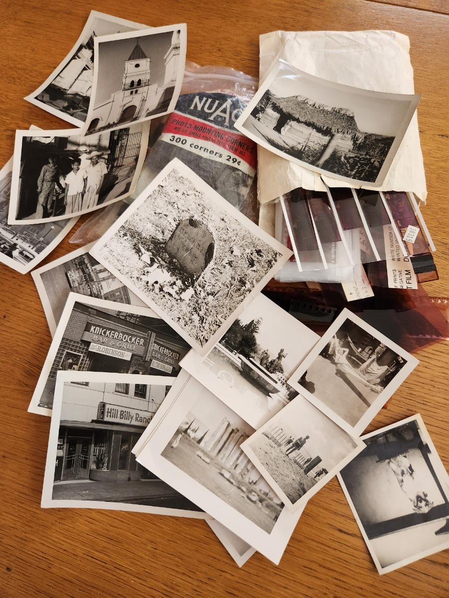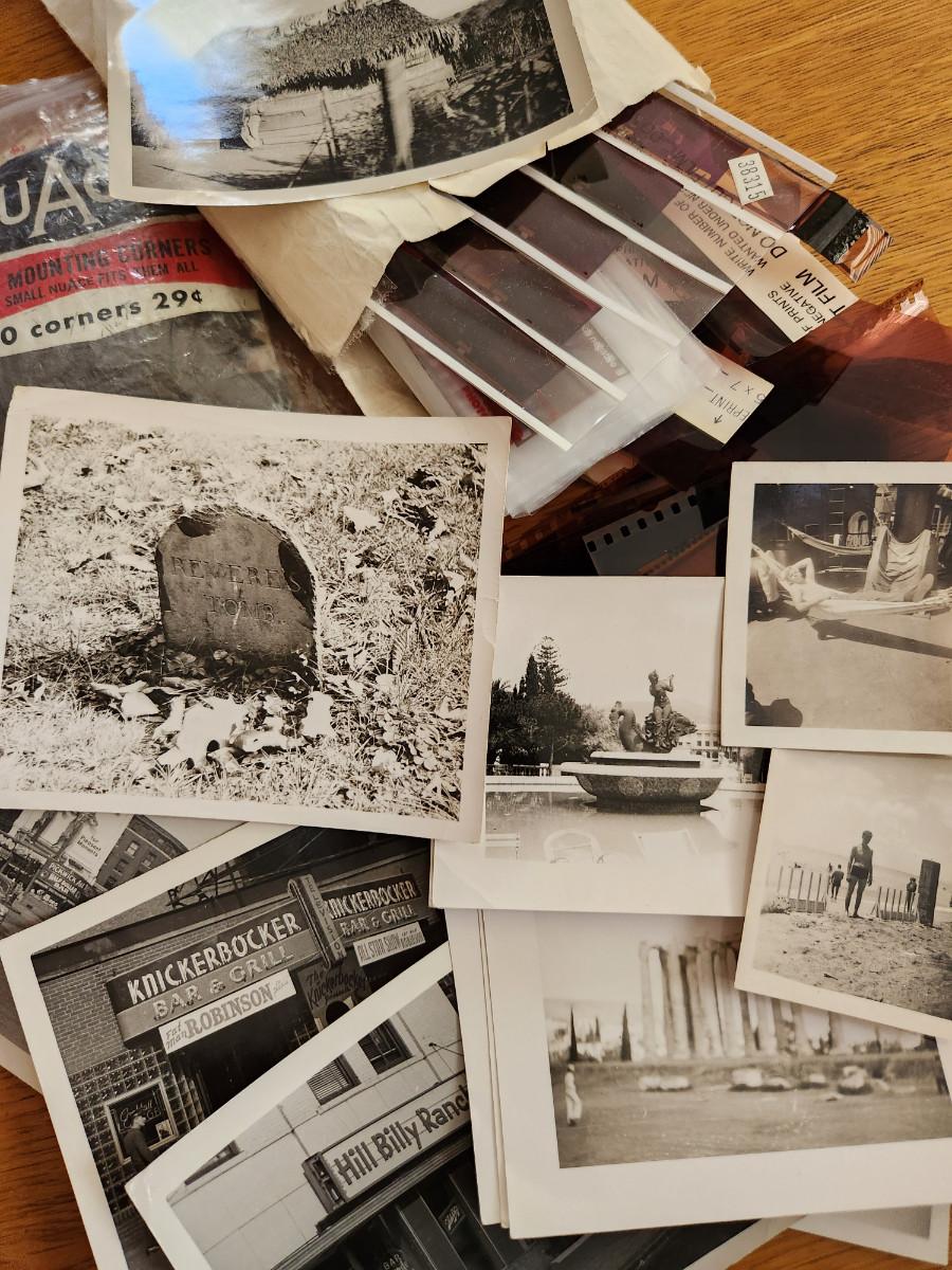 This auction lot is for a Collection of Odd Duck Vintage Photos and Supplies. There is included a bag of black photo corners for scrapbooking and also a bag of negatives. There are 18 various vintage photos showing tourist scenes and folks romping in the sand.