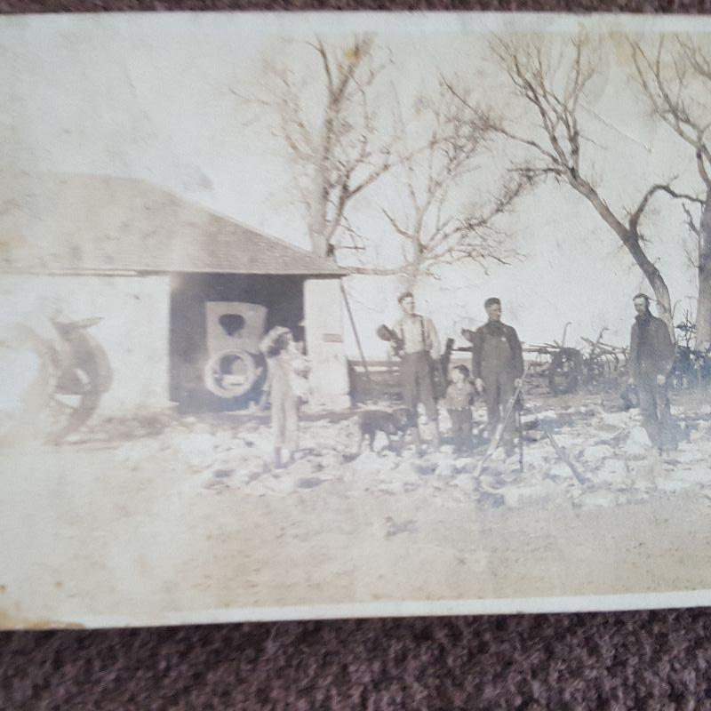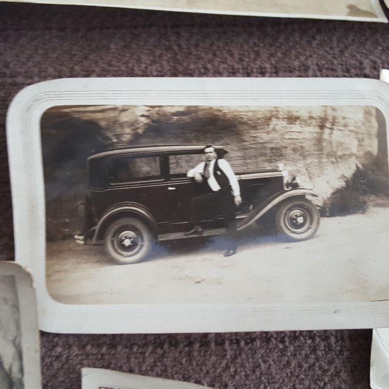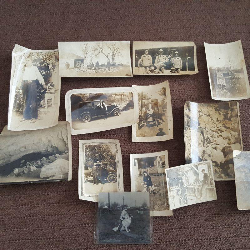 This auction lot is for a Collection of Old Photos - #1. The collection contains 13 vintage photos of men with their cars, at work, a boy with his rifle and another with his dog. See photos - some are hard to see on-line. The darkest one with the damaged corner is a picture of a man on a horse-drawn wagon. Use for many purposes - art or craft or just to have.