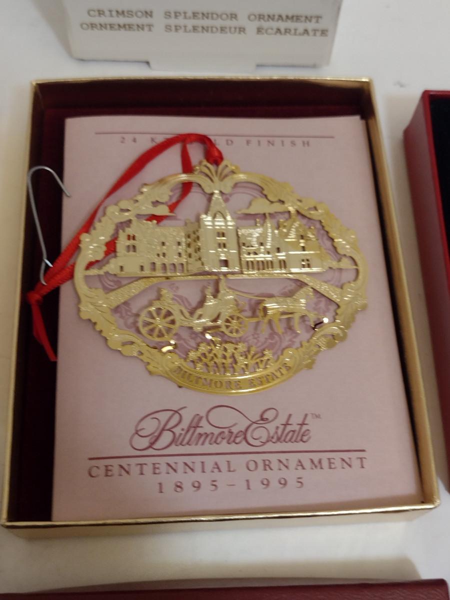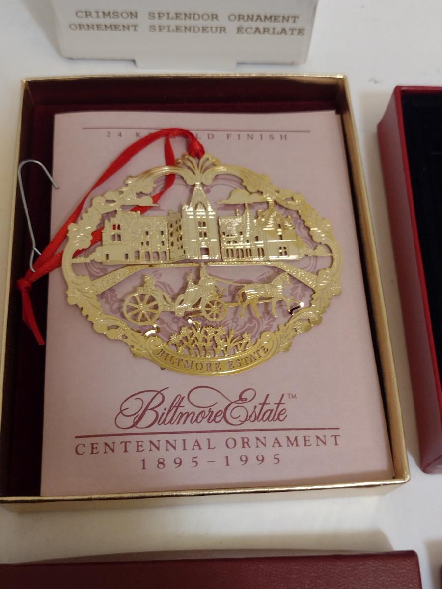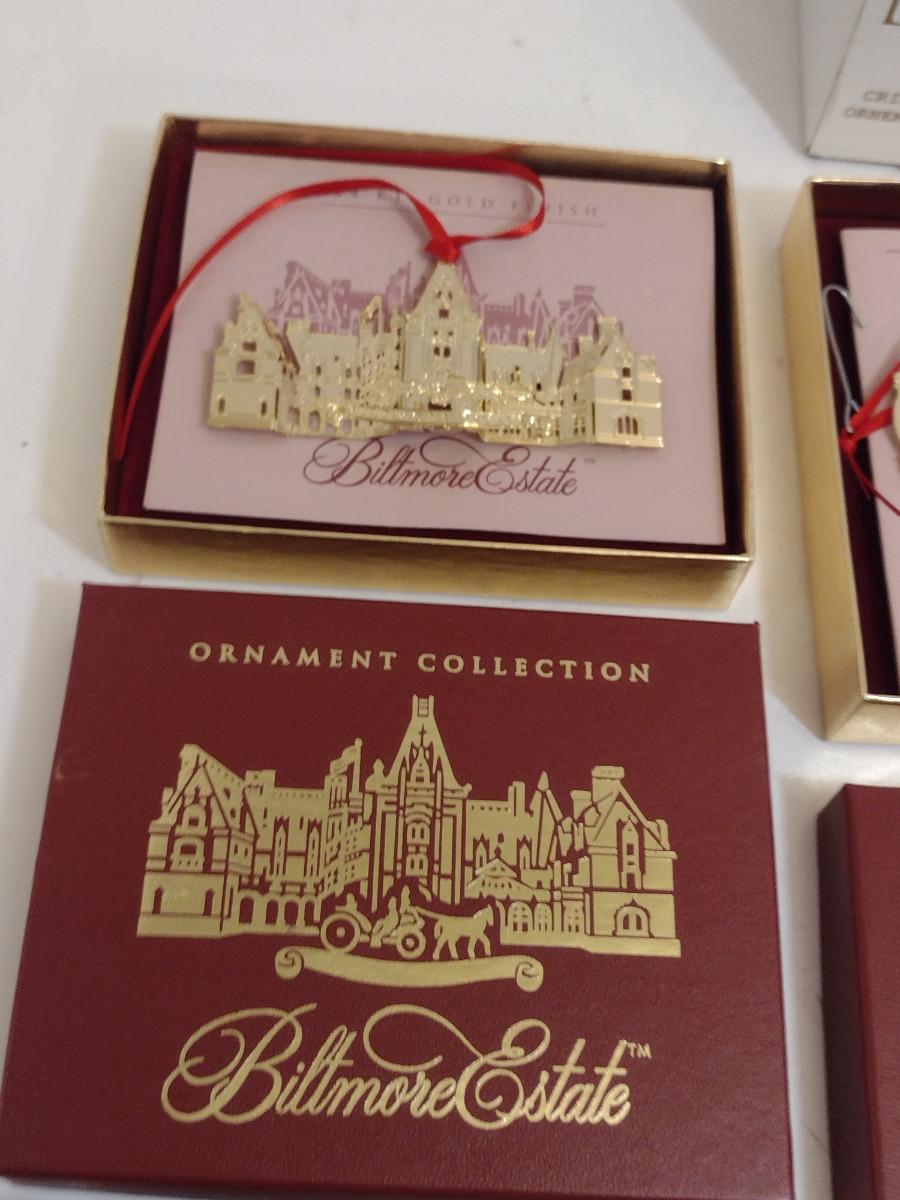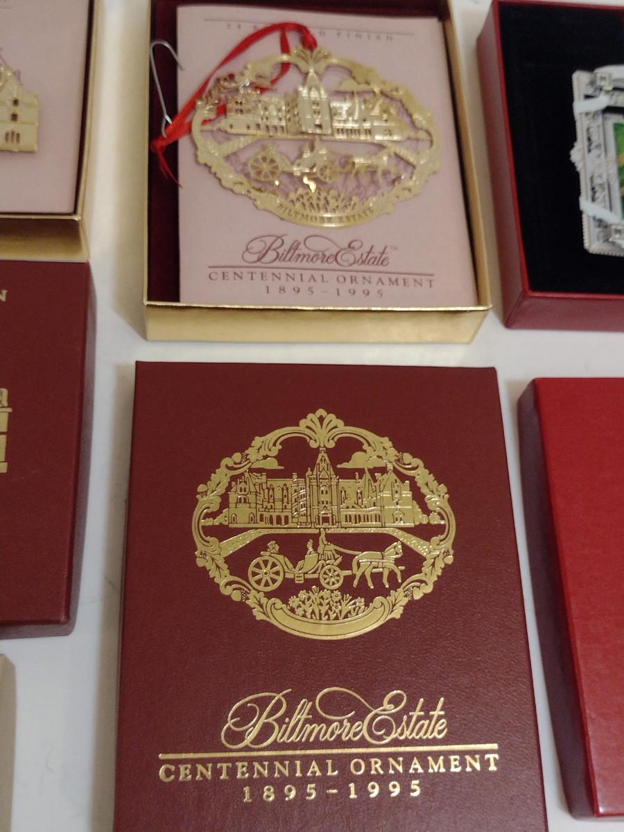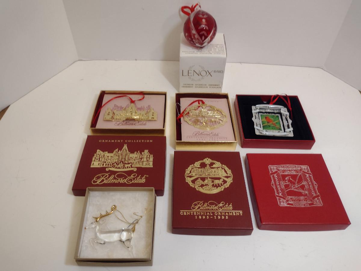Collection of Ornaments with Original Boxes- Biltmore Estate, Lenox, George W. Bush Presidential Center, Warren Wilson