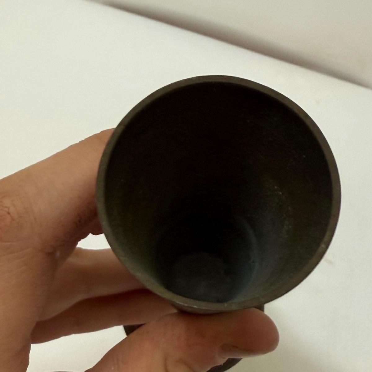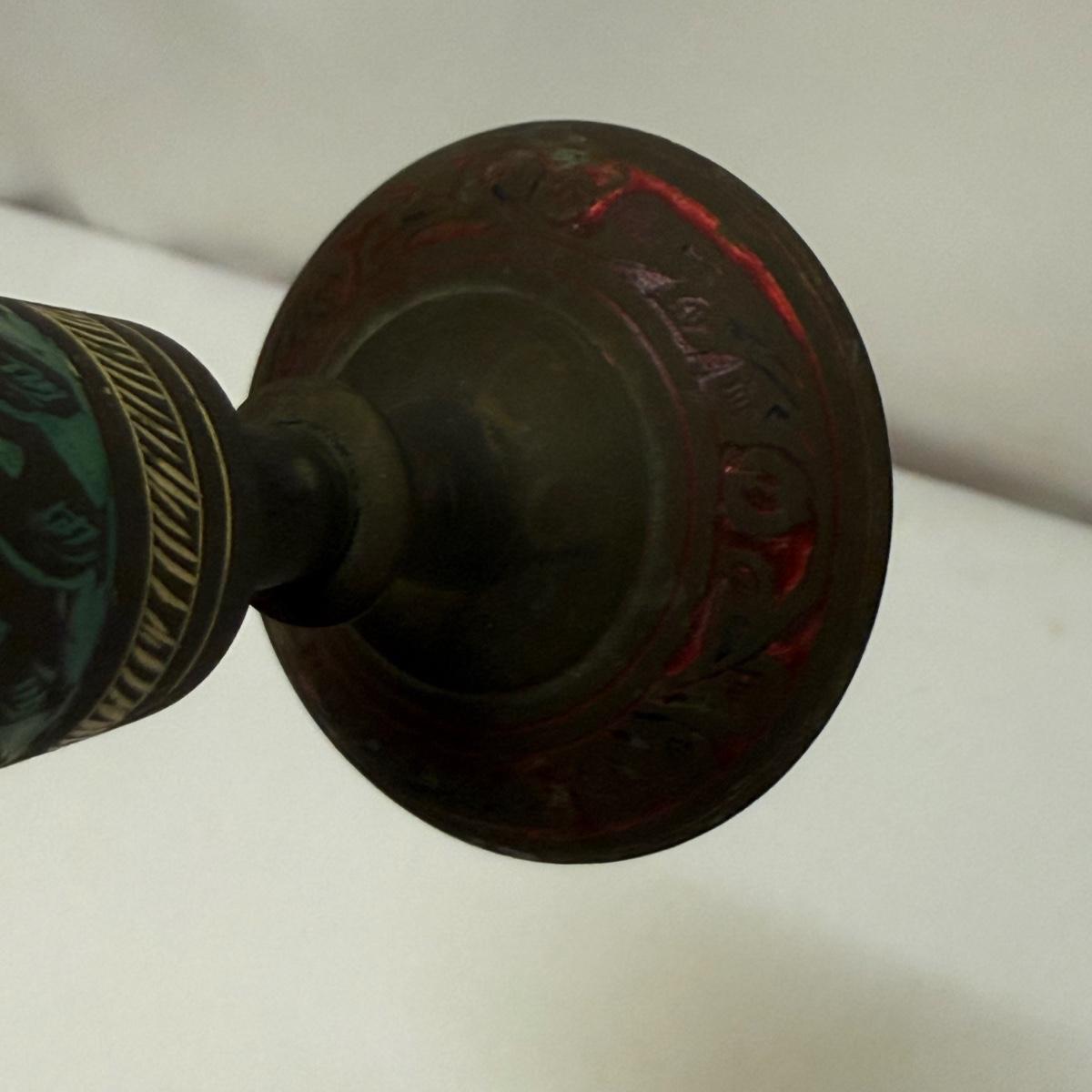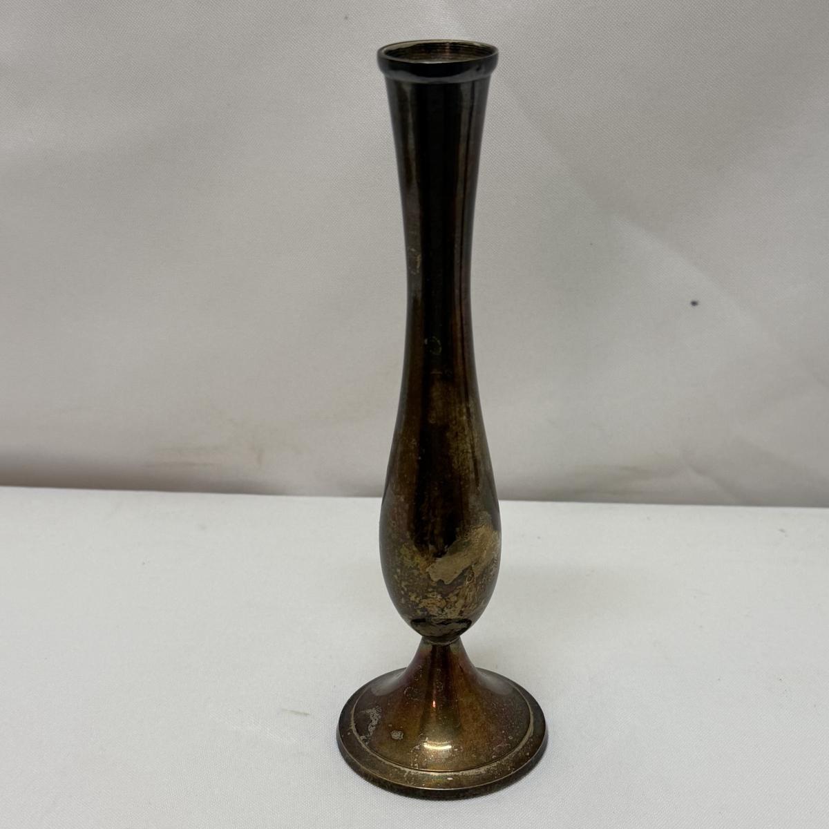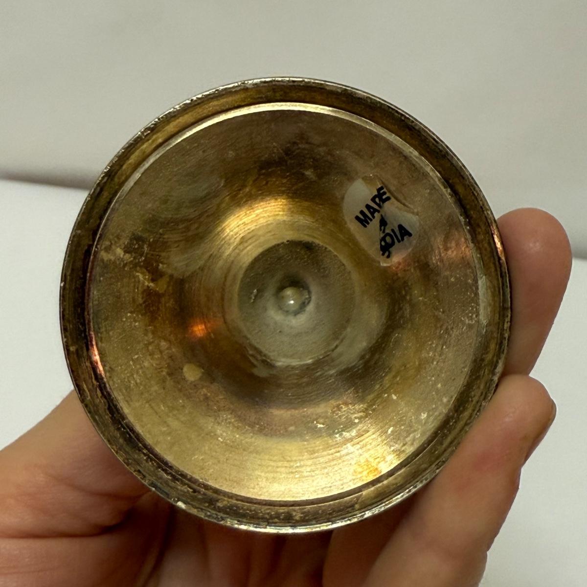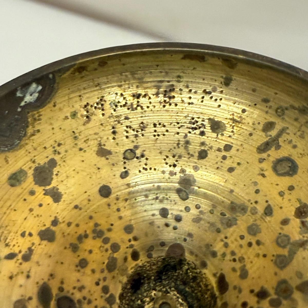 Four ornate functional decor items, three of which are marked Made in India. The three most decorated items appear to be made from brass; the stem vase appears to be silverplated. The box is wood inside with a metal exterior. It has a little locking latch on the front and is 6” x 3.75” x 2.5”H. The metal pin on the back hinge functions fine but has some damage. Foam pads have been added to the bottom of the box.