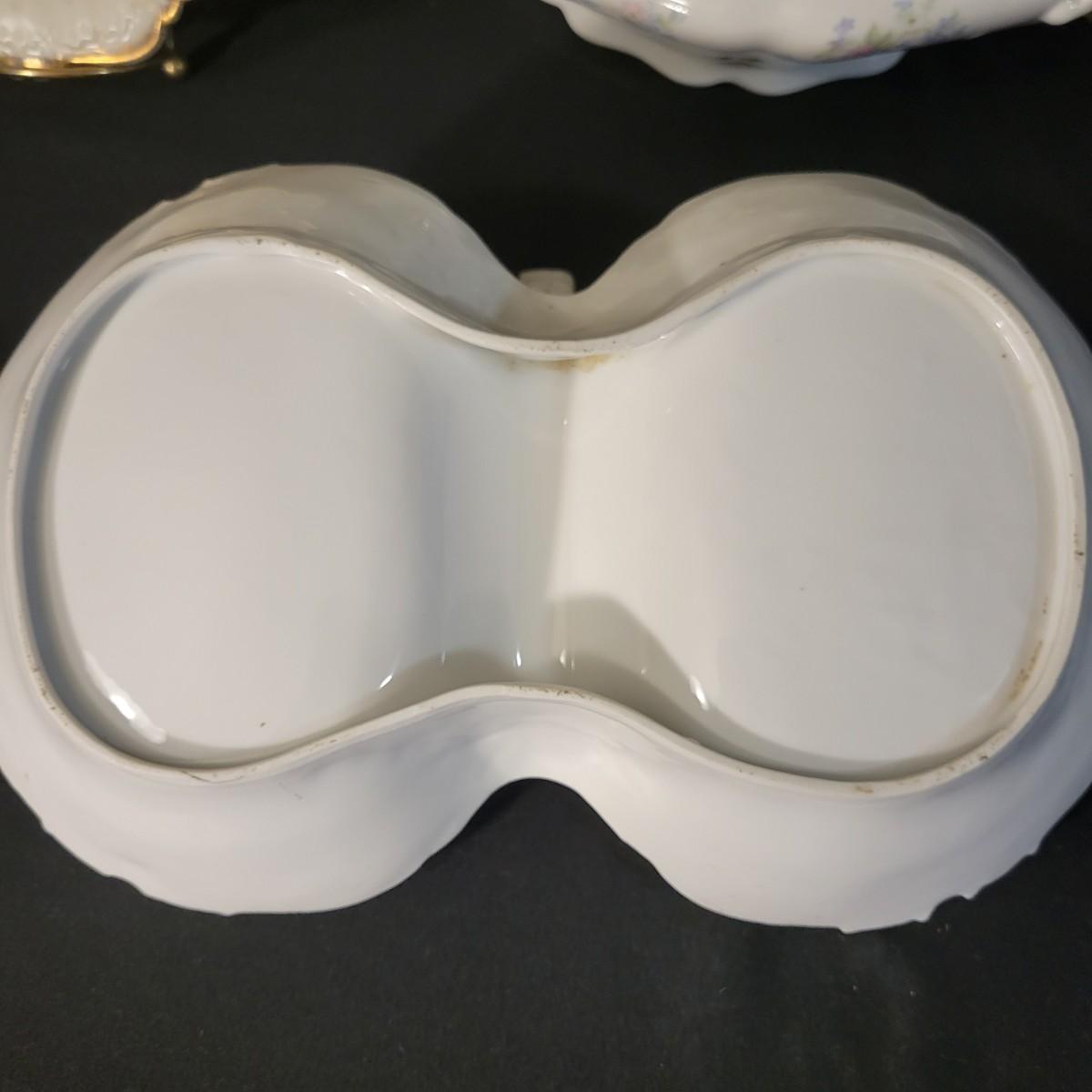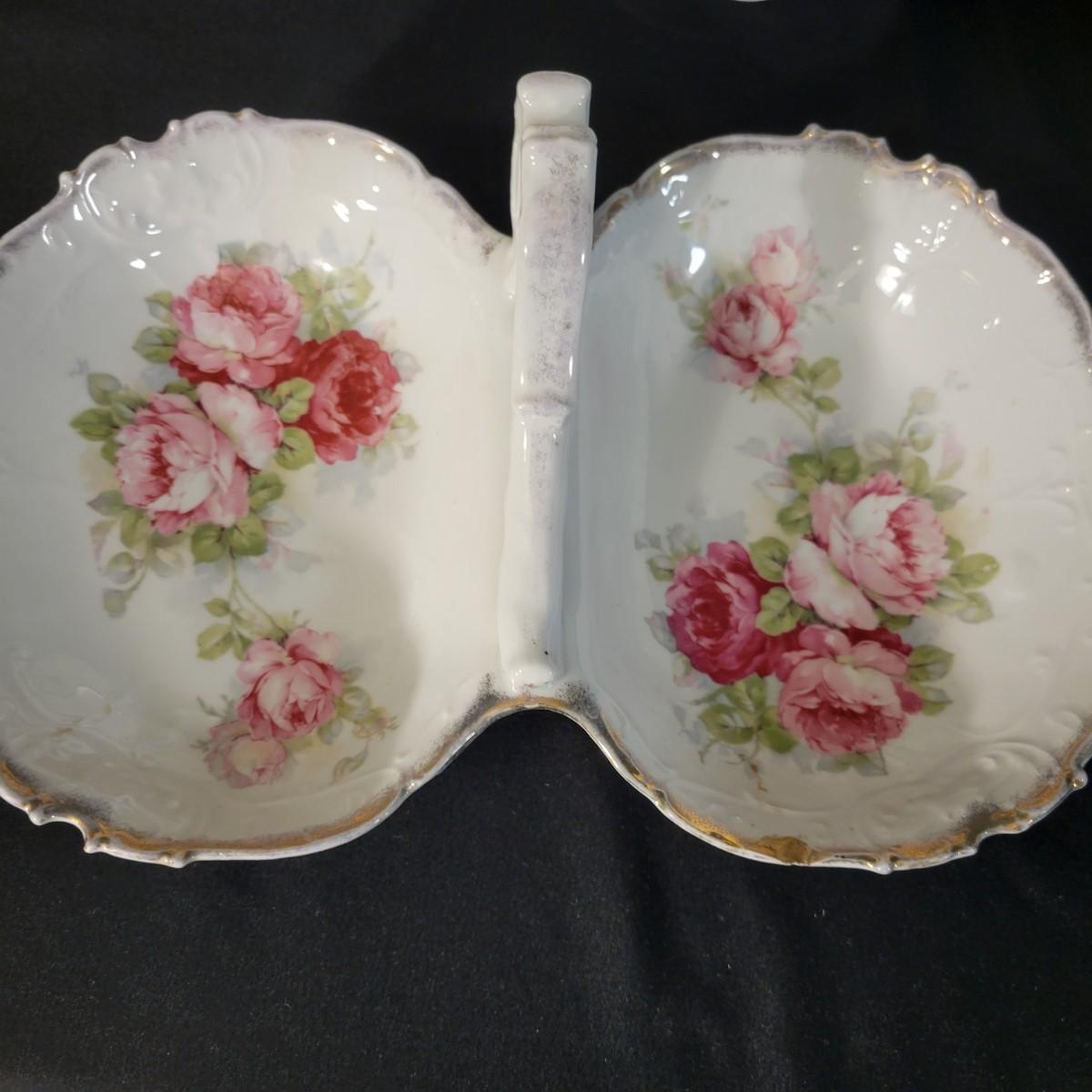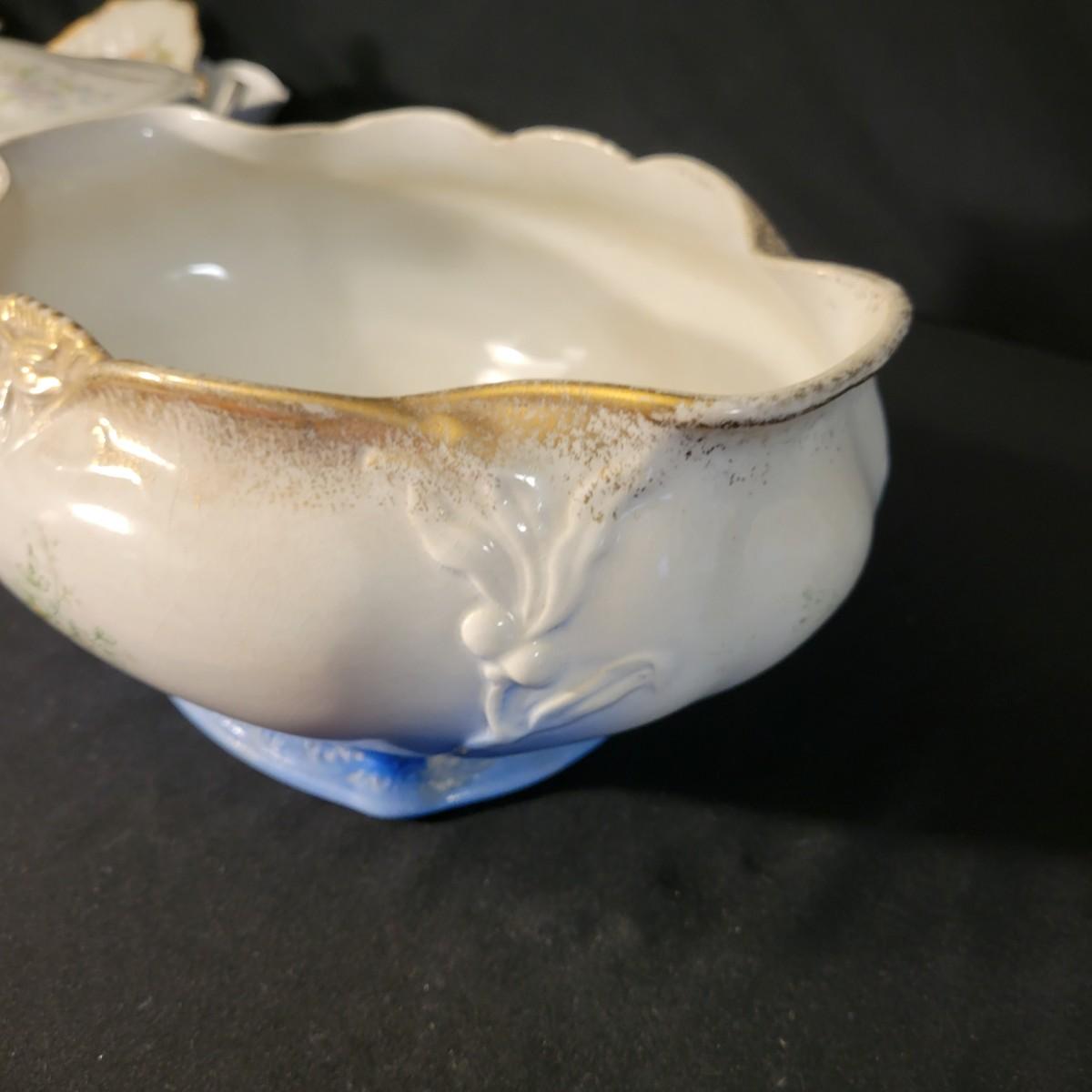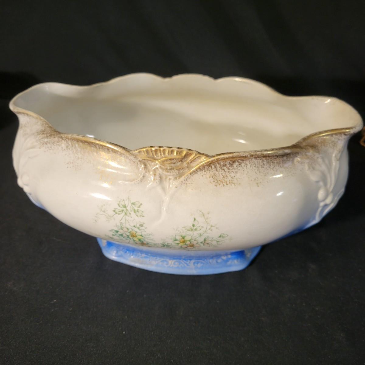 This is a large assortment of ornate china manufactured by Ucagco, Lefton, American China Co and others in good condition. Some pieces do have some pitting and crazing, and the largest piece has a minor crack. See attached pictures for more detail. Included is an assortment of plate stands and hangers. The largest piece measures approximately 11.5" x 8.5" x 5" Local pickup only