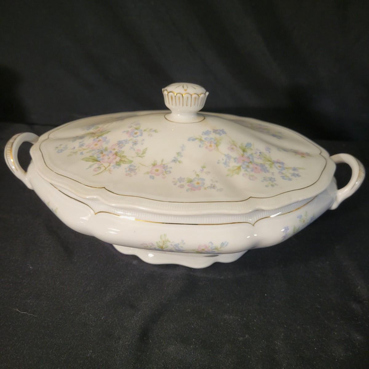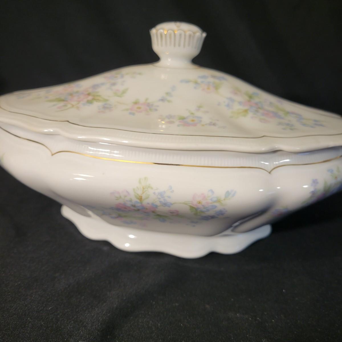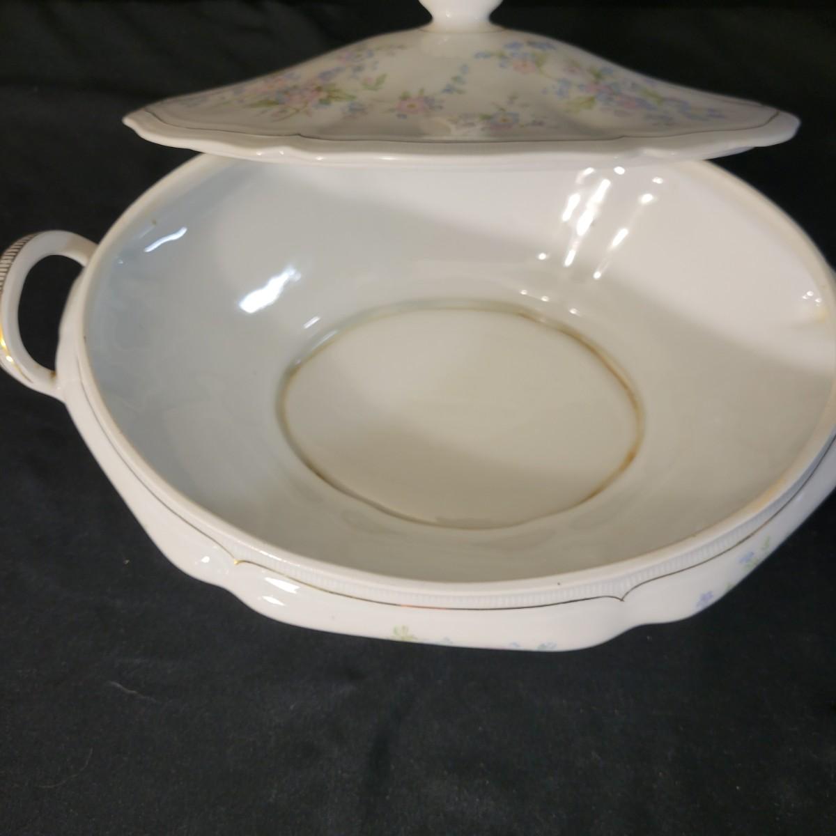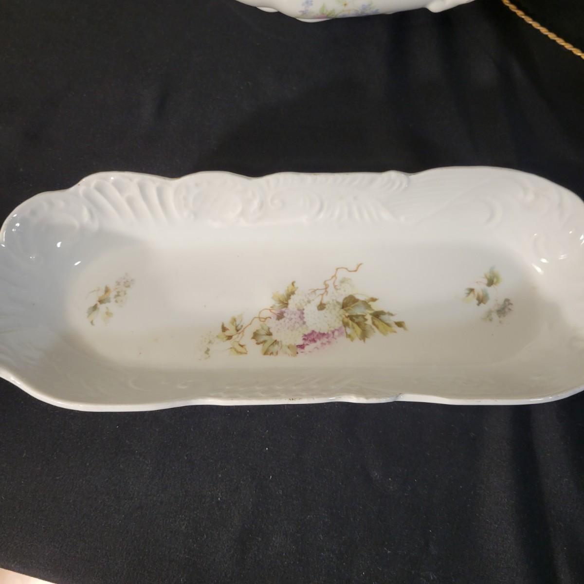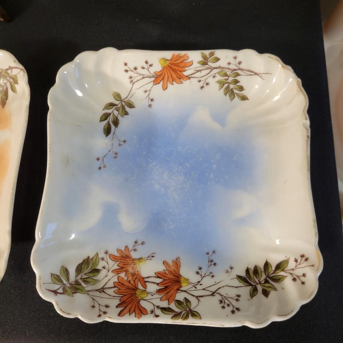 This is a large assortment of ornate china manufactured by Ucagco, Lefton, American China Co and others in good condition. Some pieces do have some pitting and crazing, and the largest piece has a minor crack. See attached pictures for more detail. Included is an assortment of plate stands and hangers. The largest piece measures approximately 11.5" x 8.5" x 5" Local pickup only
