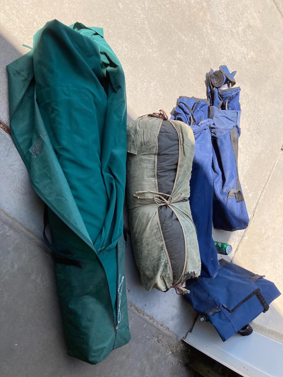 #459 Collection of Outdoor Gear: Chairs, Bag, Tent?, Awning?