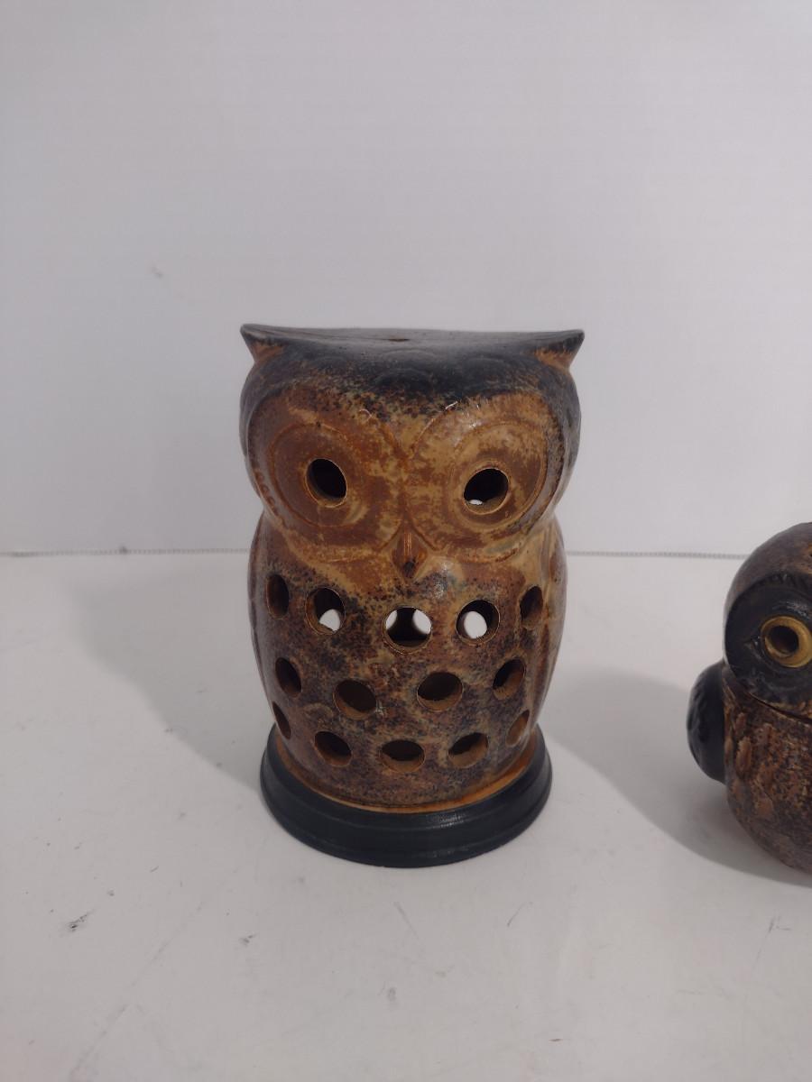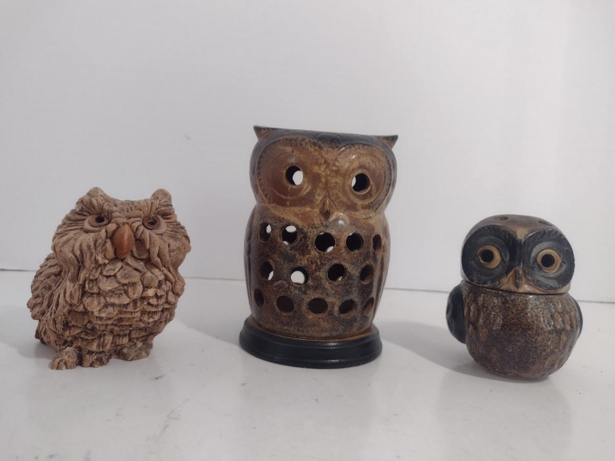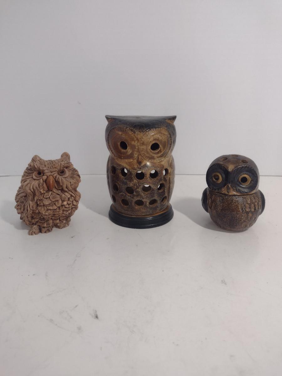Collection of Owl Themed Home Decor. Two are vintage ceramic candle/incense burners- made in Japan.