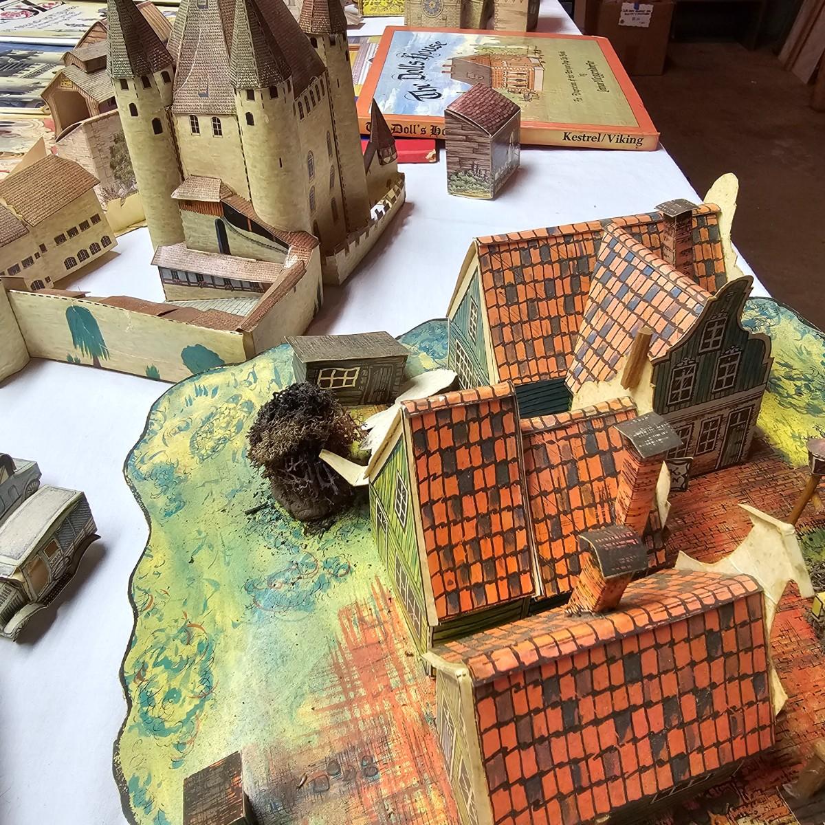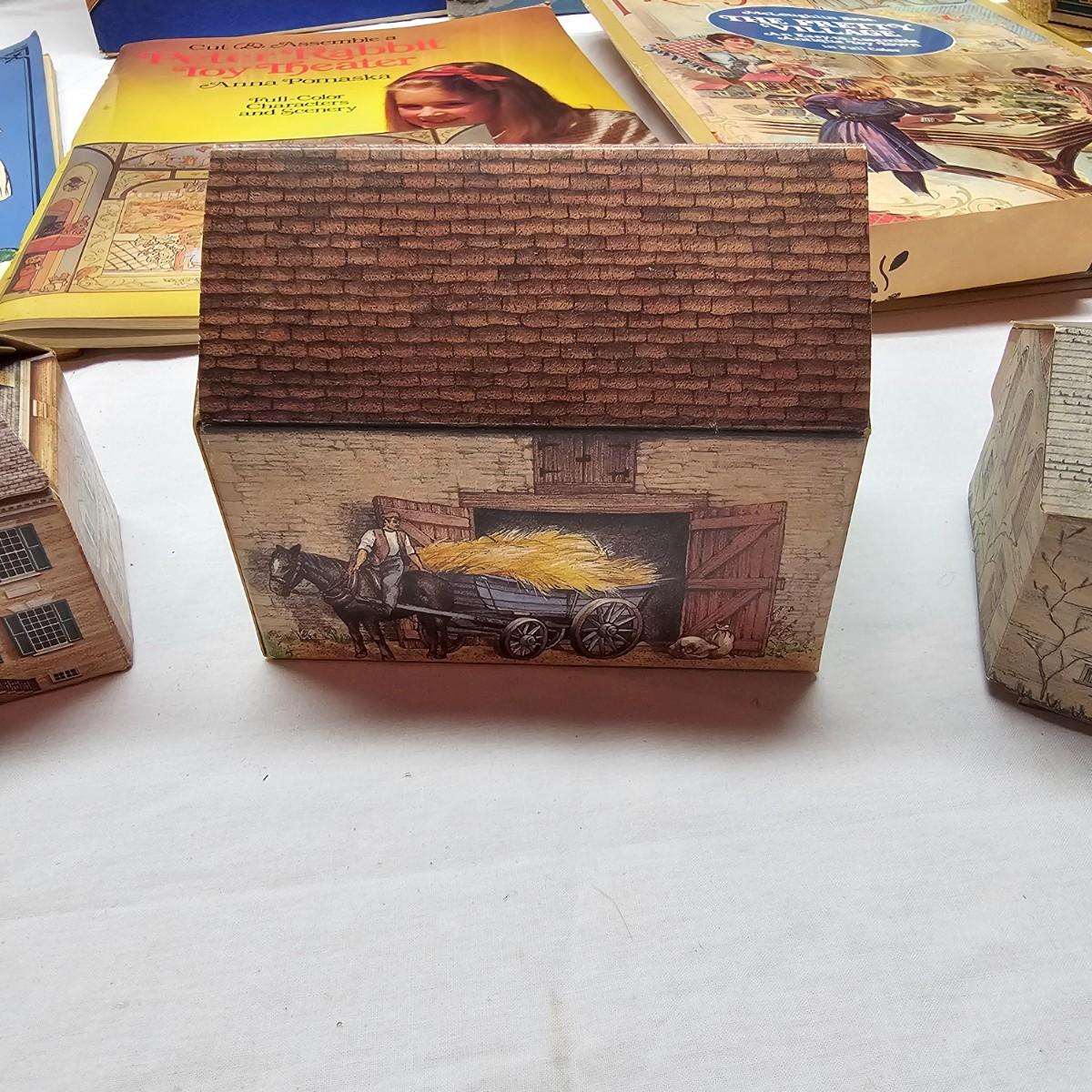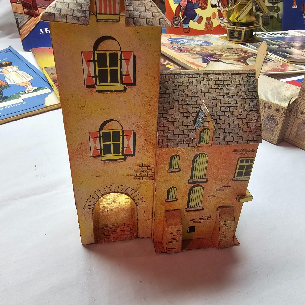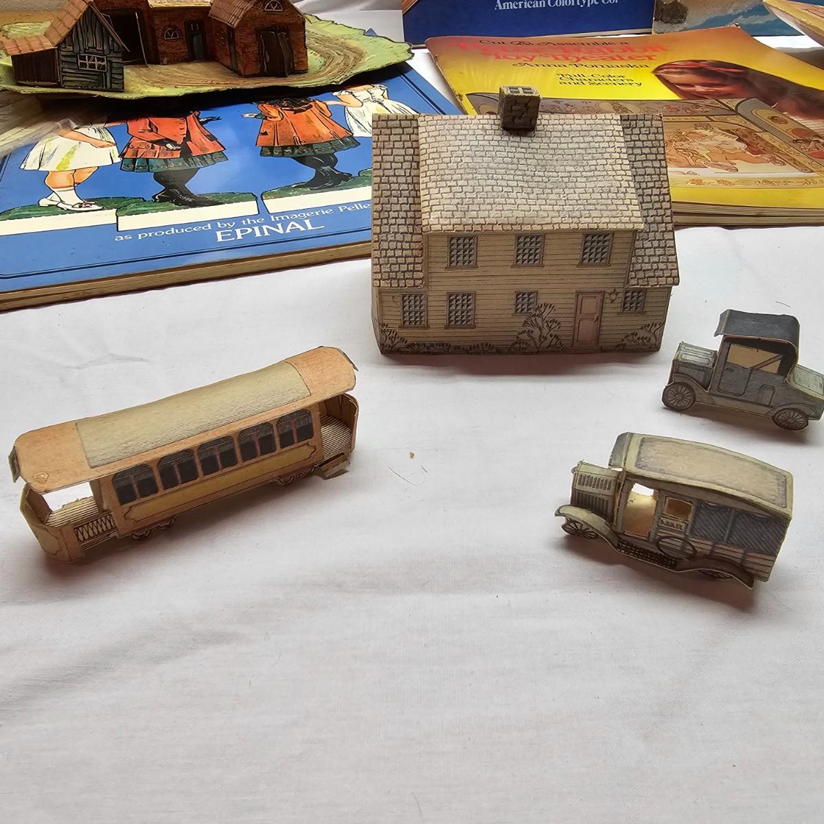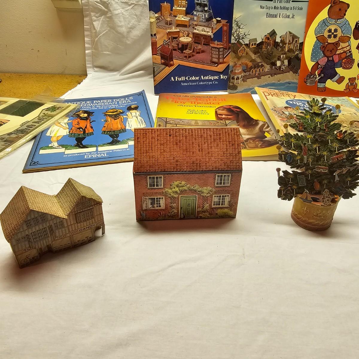 Seaside, farms, cottages, castles and more. Many items already put together, but several books ready for crafting. Largest item assembled is the bridge piece, measures 16" x 11" x 4"H. Also includes some pop-up books with houses in them and some of the original style paper dolls and clothes. Some pieces in need of TLC. See photos for details. Shipping available.