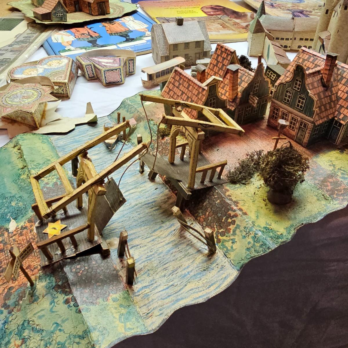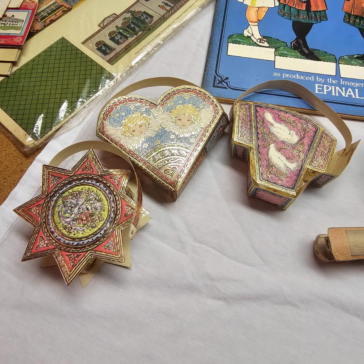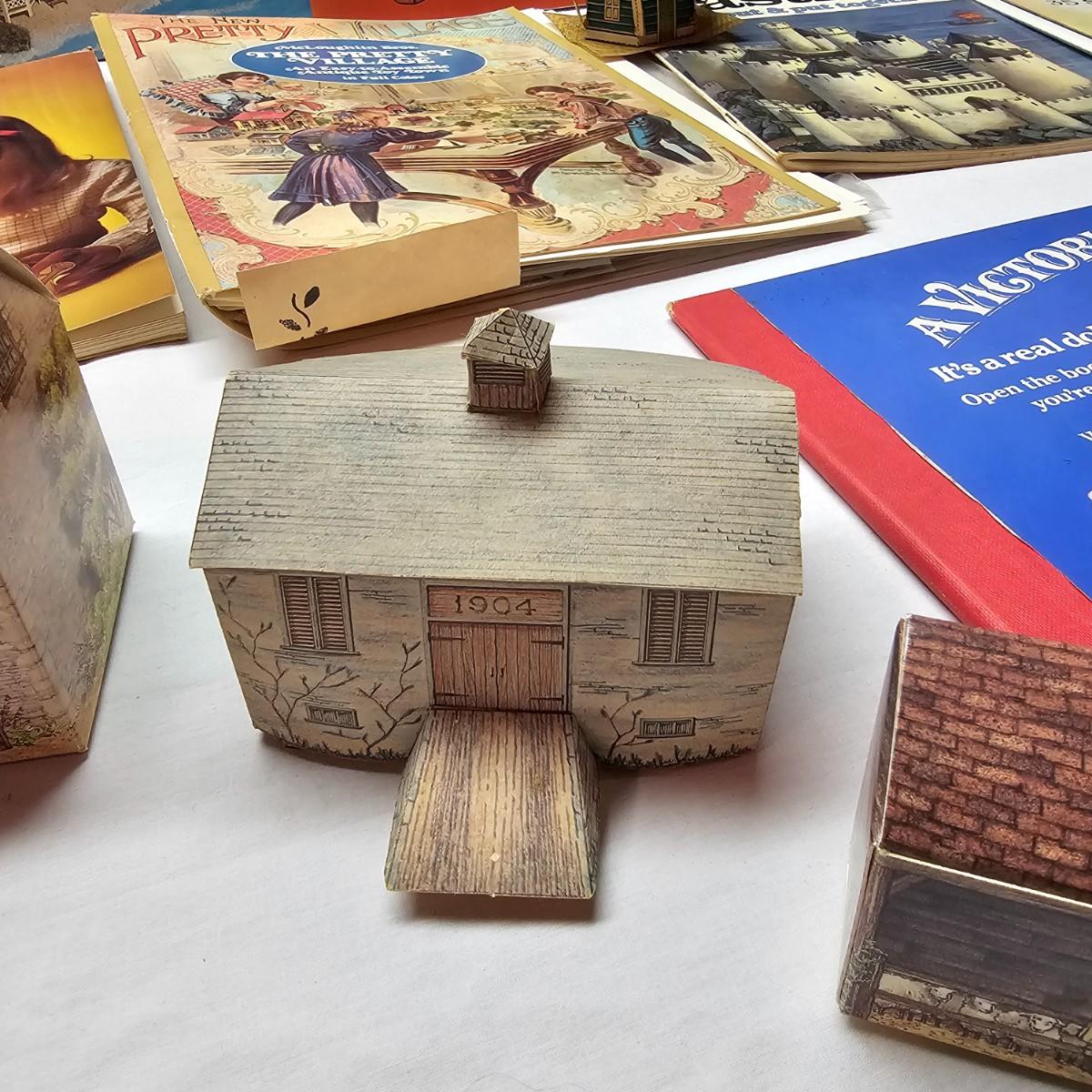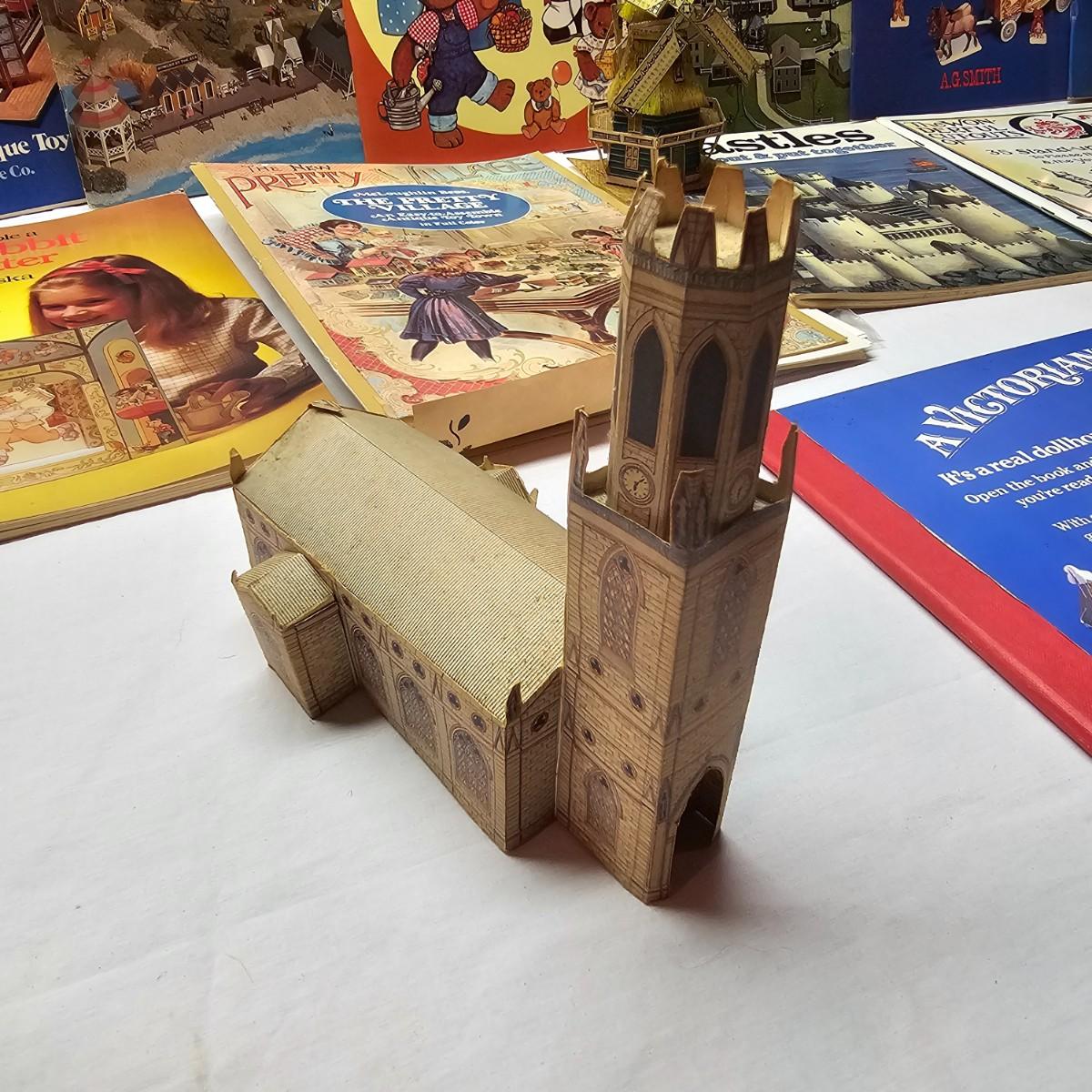 Seaside, farms, cottages, castles and more. Many items already put together, but several books ready for crafting. Largest item assembled is the bridge piece, measures 16" x 11" x 4"H. Also includes some pop-up books with houses in them and some of the original style paper dolls and clothes. Some pieces in need of TLC. See photos for details. Shipping available.