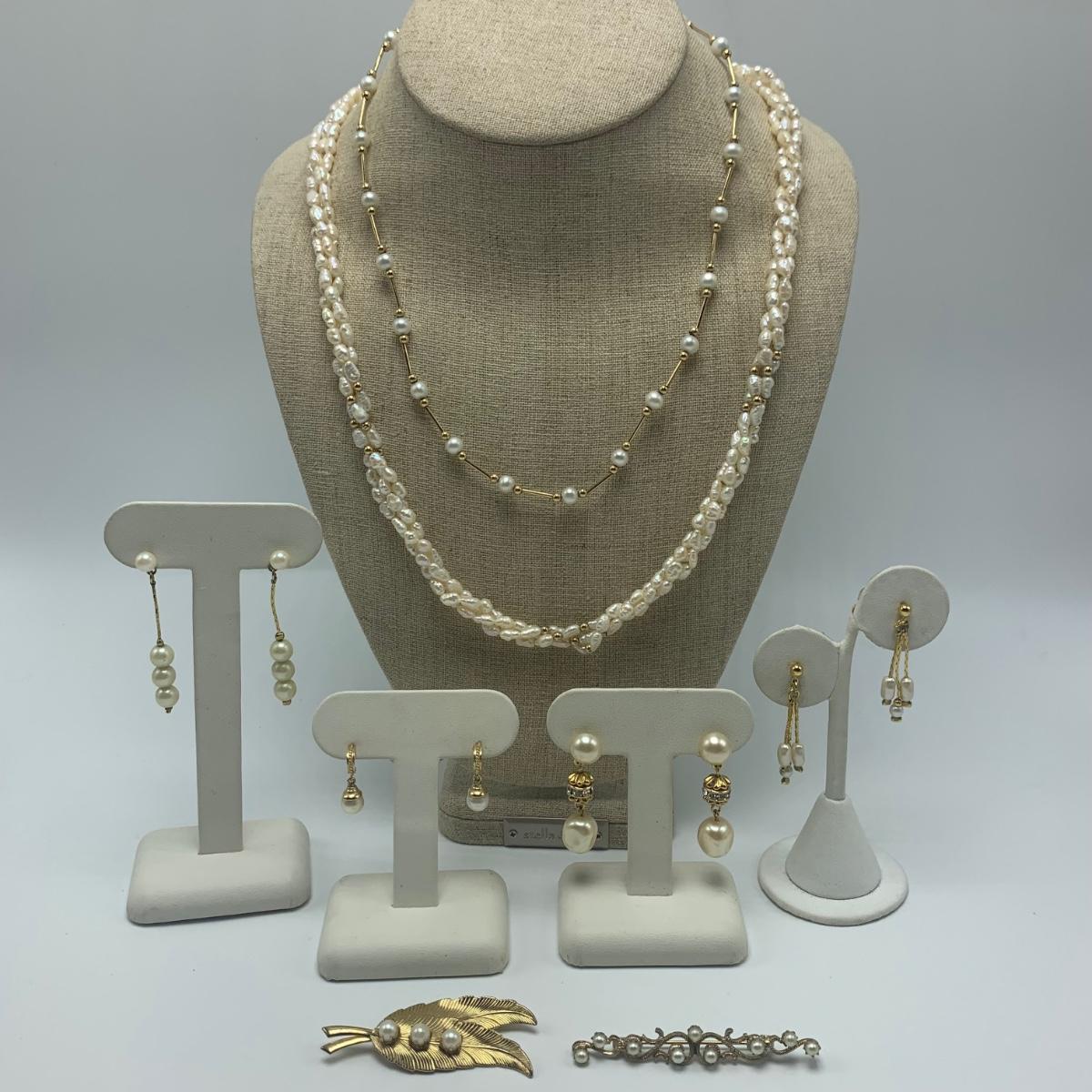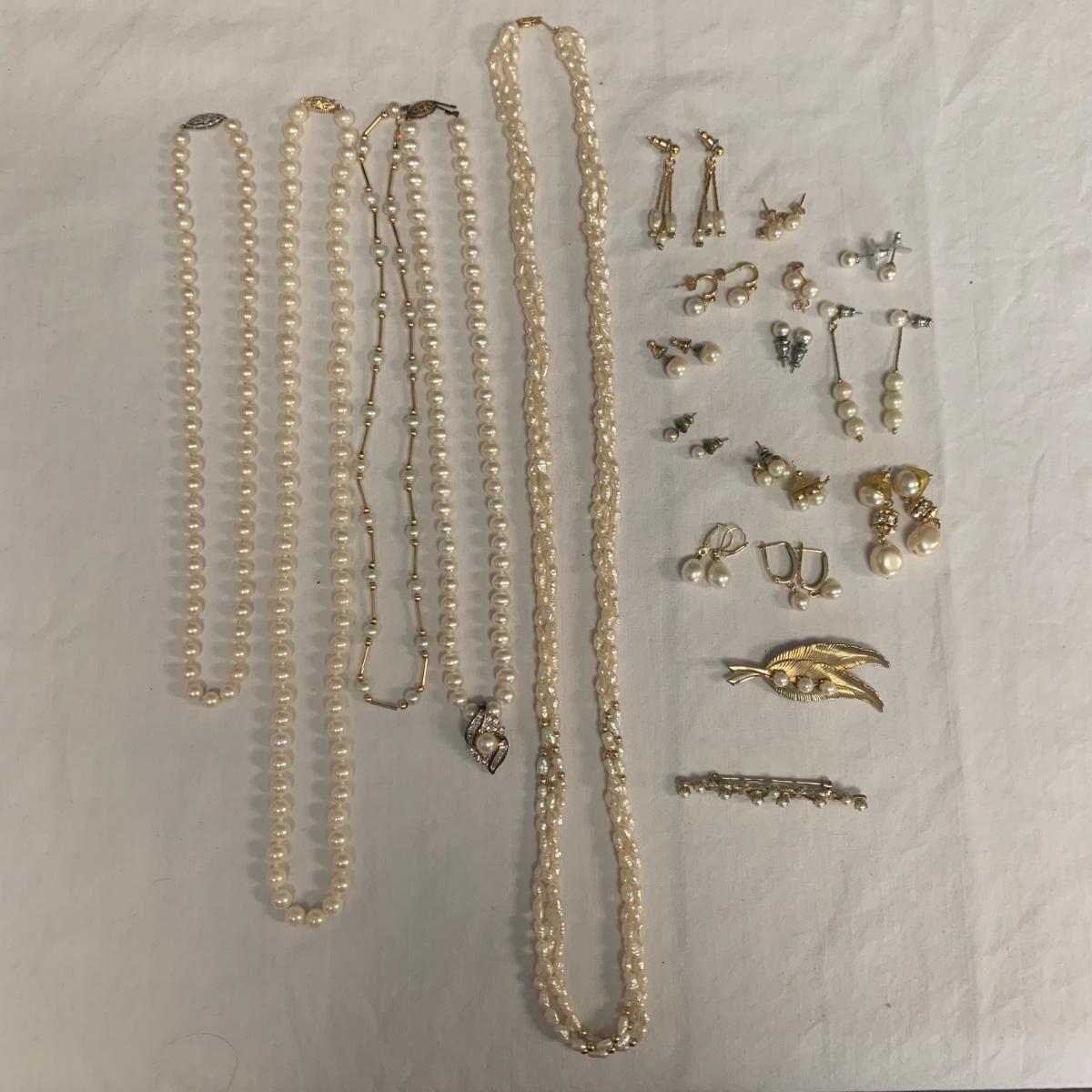 Collection of Pearl Necklaces, Earrings, & Brooches (B1-HS)
