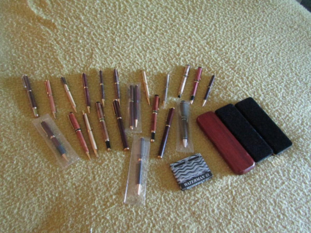 Collection of Pens and Pencils with Hand Made Wooden Casings
