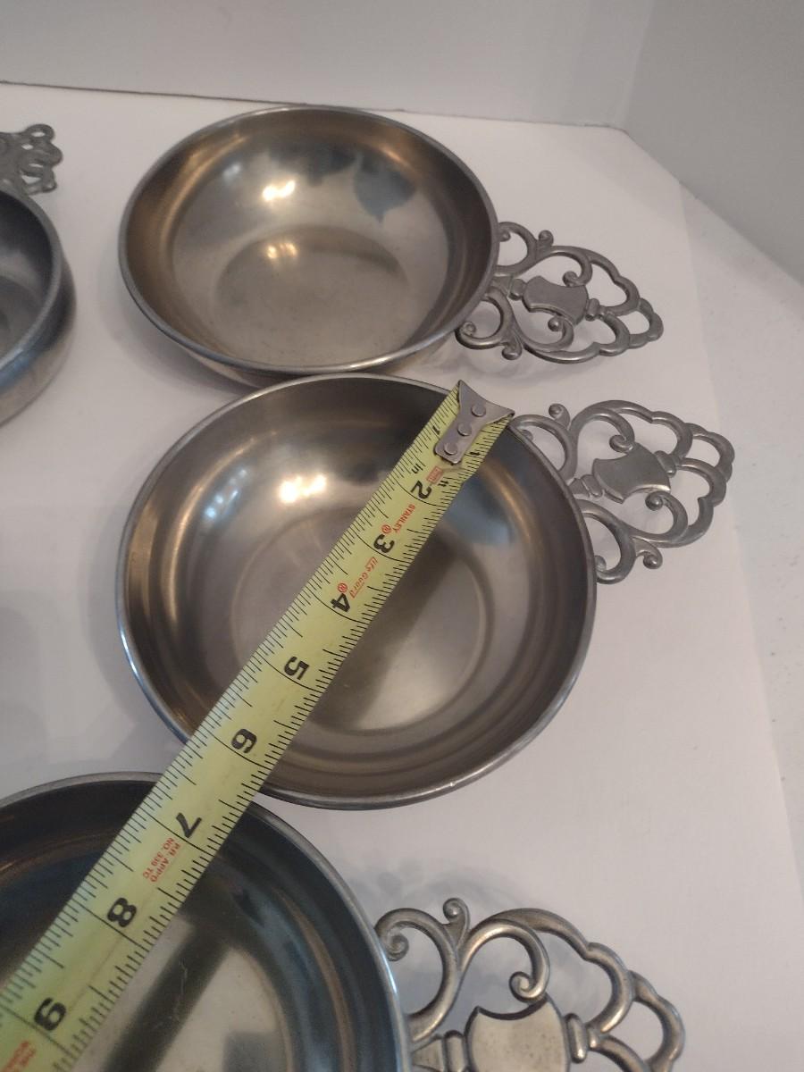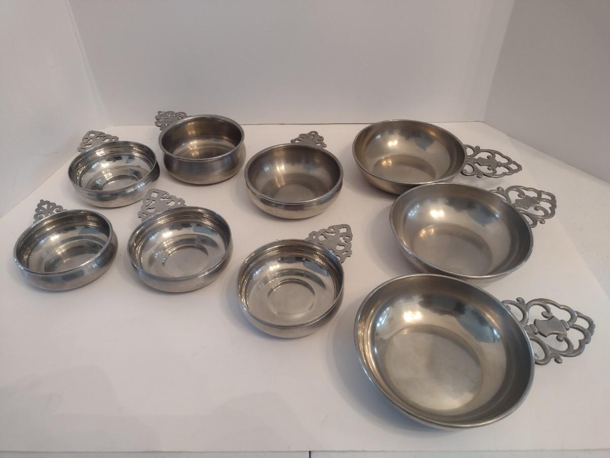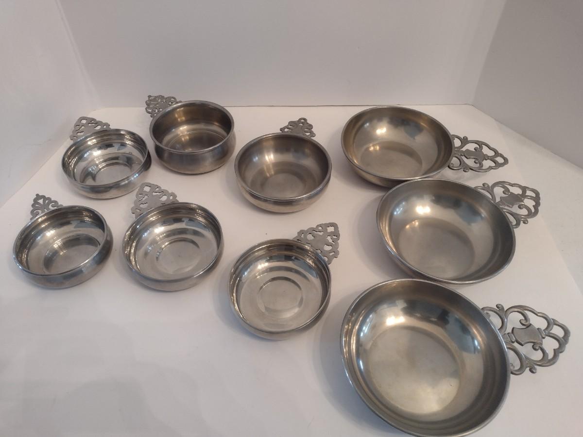 Collection of Pewter Porridge Bowls Various Sizes and Makers