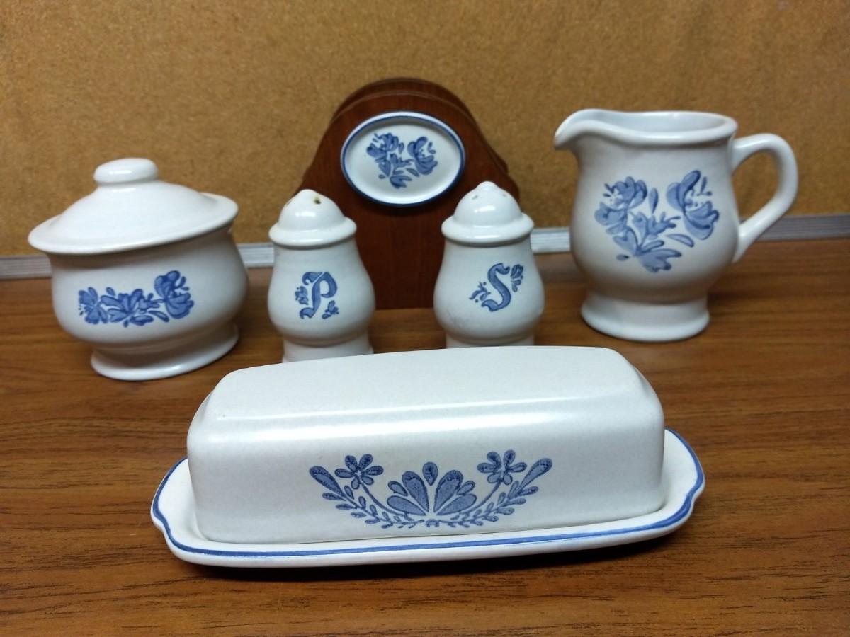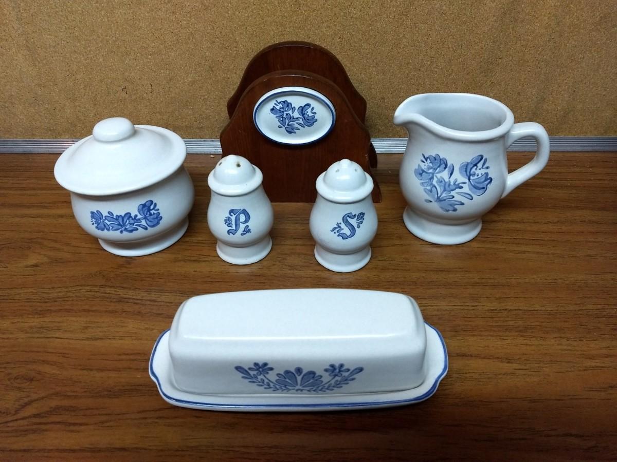 Collection of Pfaltzgraf  Yorktown Salt and Pepper, Butter Dish, Creamer, Sugar and Napkin Holder