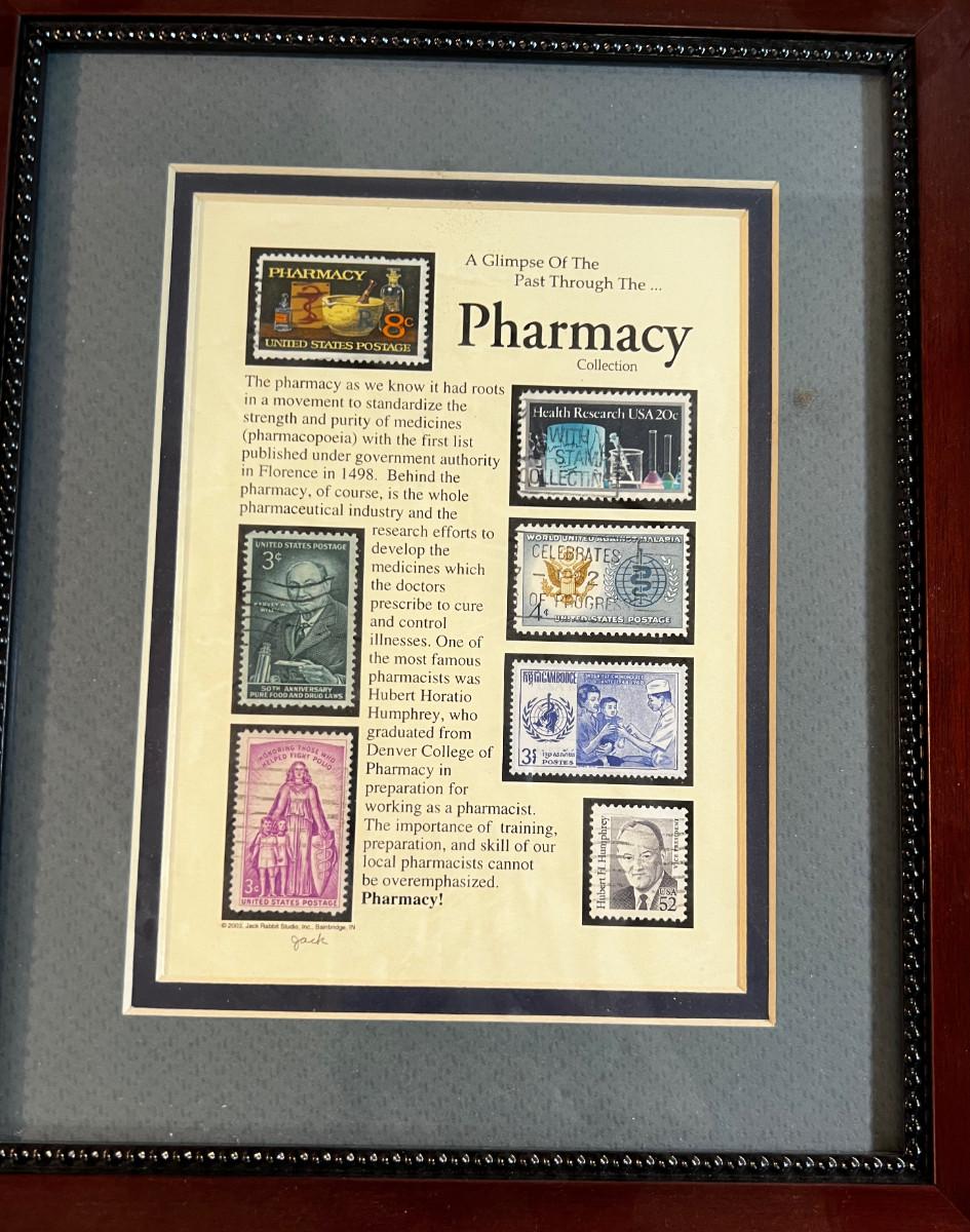 Collection of Pharmacy Stamps Framed