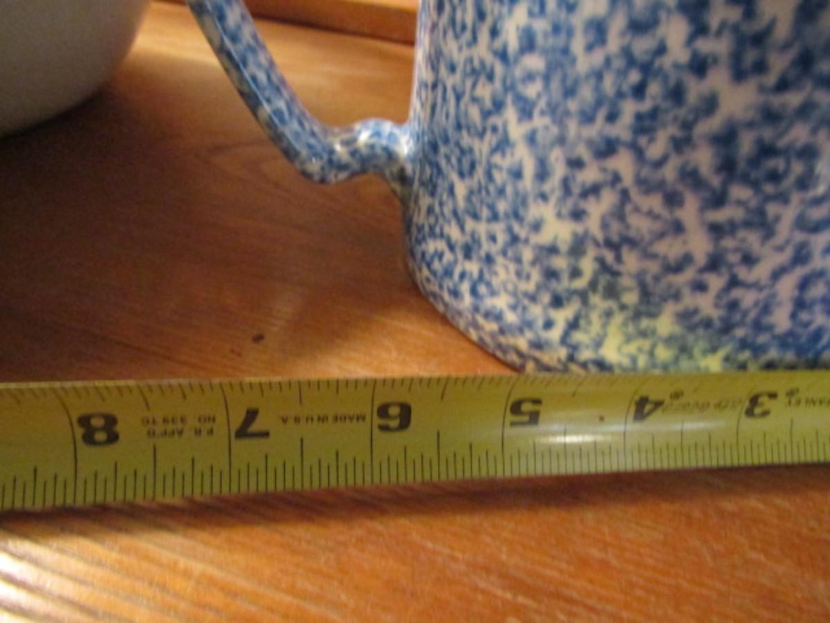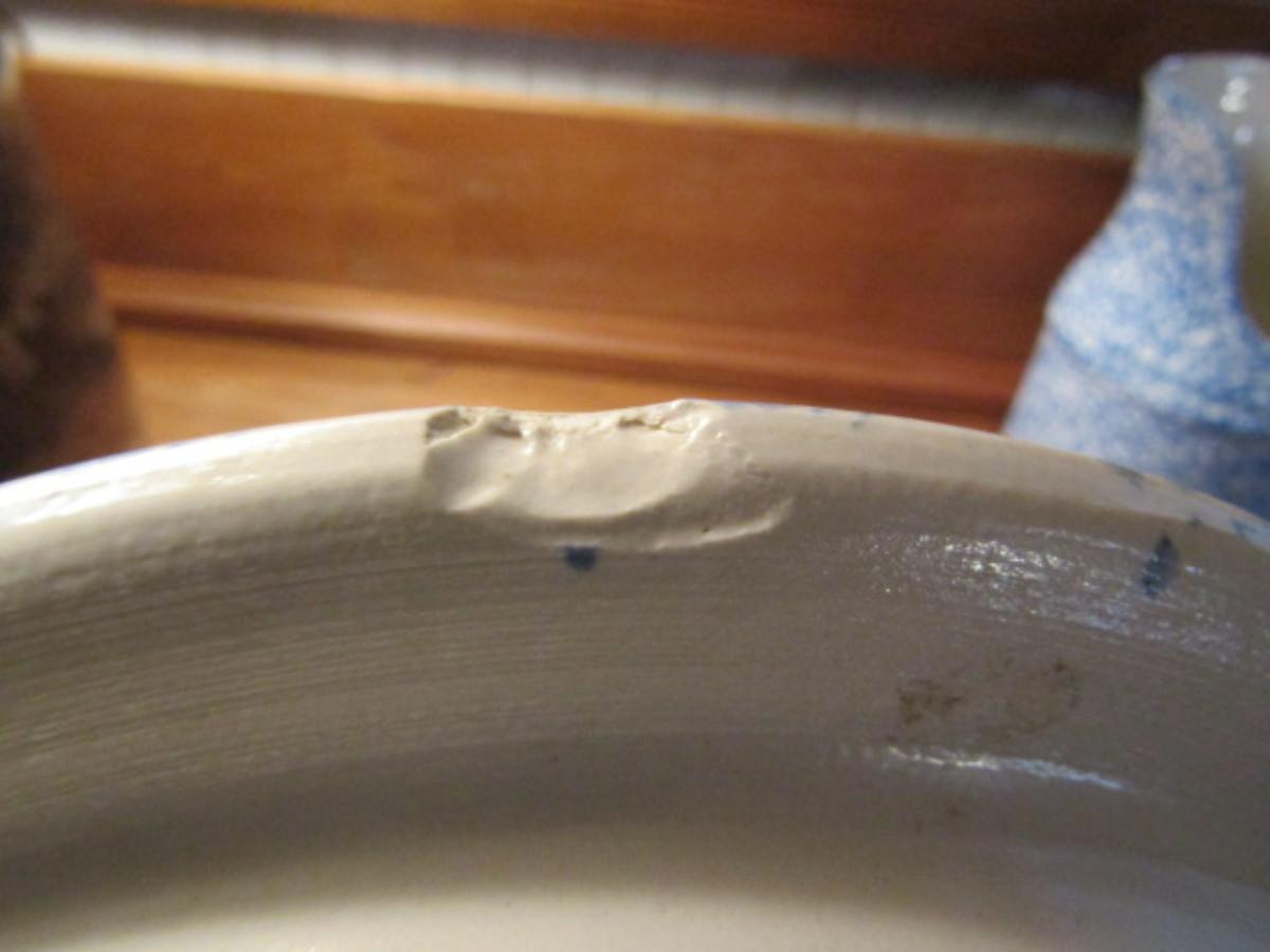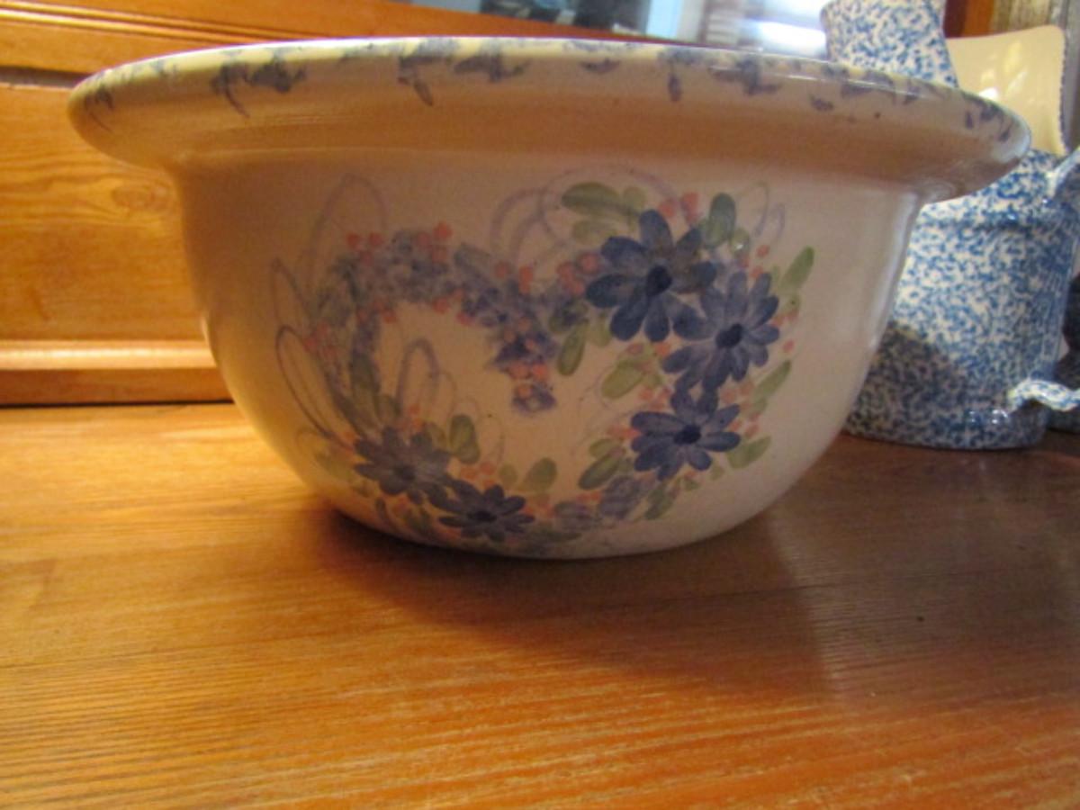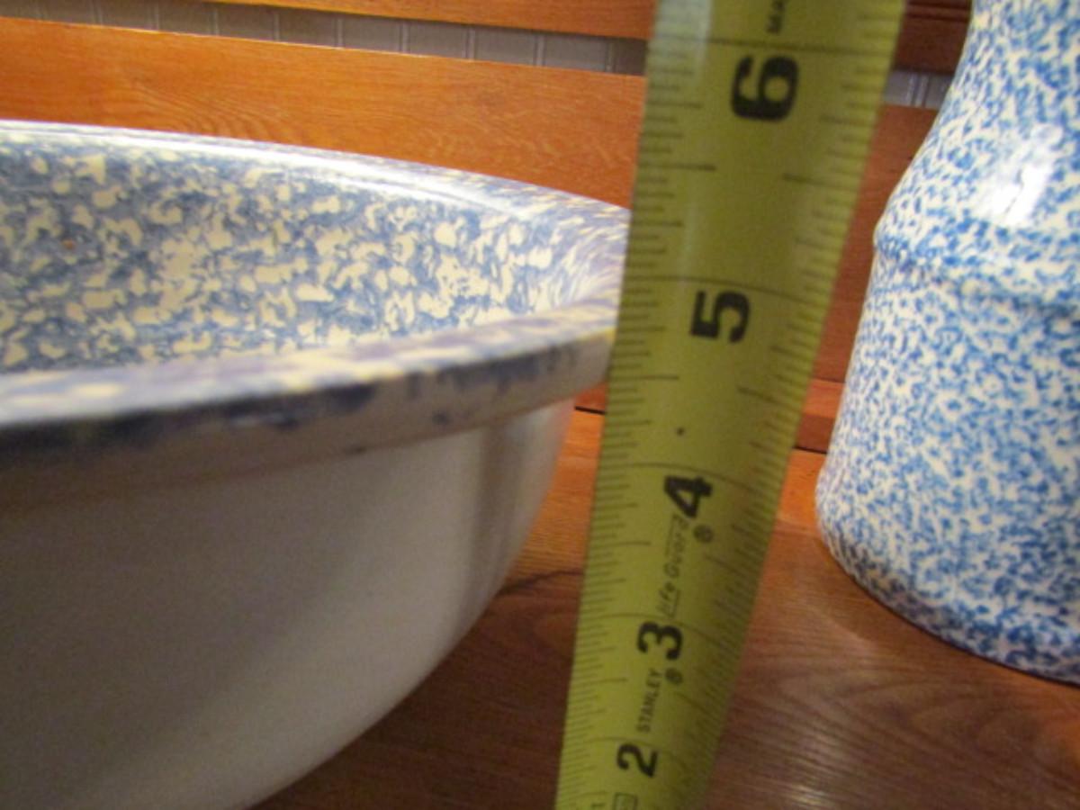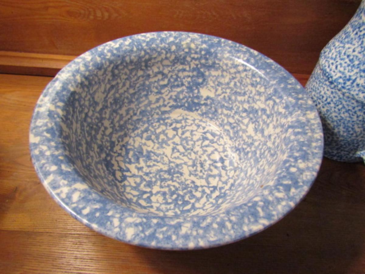 Collection of Pieces with Sponge Dappled Finish- Bowl, Pitcher, and Candle Holders. Please see all pictures- bowl has a chip on the edge.