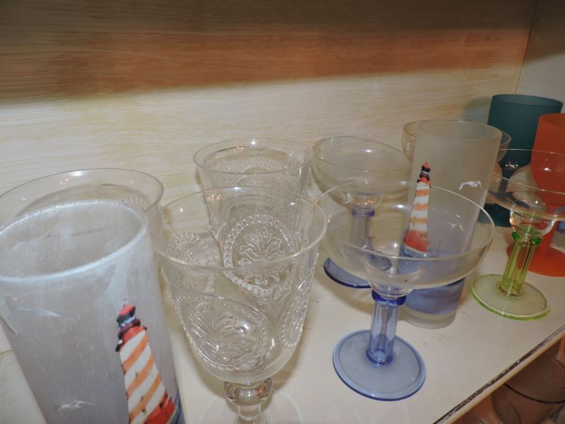 Collection of 12 assorted plastic drink glasses including, margarita, iced tea, and wine. Great for drinks on the patio!