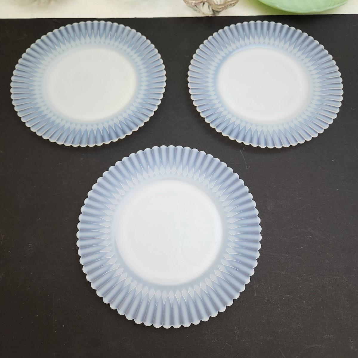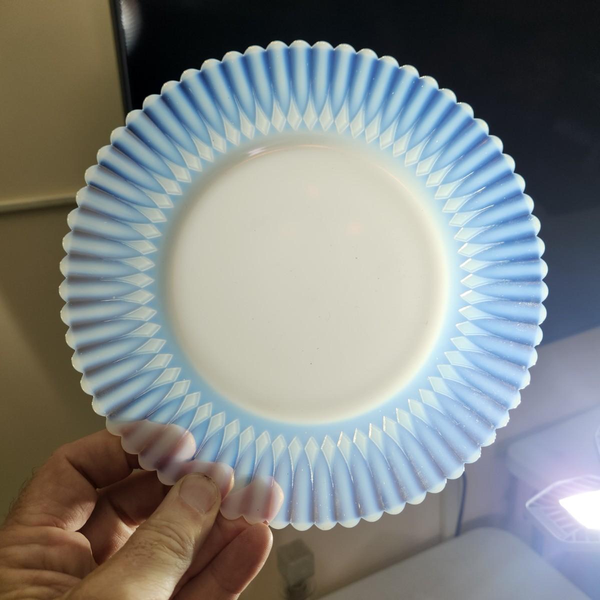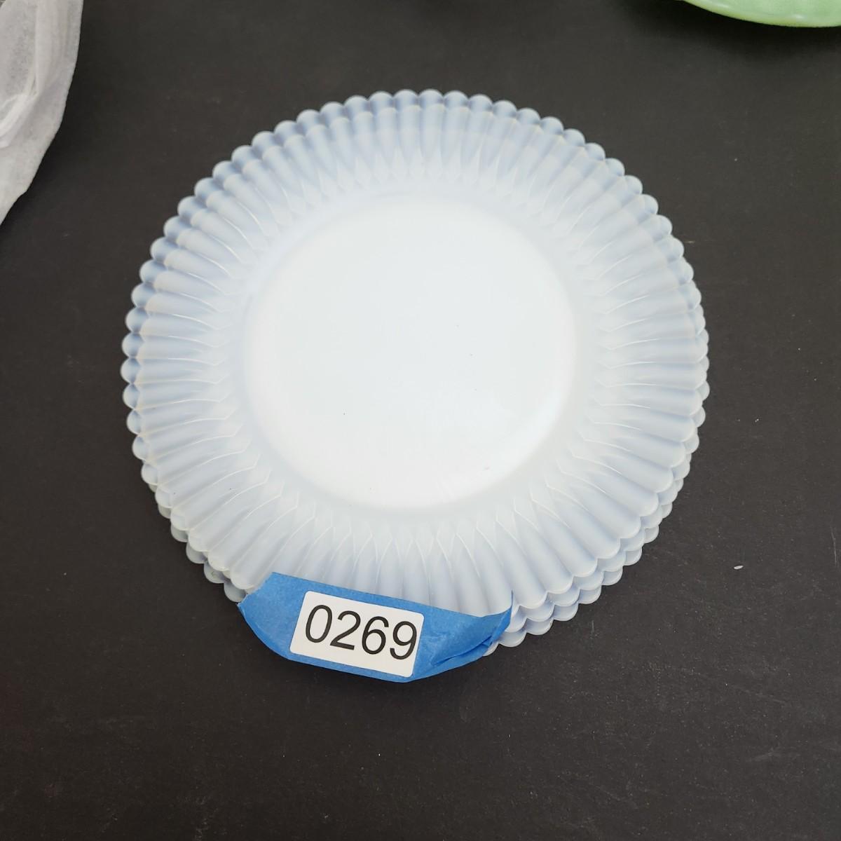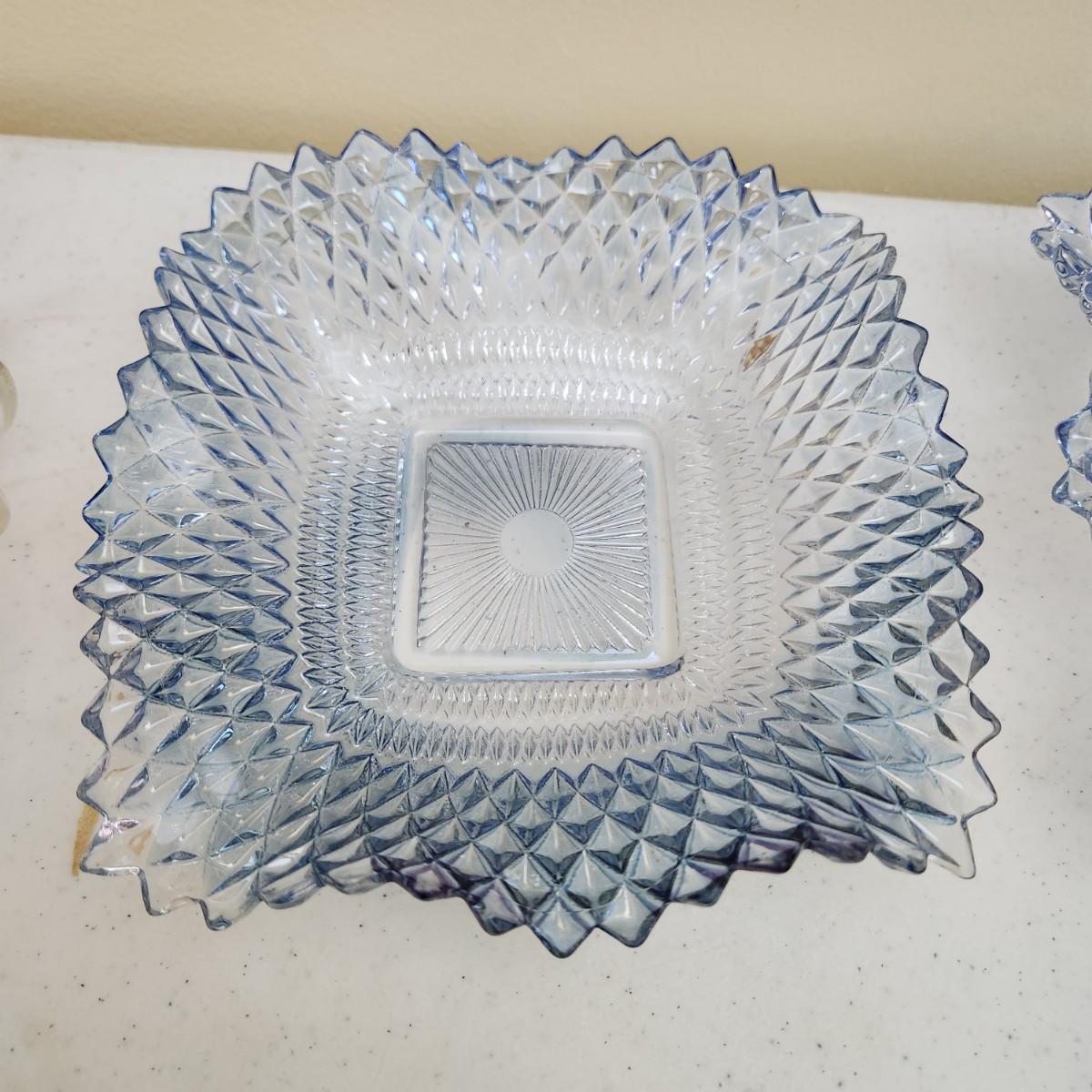 Collection of Plates & Bowls, Glass Ice Bucket, Green Glass, 3 MacBeth Evans Petalware Plates, Depression Amber Art Glass