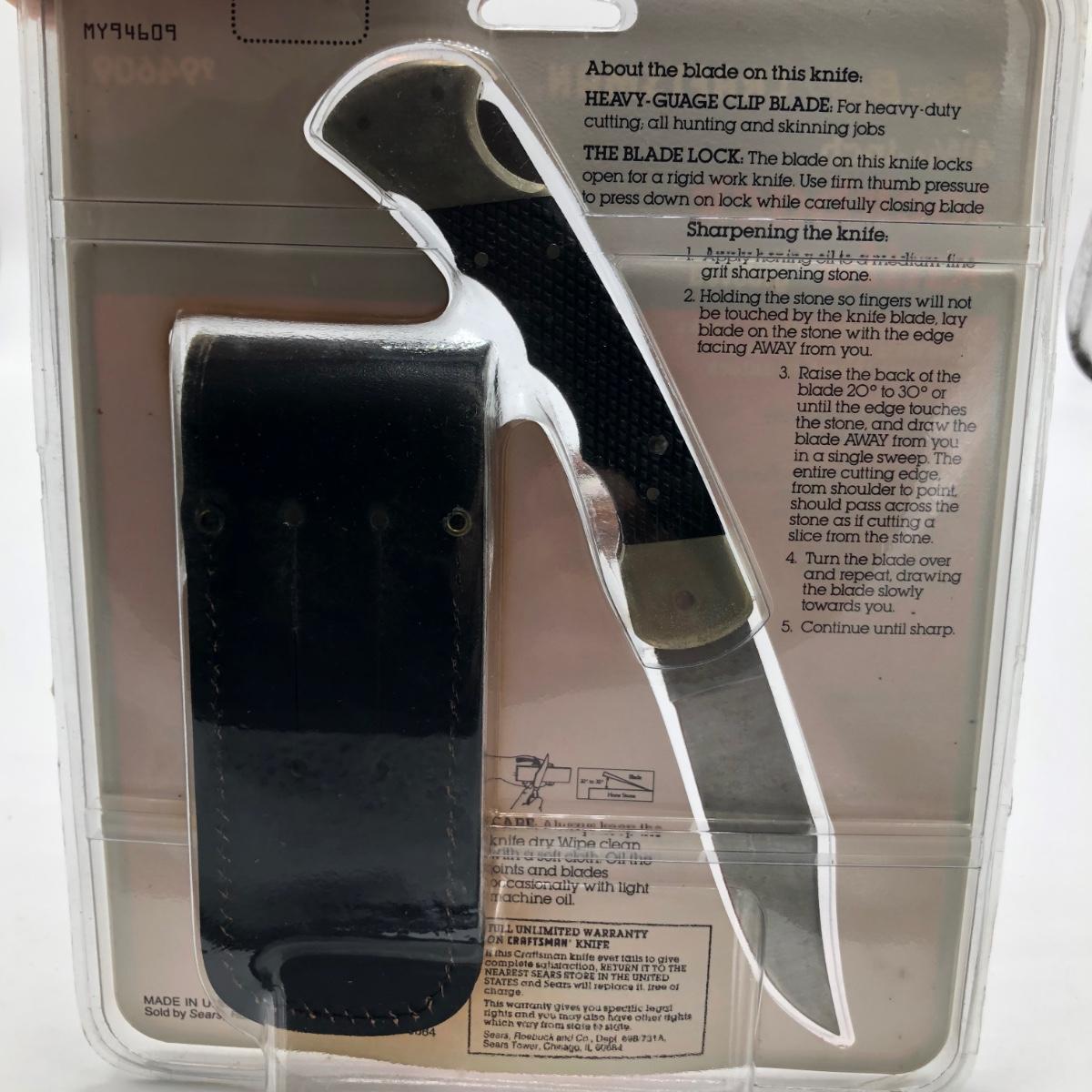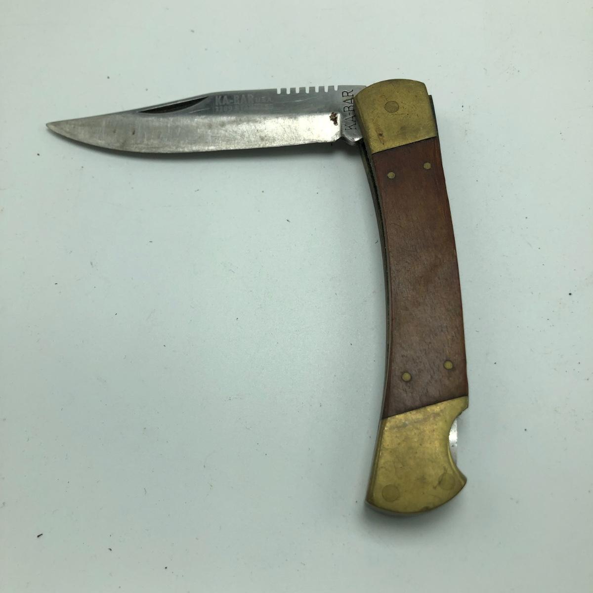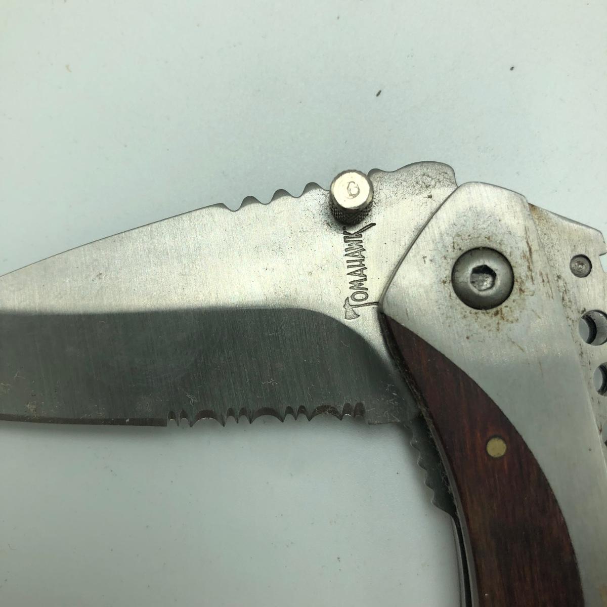 This Lot contains seven pocket knives including two Craftsman, one Tomahawk, one Ka Bar, one Smith & Wesson, one Stihl knife marked Solingen Germany and an unmarked wooden handled knife. The Longest knife measures 10” long when open.