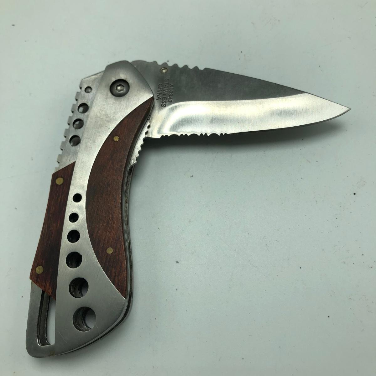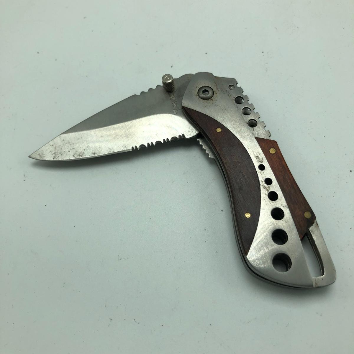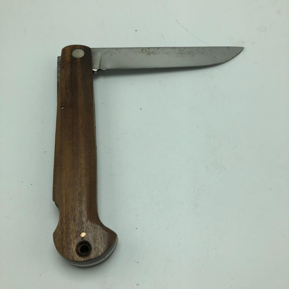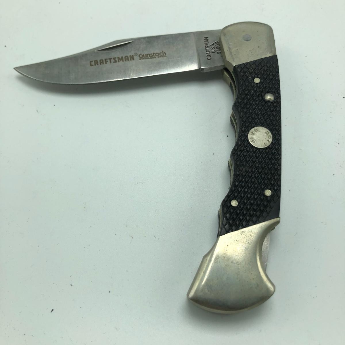 This Lot contains seven pocket knives including two Craftsman, one Tomahawk, one Ka Bar, one Smith & Wesson, one Stihl knife marked Solingen Germany and an unmarked wooden handled knife. The Longest knife measures 10” long when open.