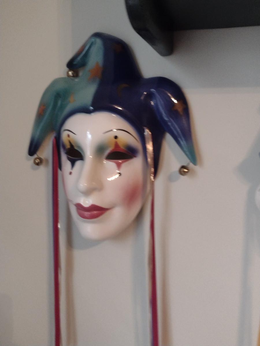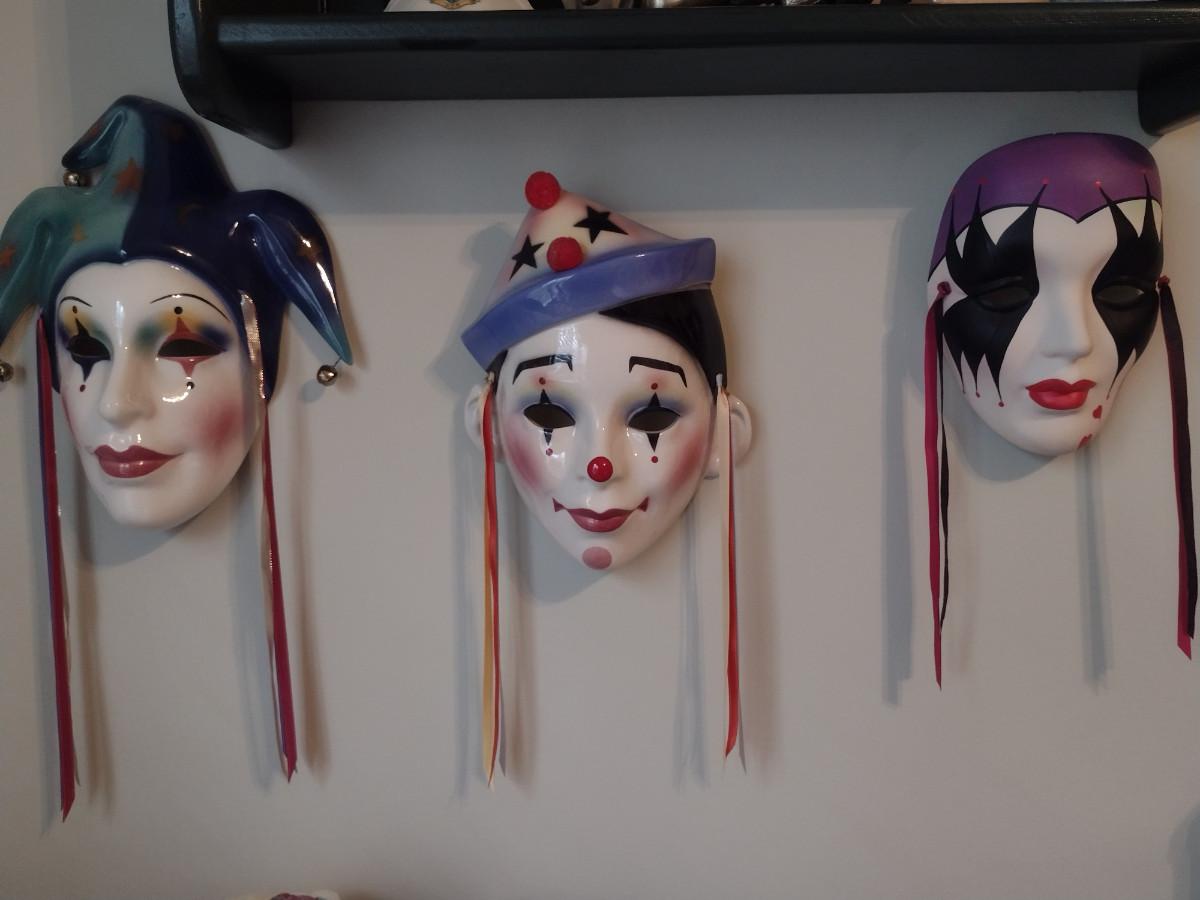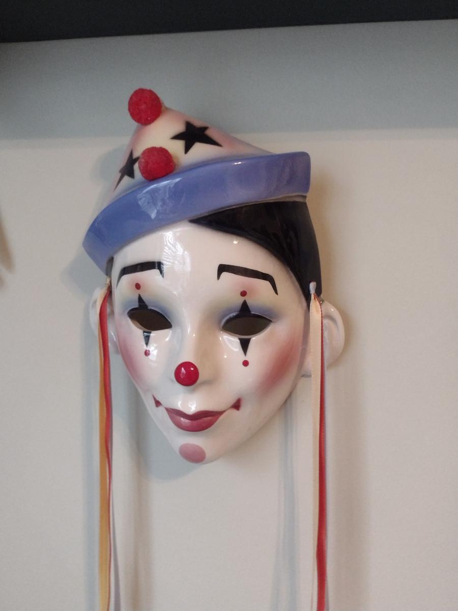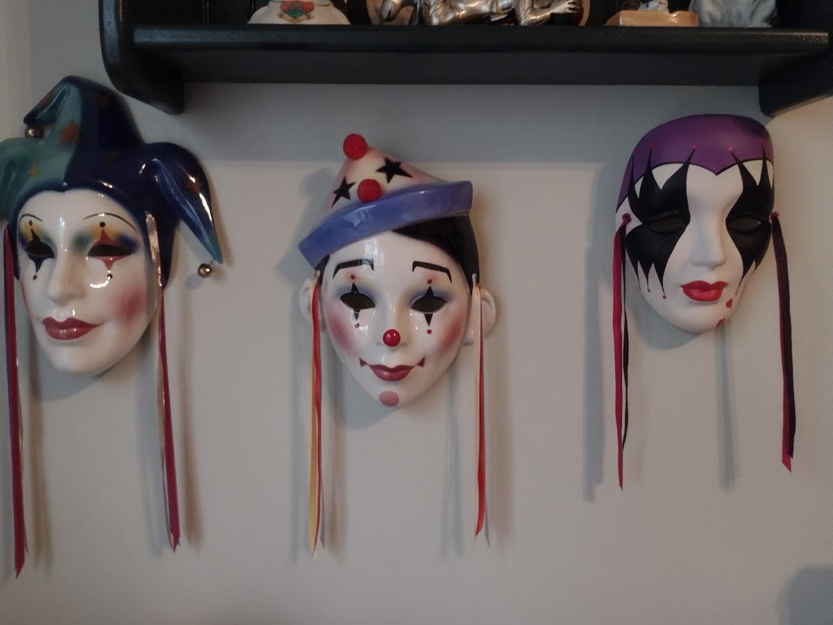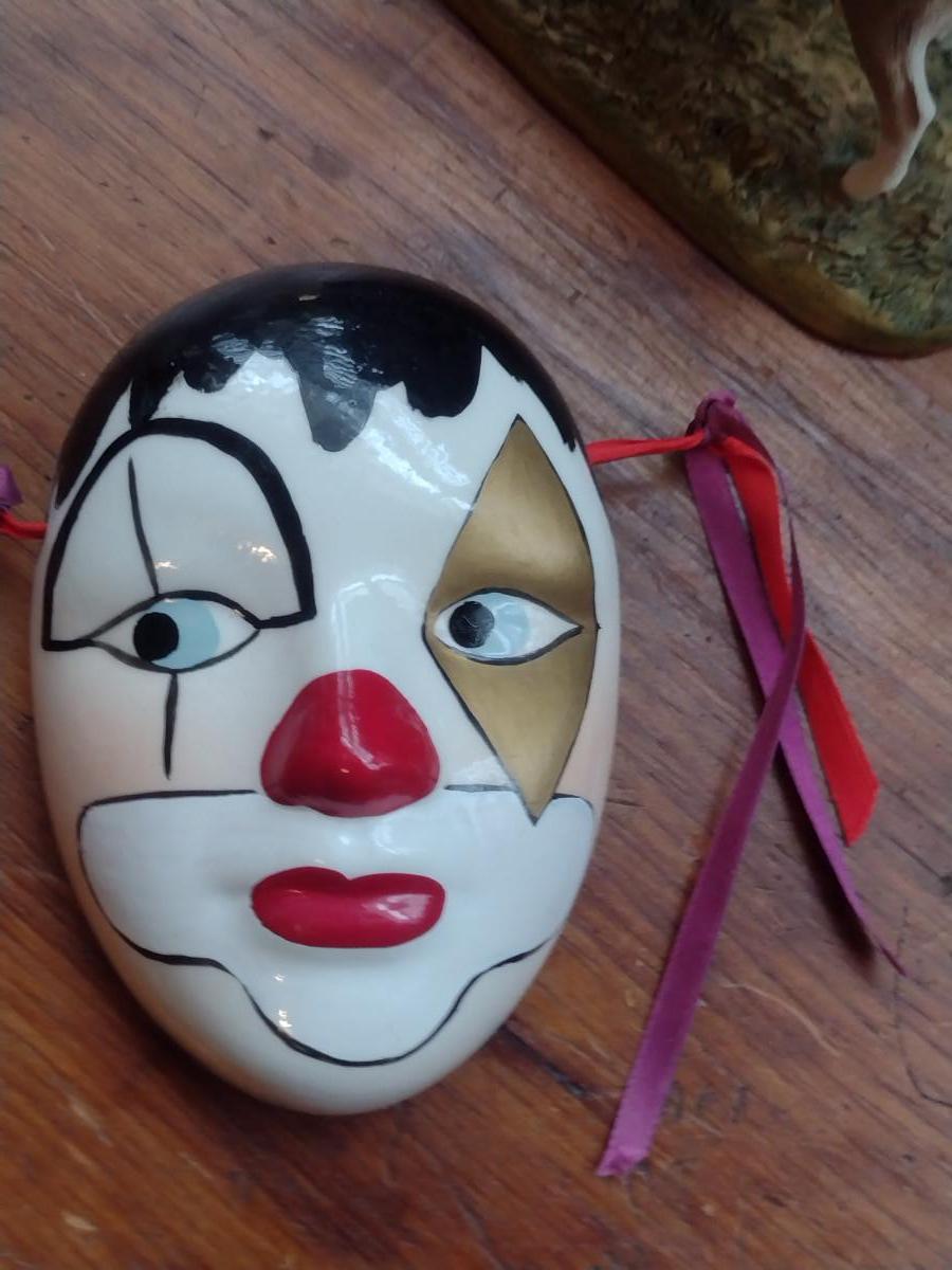 Collection of Porcelain Clown Masks- Four Pieces. Some vintage Clay-Art USA.