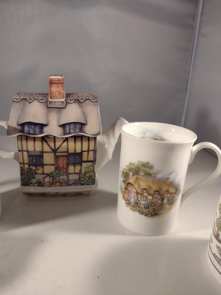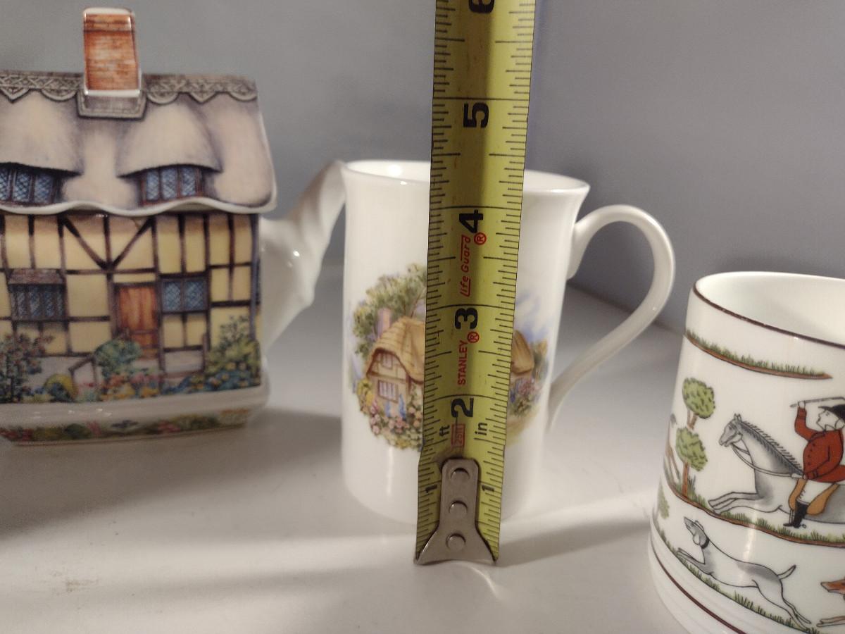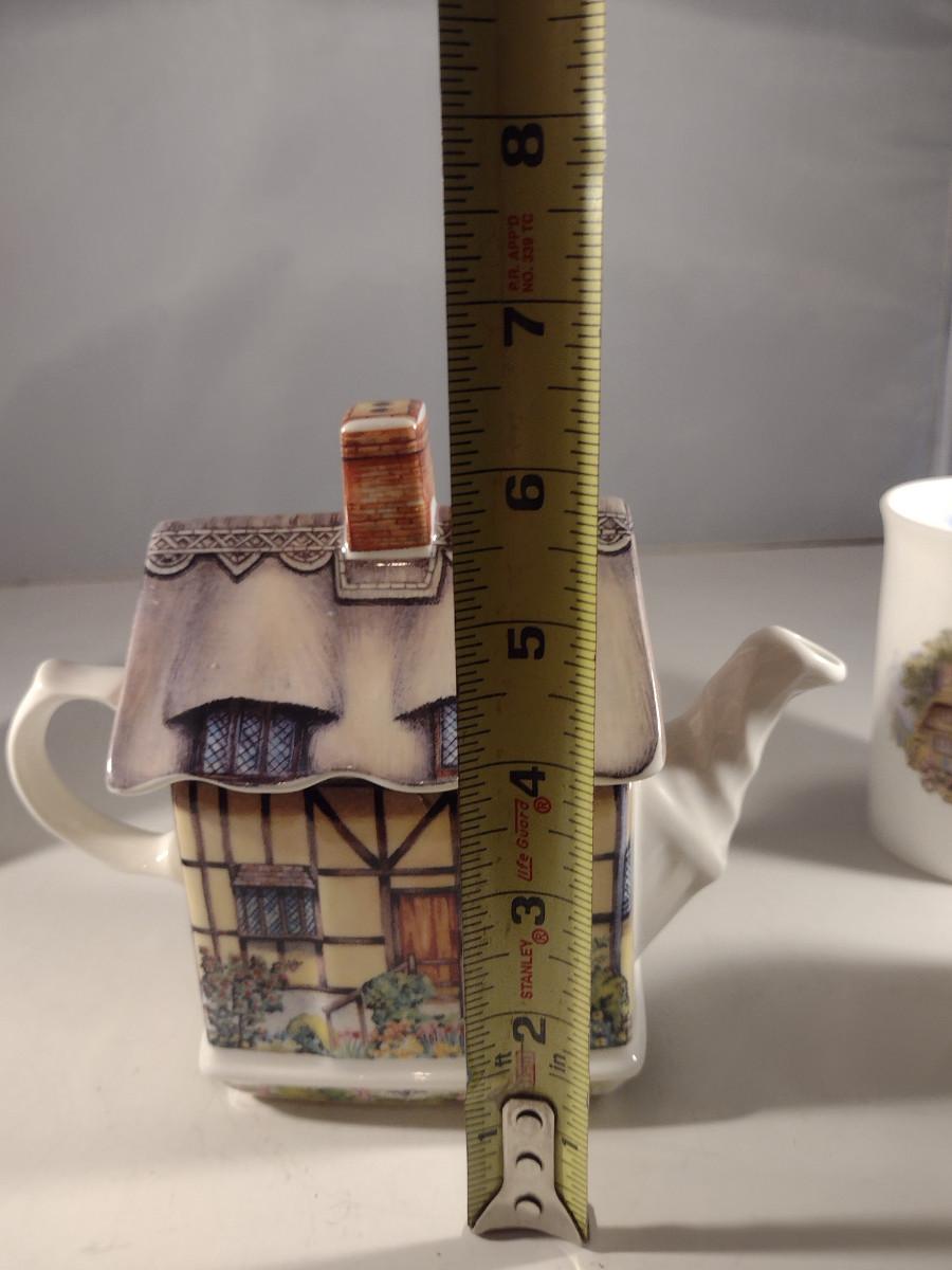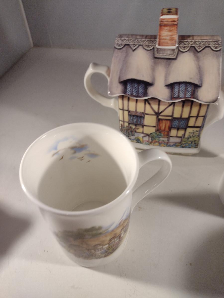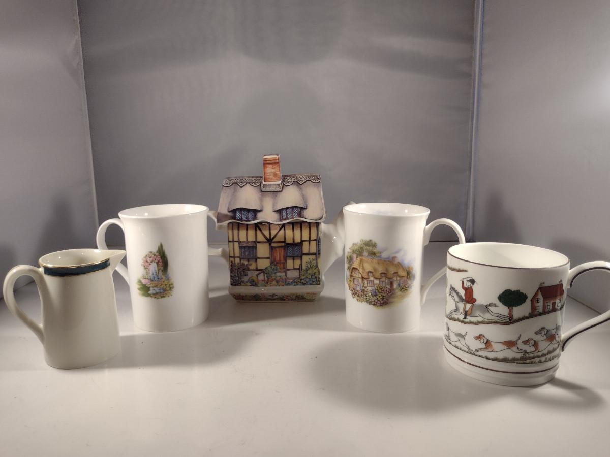 Collection of Porcelain Kitchen Ware- Teapot, Cups, and Creamer (#30)