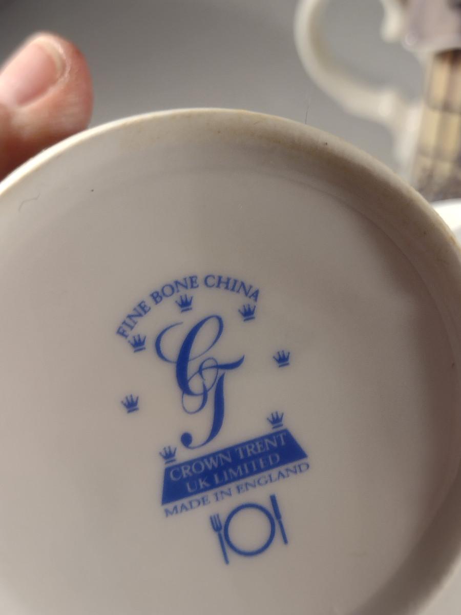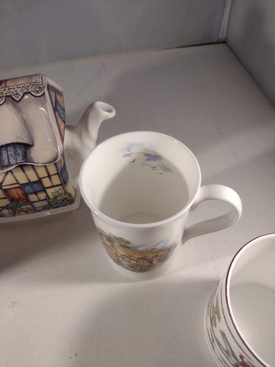 Collection of Porcelain Kitchen Ware- Teapot, Cups, and Creamer (#30) (K)