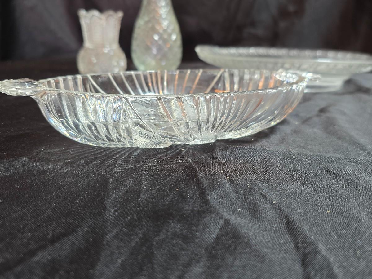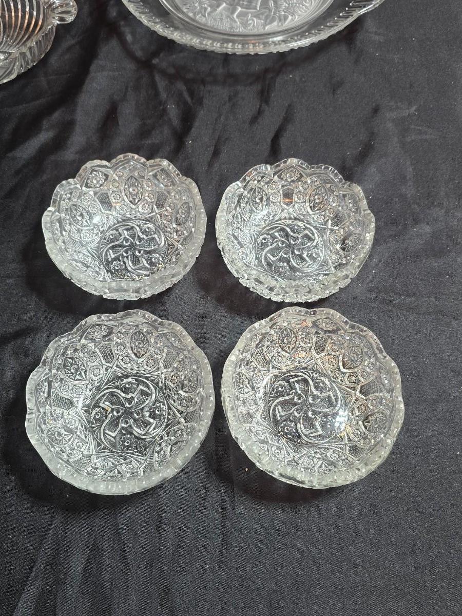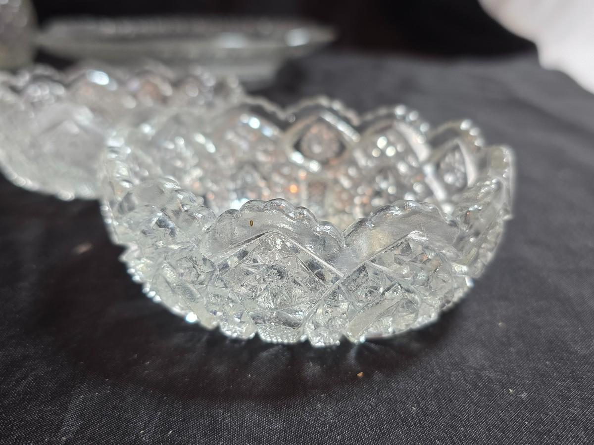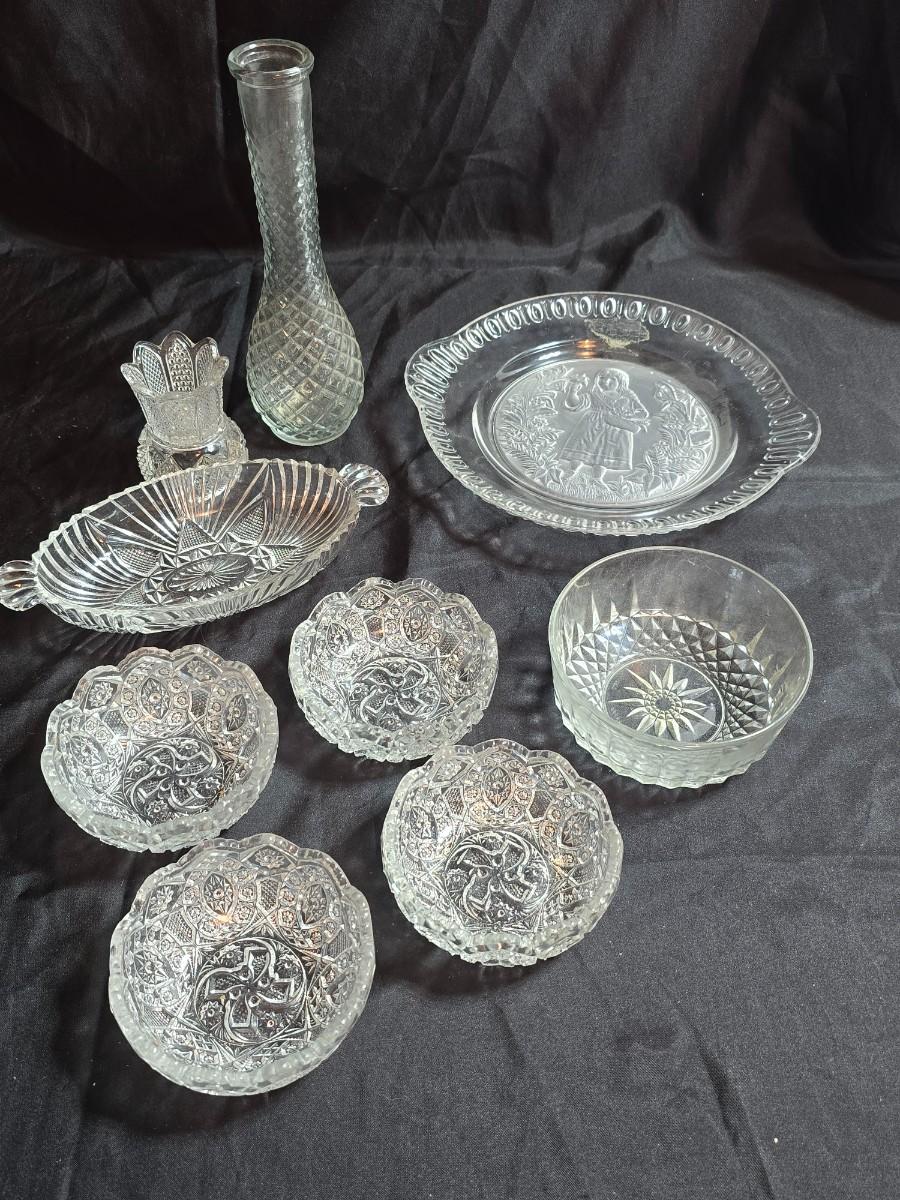 Collection of vintage Glassware - IRENE EAPG Iowa City Flint Glass bread plate - Wick's company toothpick holder - Glass bowls and more
