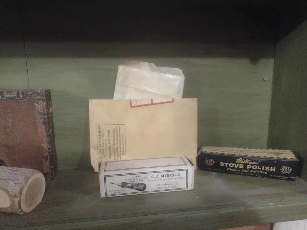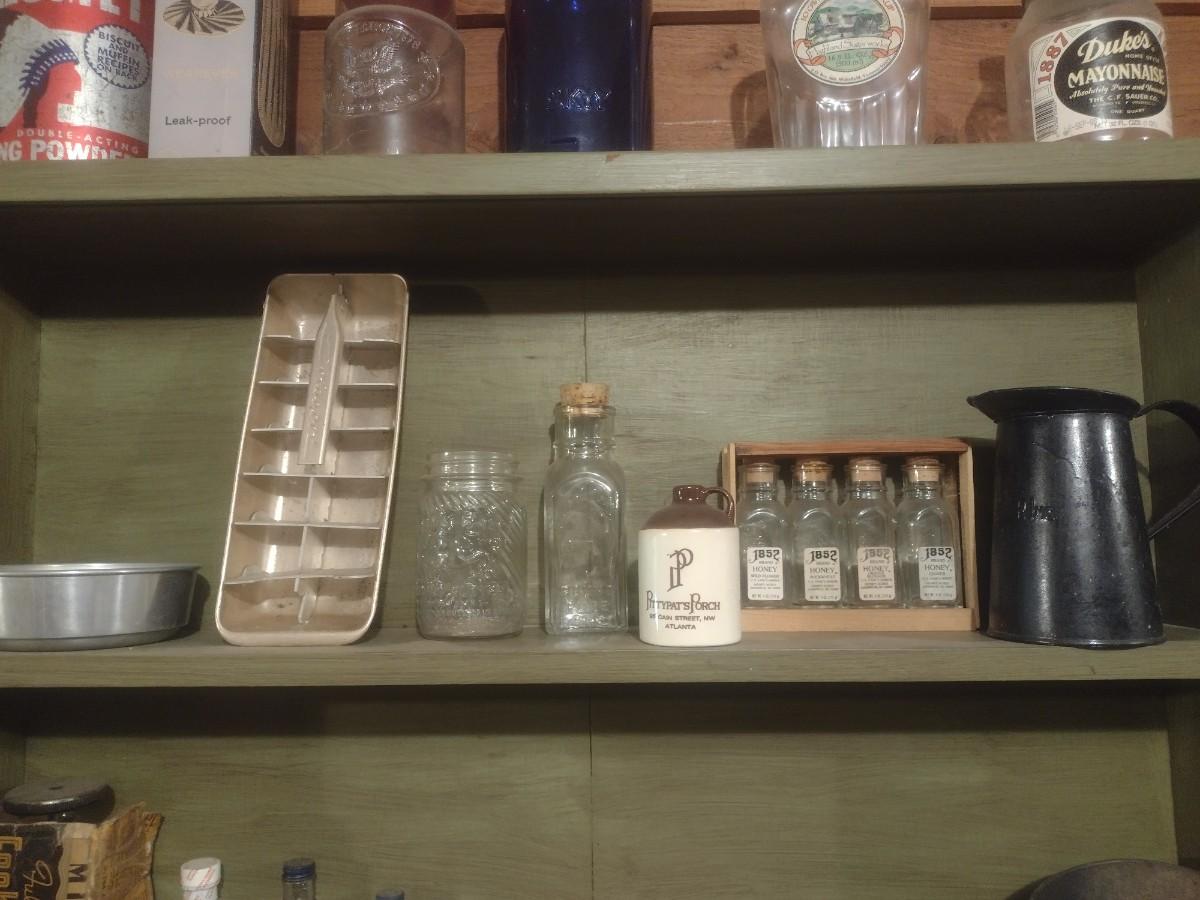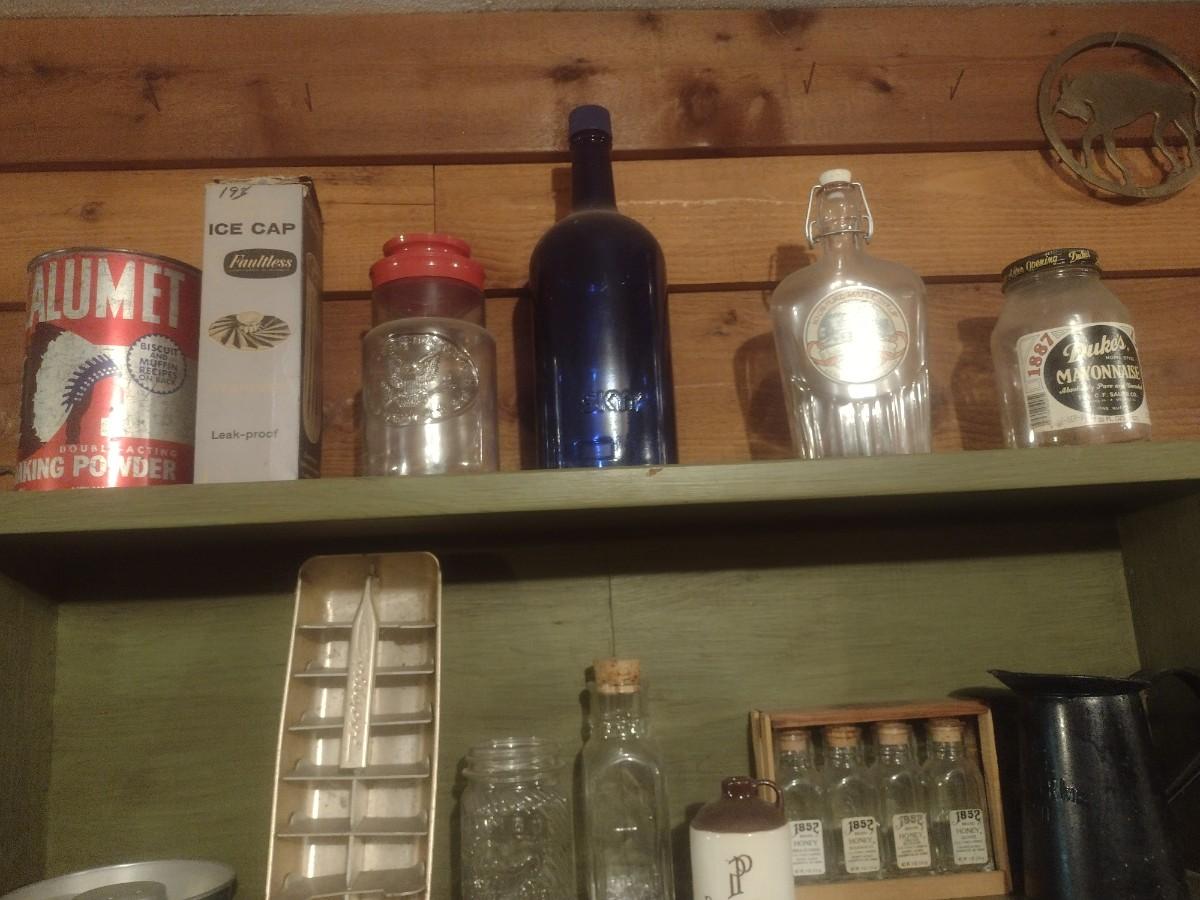 Collection of Primitive and Vintage Collectible Rustic and Farmhouse Items Choice A (Shelf not included)